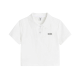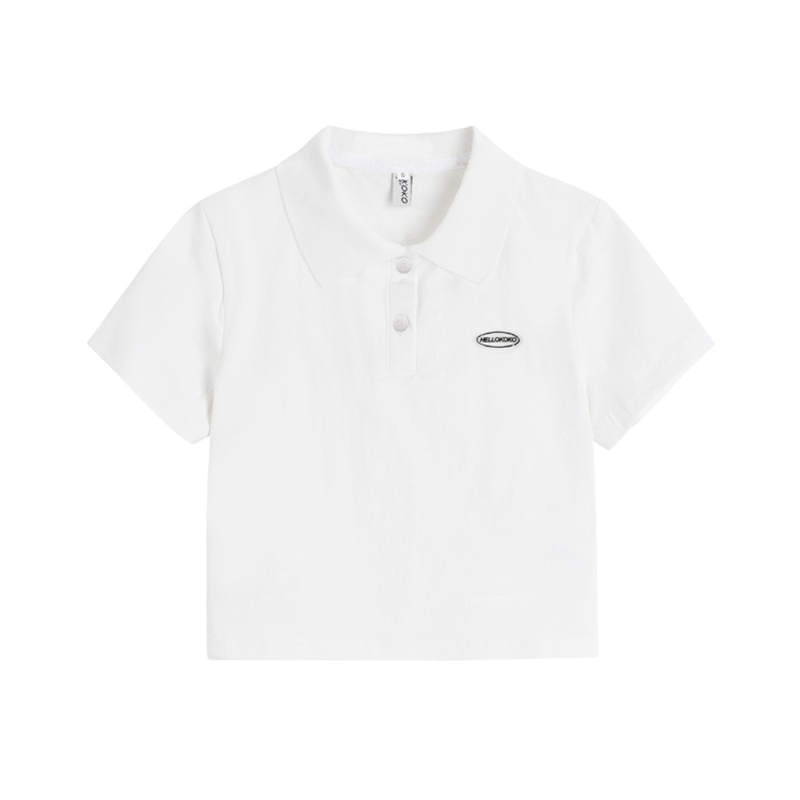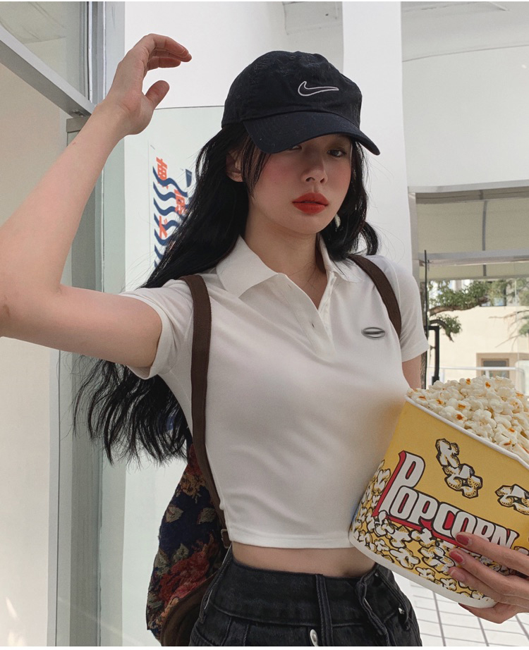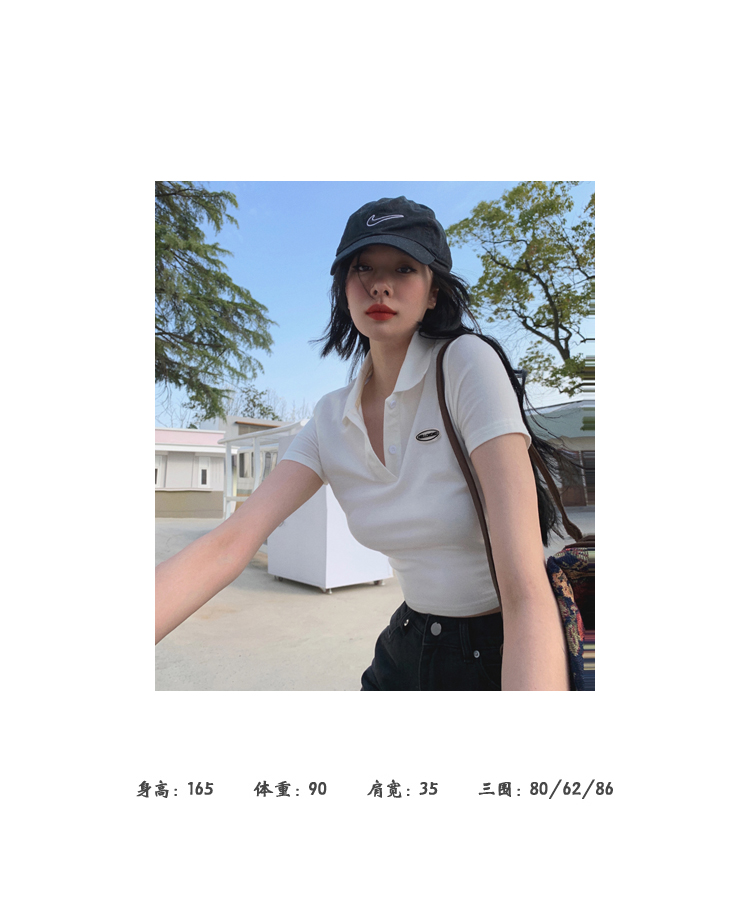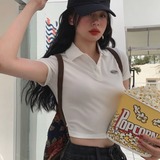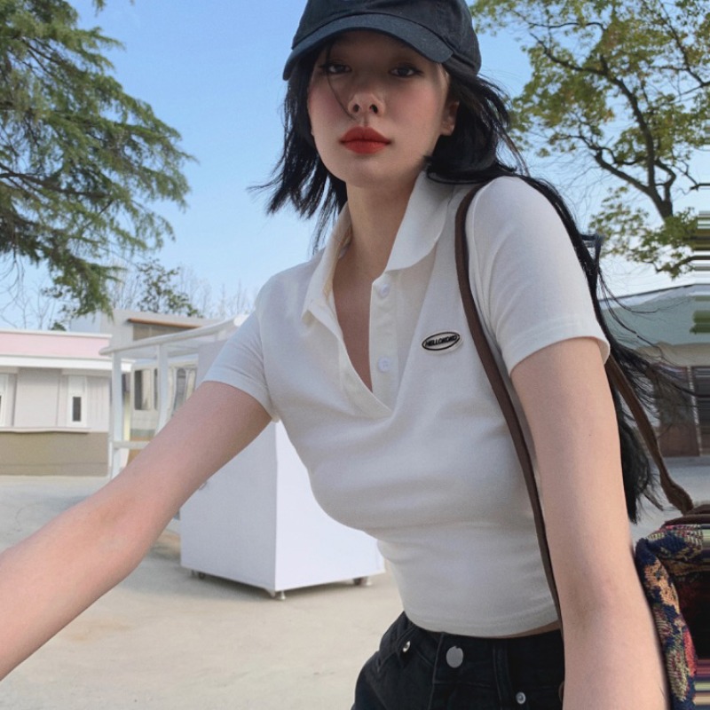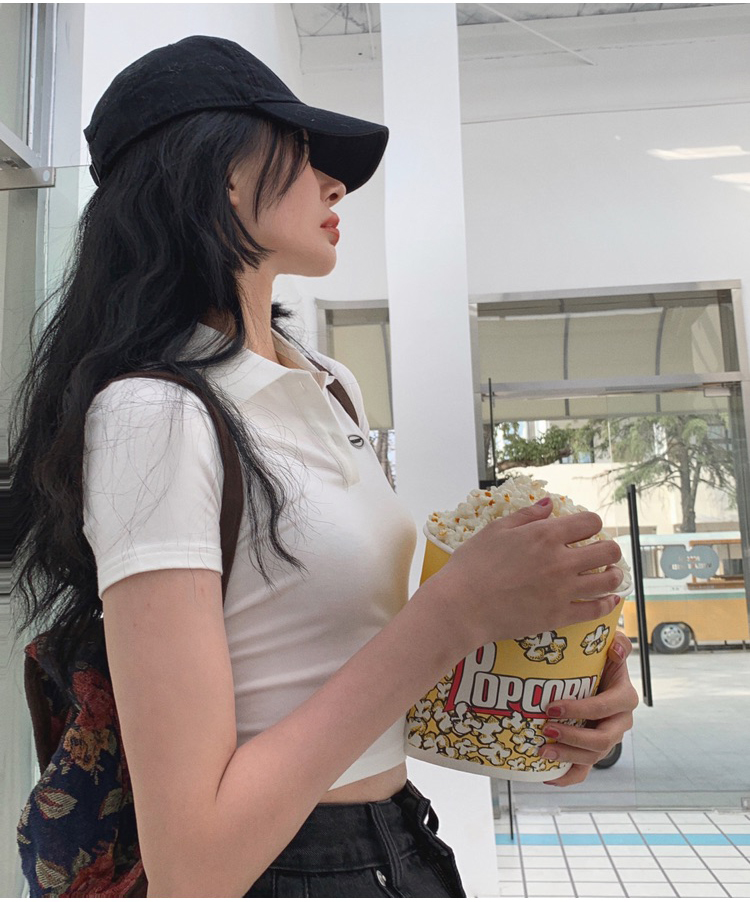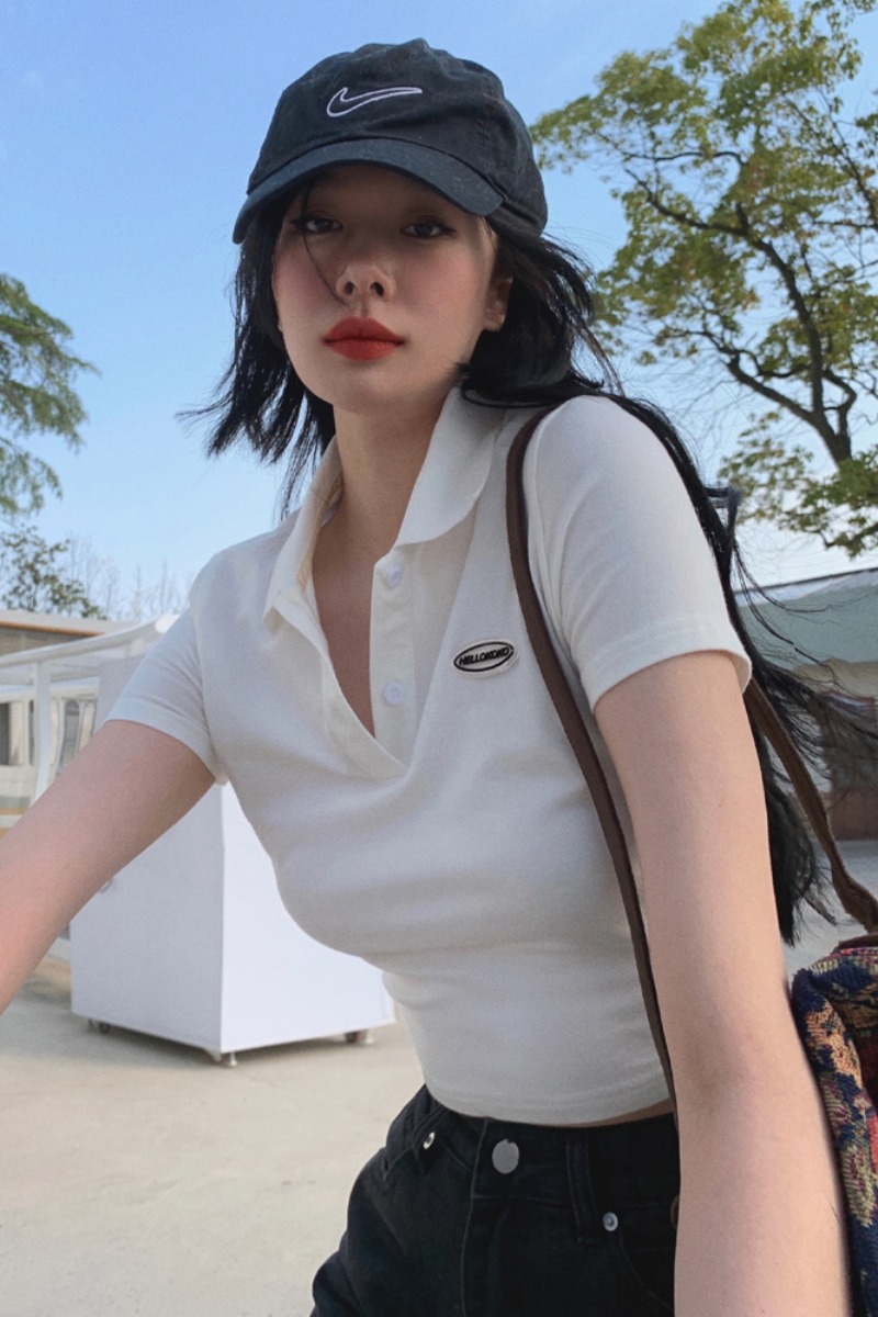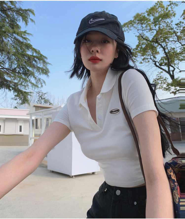 Ретро белая короткая футболка polo, в американском стиле, короткий рукав, облегающий крой, V-образный вырез