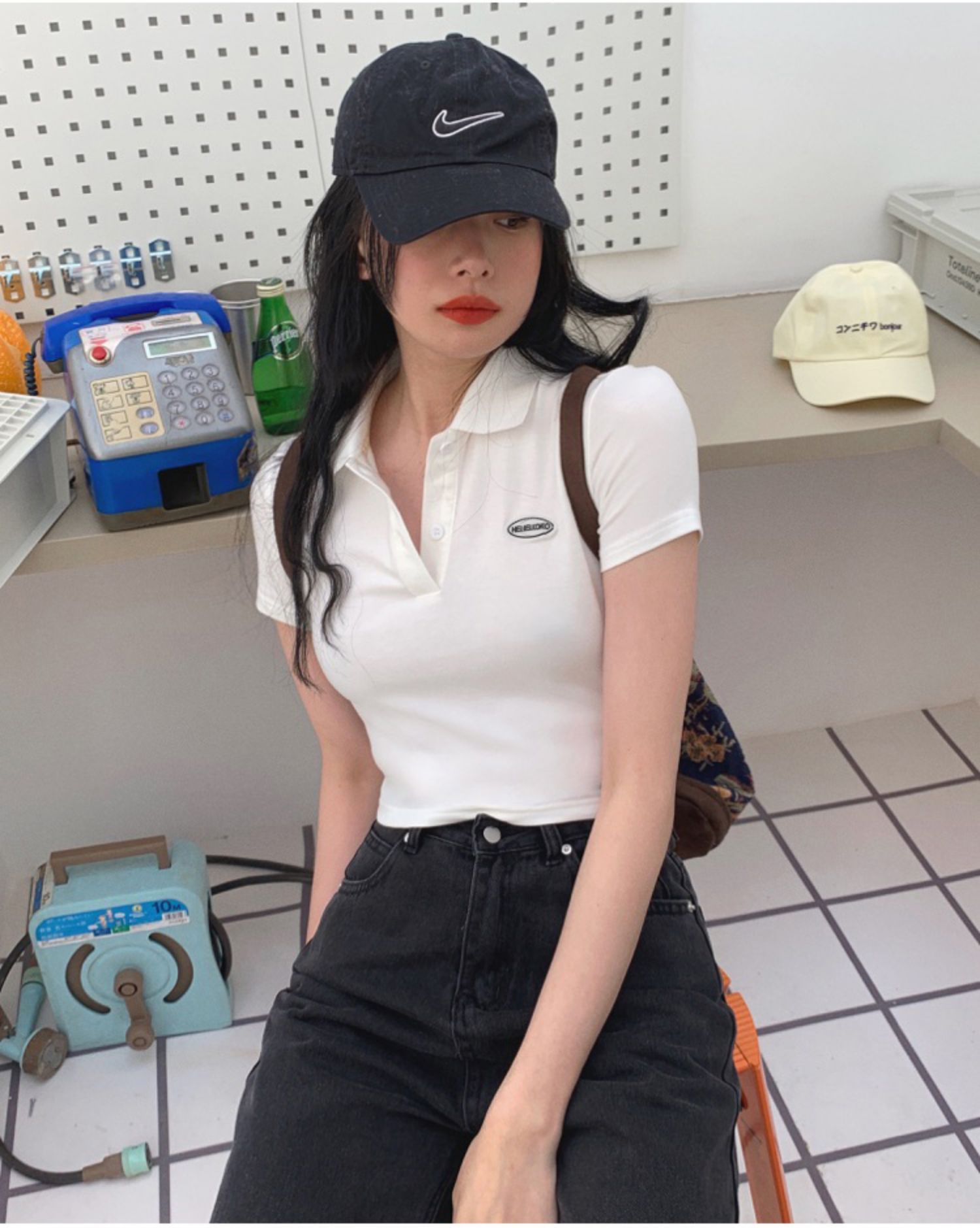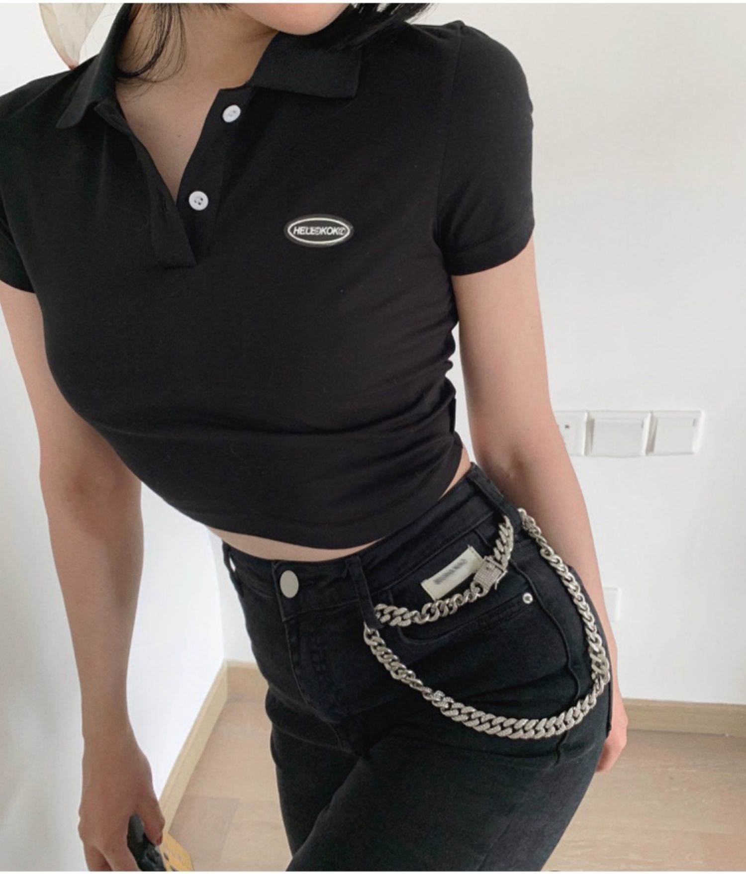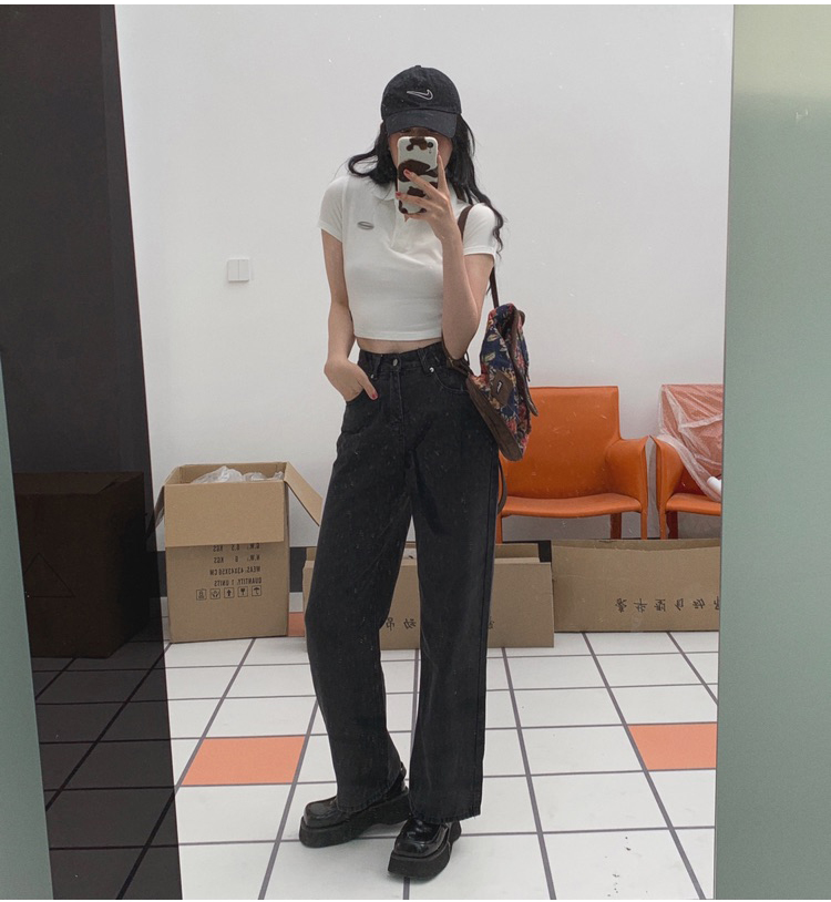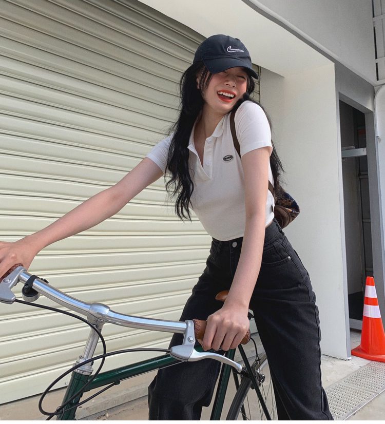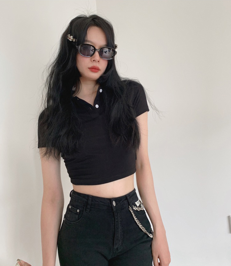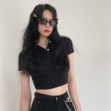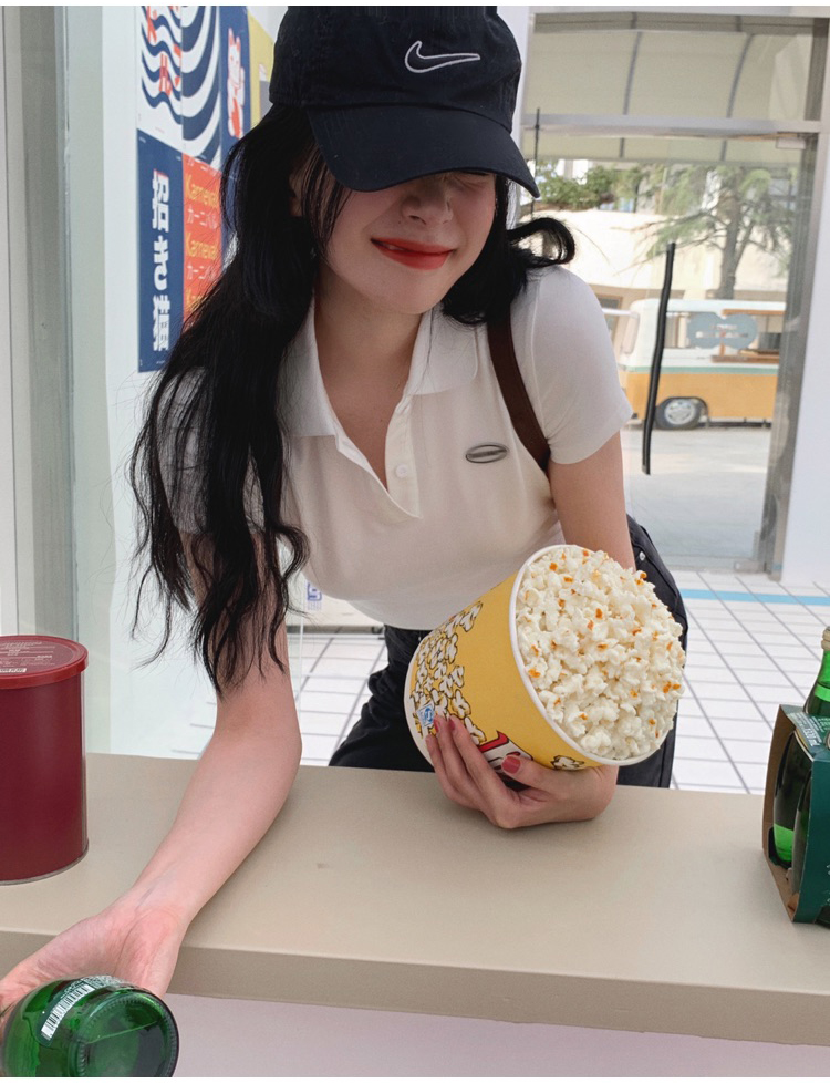 Ретро белая короткая футболка polo, в американском стиле, короткий рукав, облегающий крой, V-образный вырез