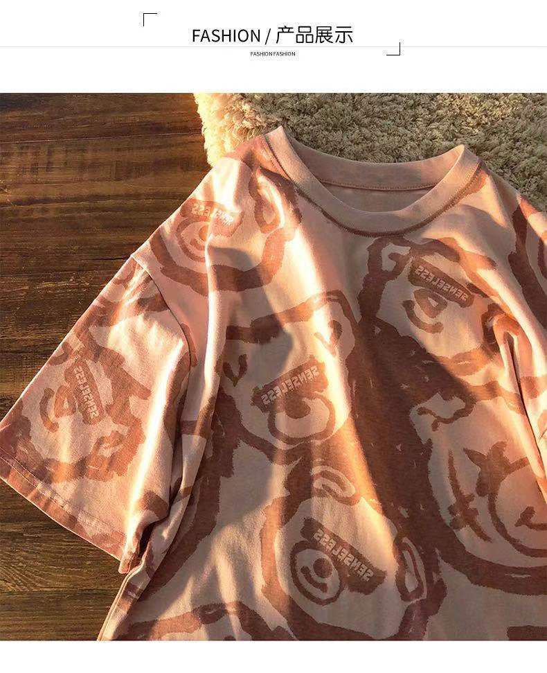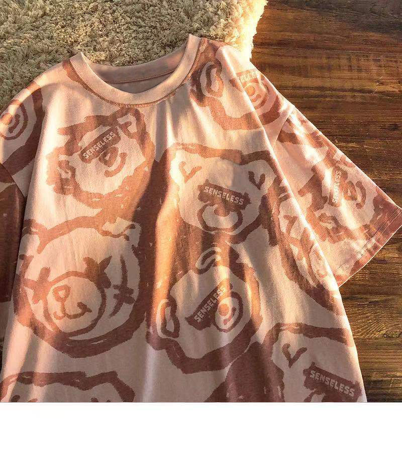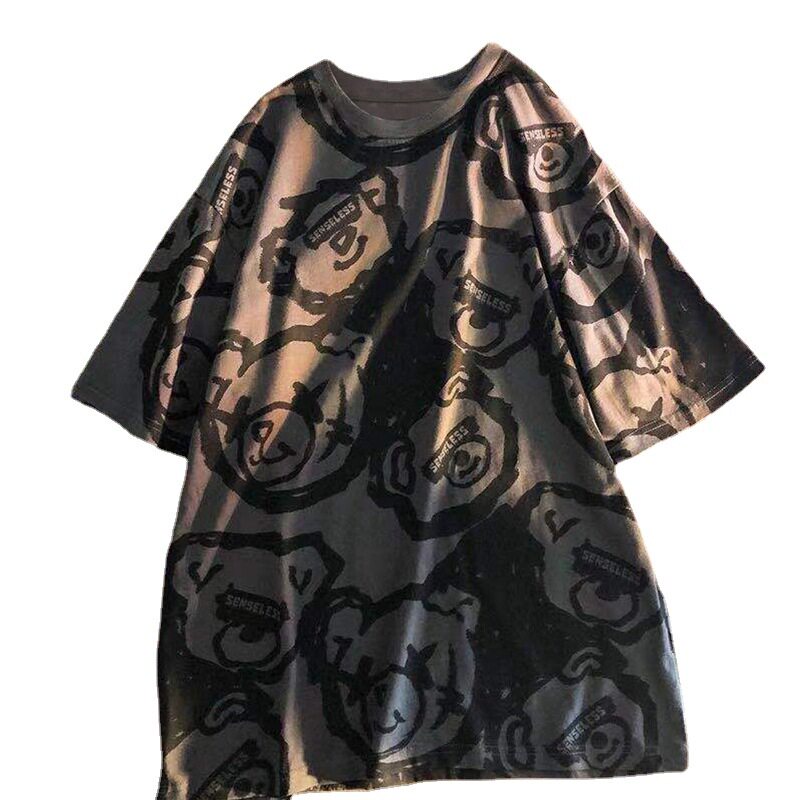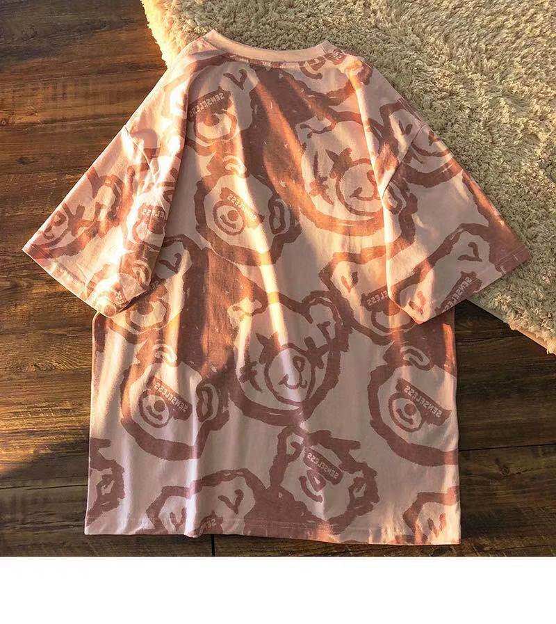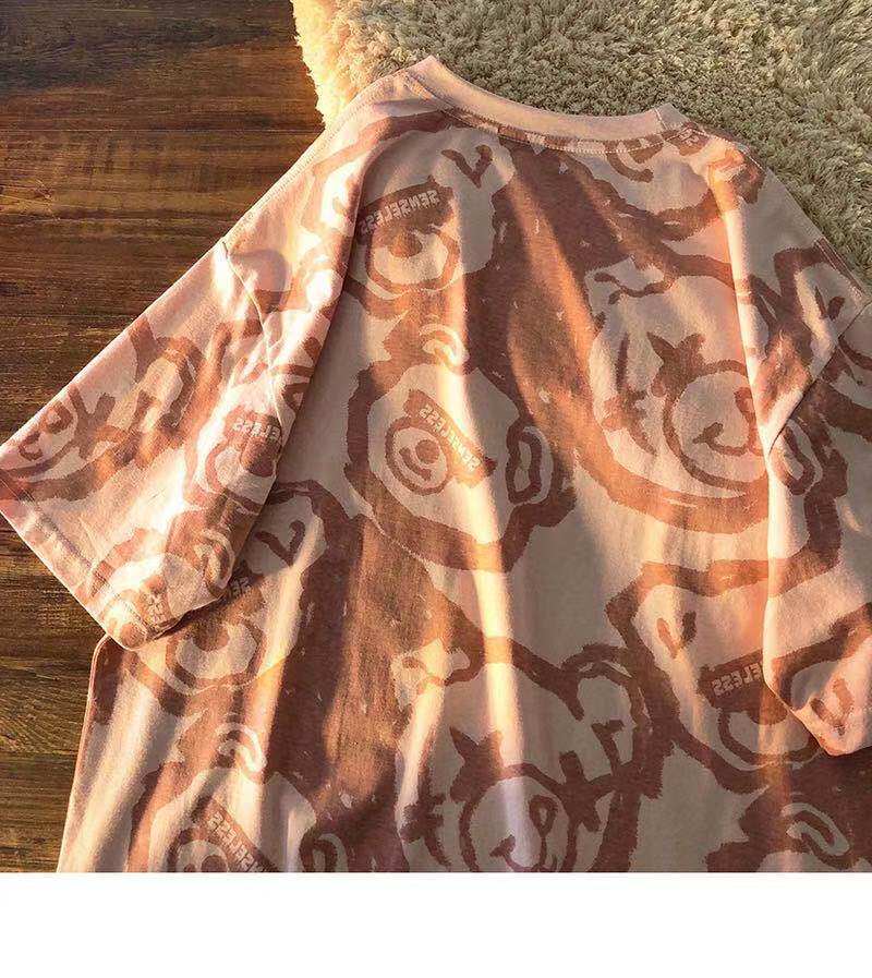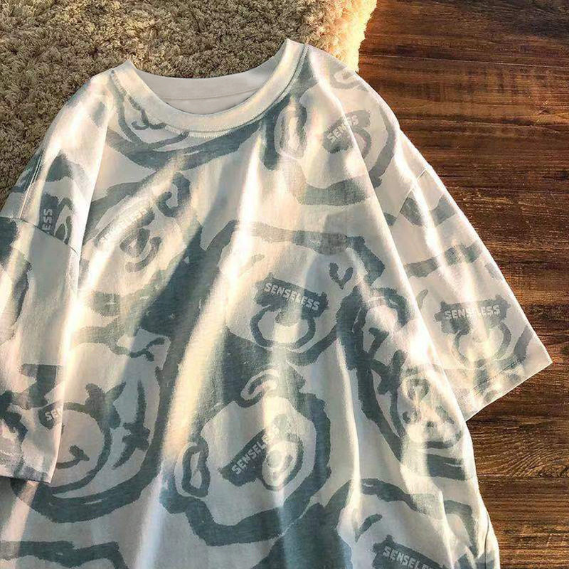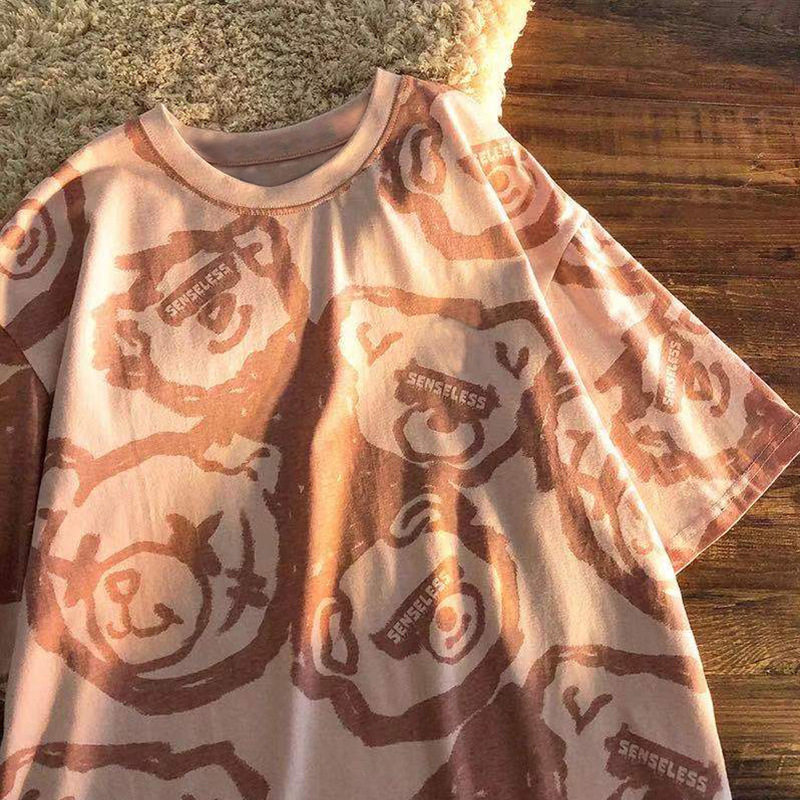 Tide, летняя белая цветная футболка с коротким рукавом, с медвежатами, сезон 2021, оверсайз, в корейском стиле, популярно в интернете