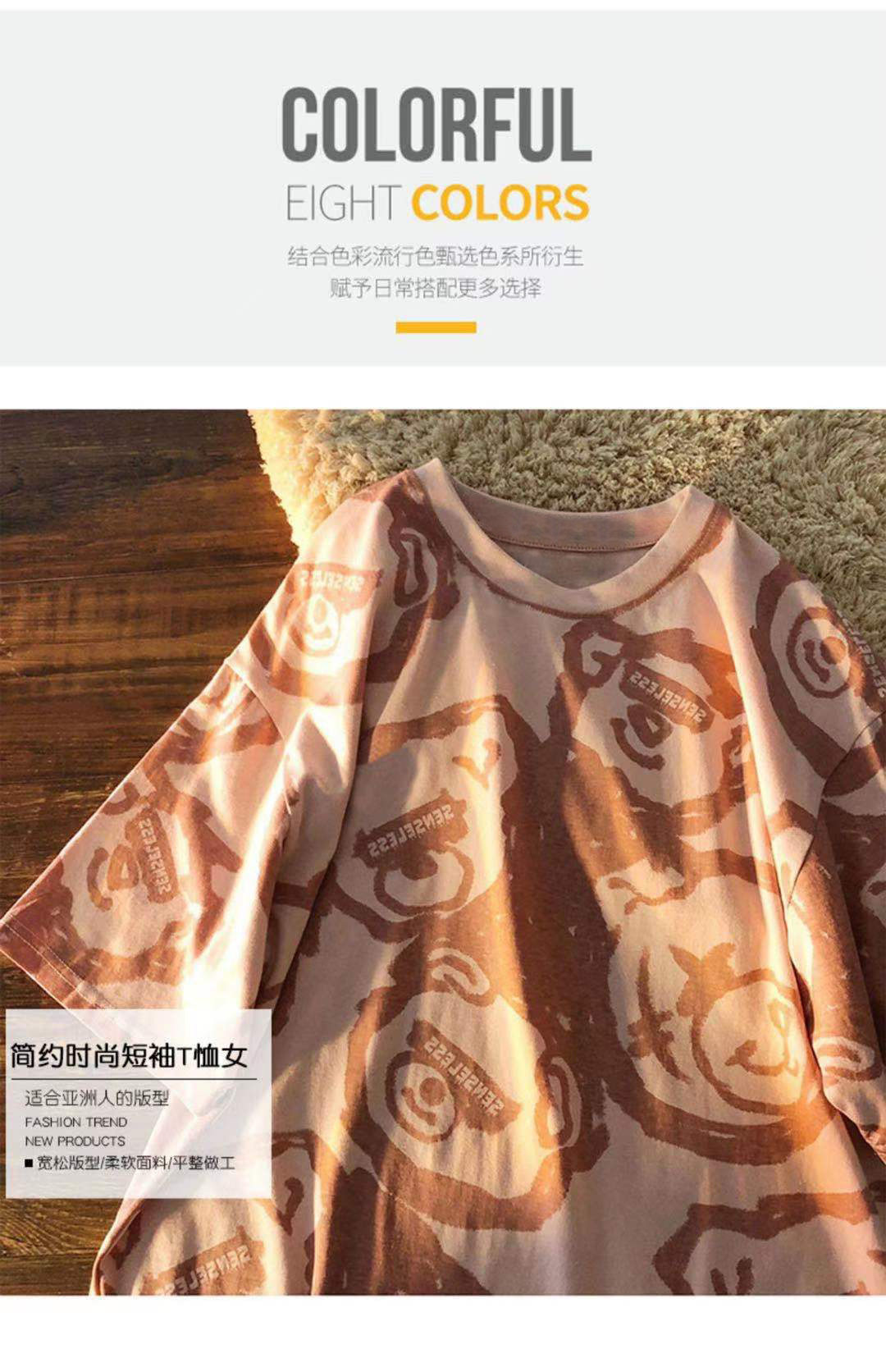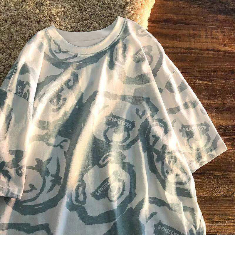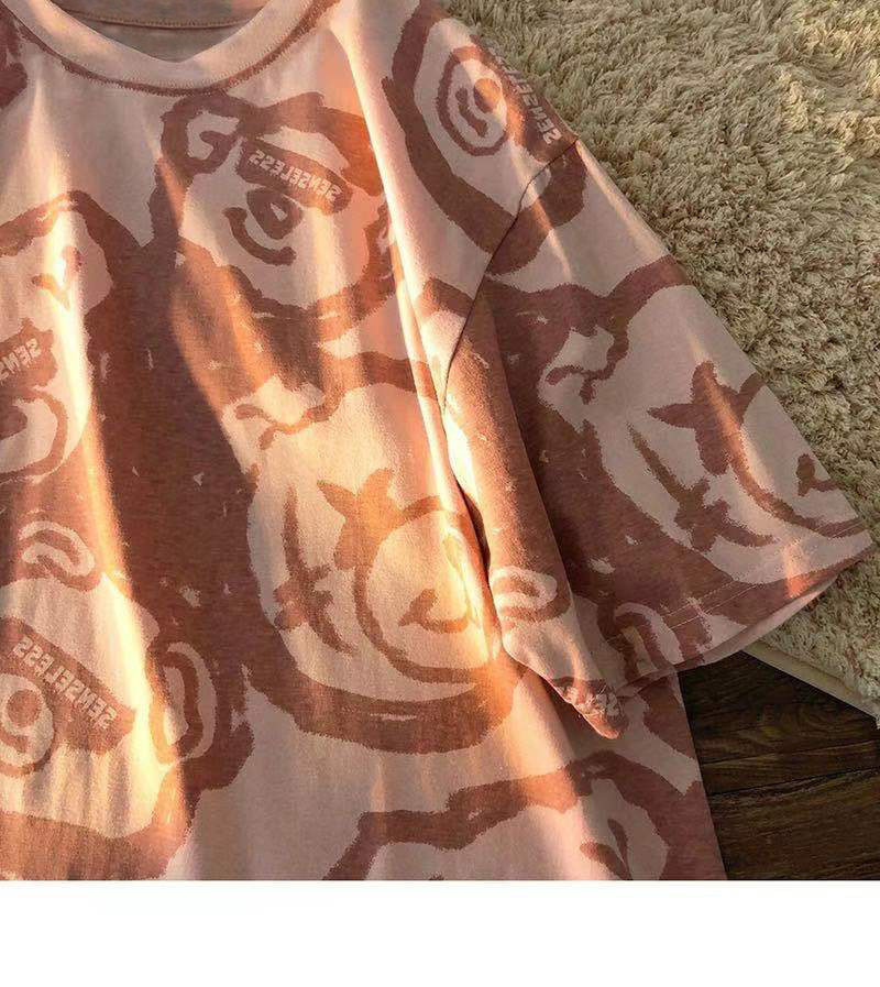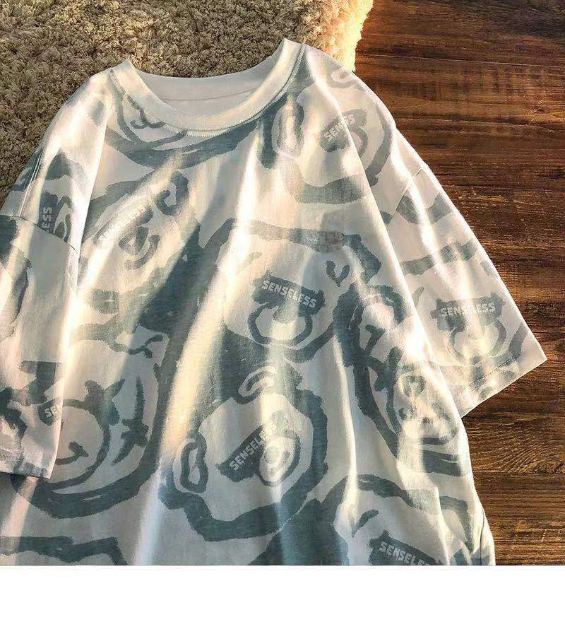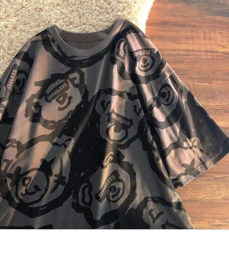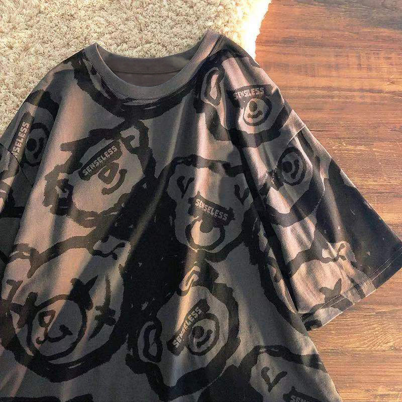 Tide, летняя белая цветная футболка с коротким рукавом, с медвежатами, сезон 2021, оверсайз, в корейском стиле, популярно в интернете