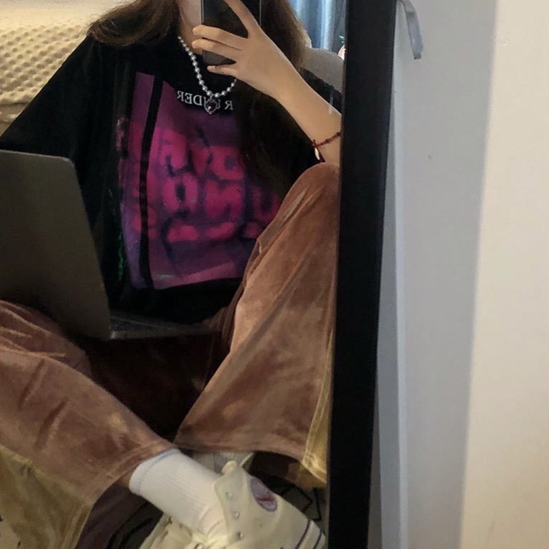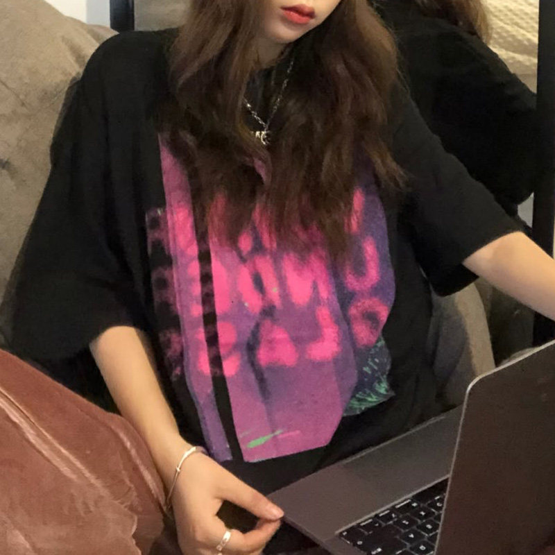 Летняя ретро футболка с коротким рукавом, европейский стиль, короткий рукав, 2021 года, свободный крой, оверсайз, в американском стиле