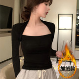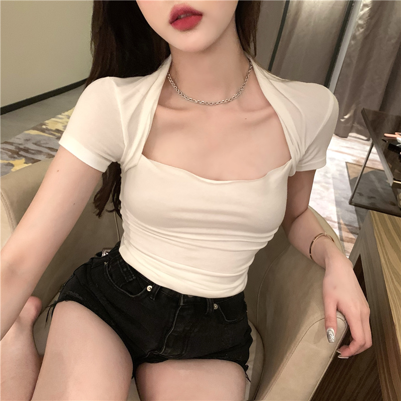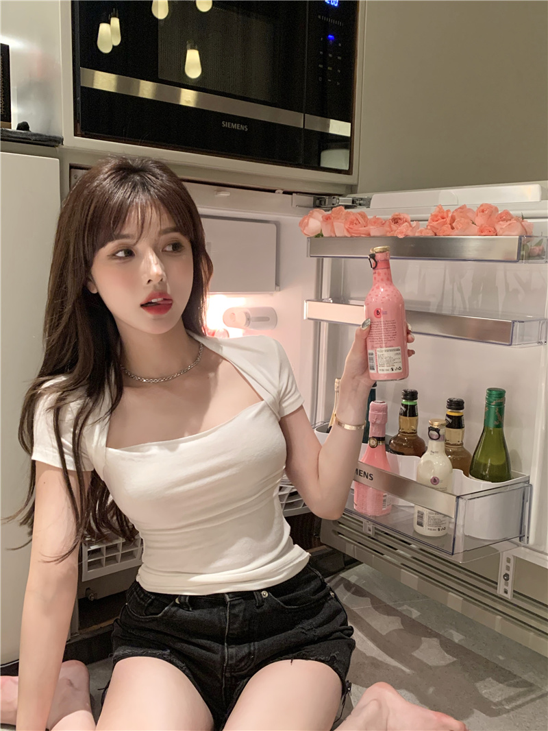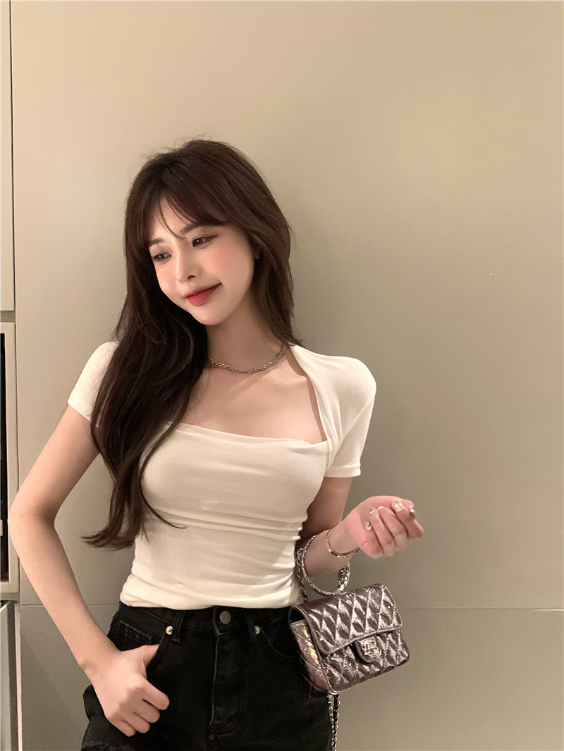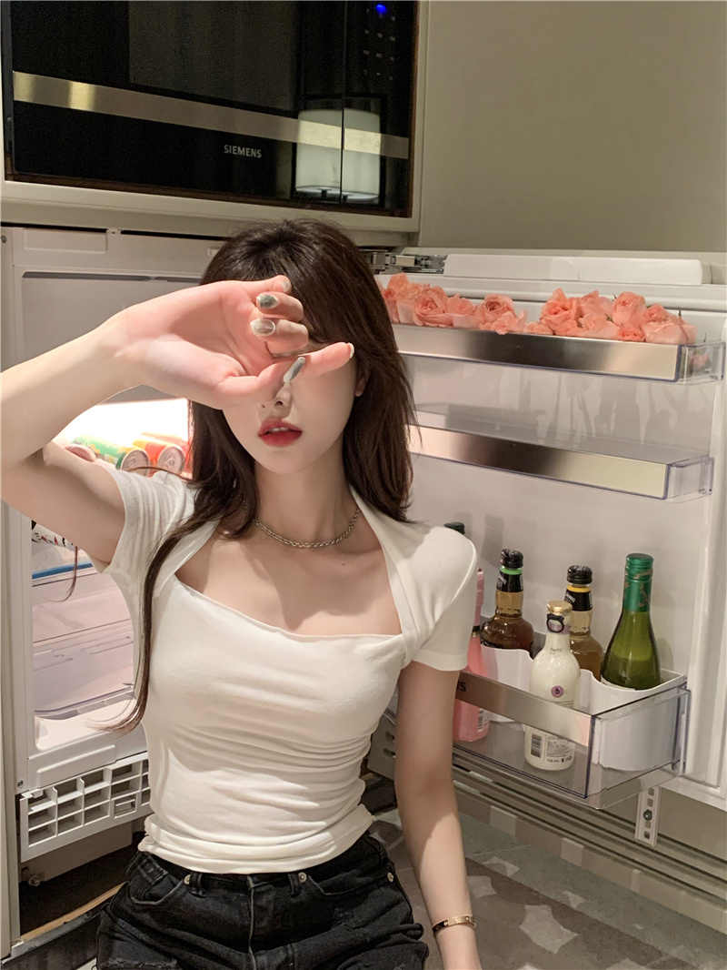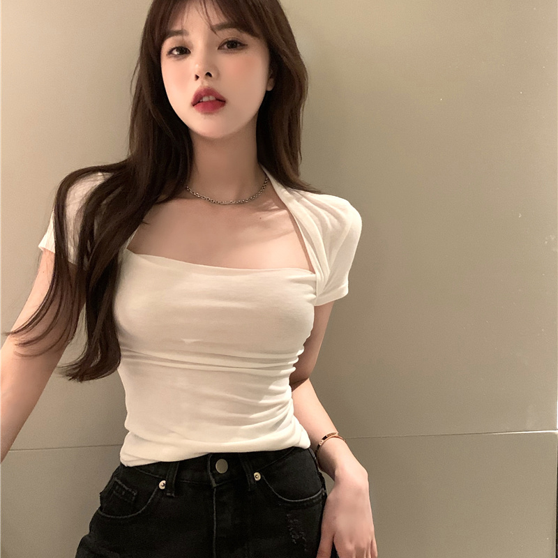 Хлопковая приятная телу летняя сексуальная дизайнерская футболка, квадратный вырез, тренд сезона