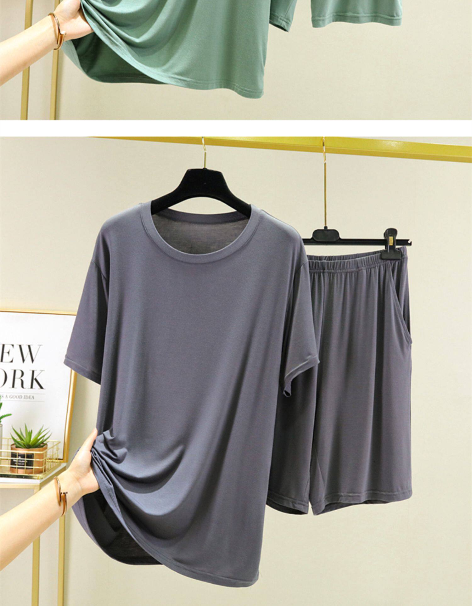 Футболка с коротким рукавом, шорты, пижама, тонкий спортивный комплект для отдыха для спортзала, короткий рукав, большой размер