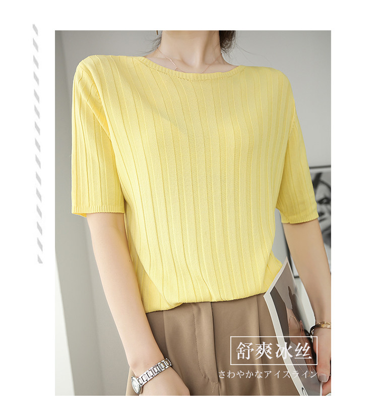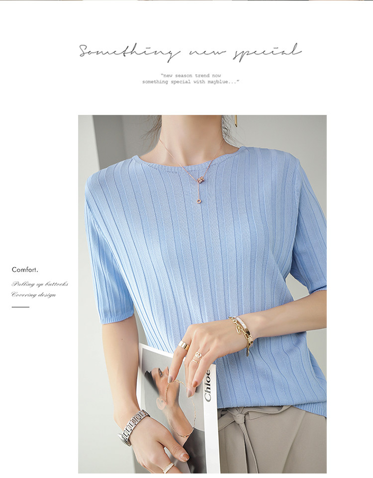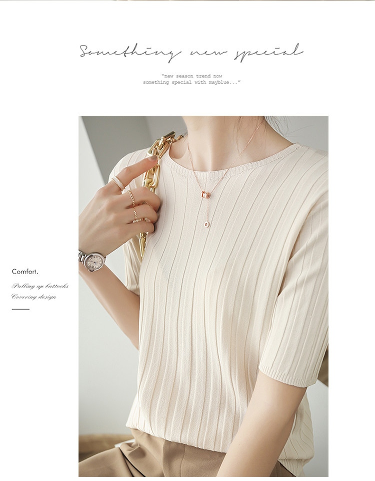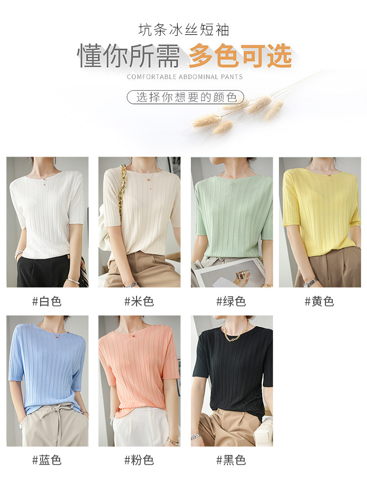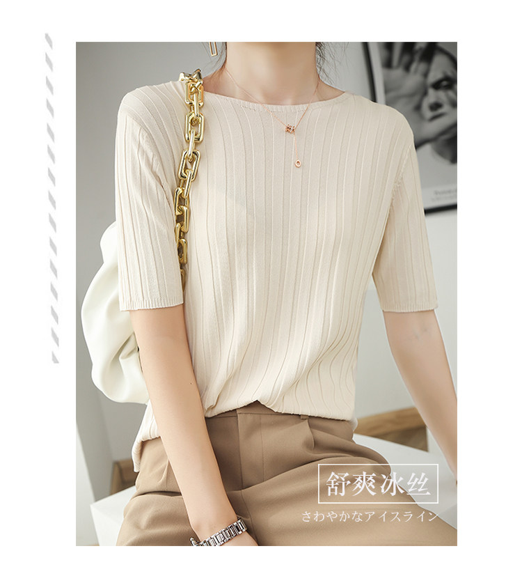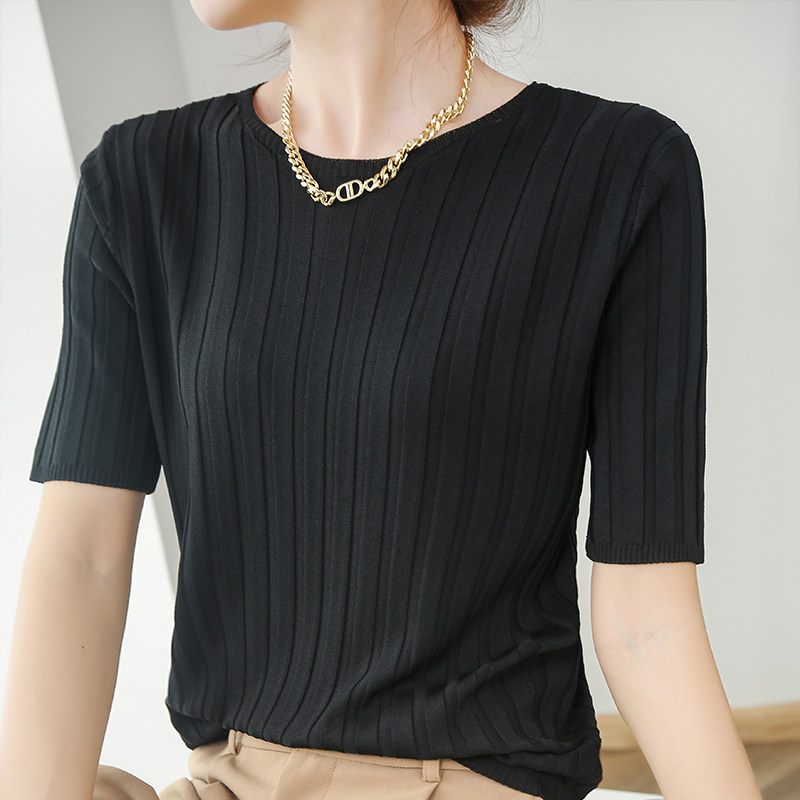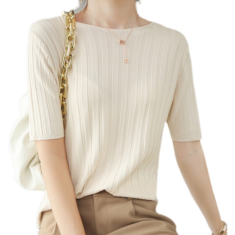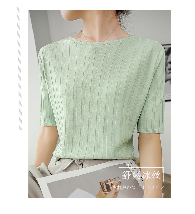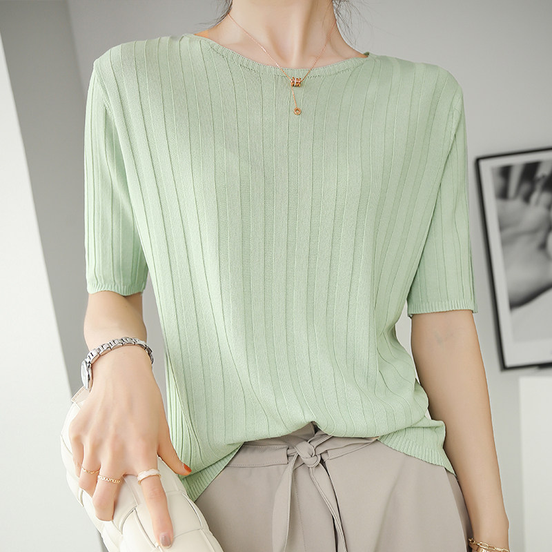 Летняя шелковая тонкая трикотажная футболка с круглым воротником, коллекция 2021, в корейском стиле