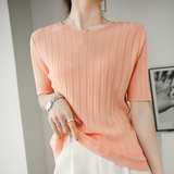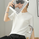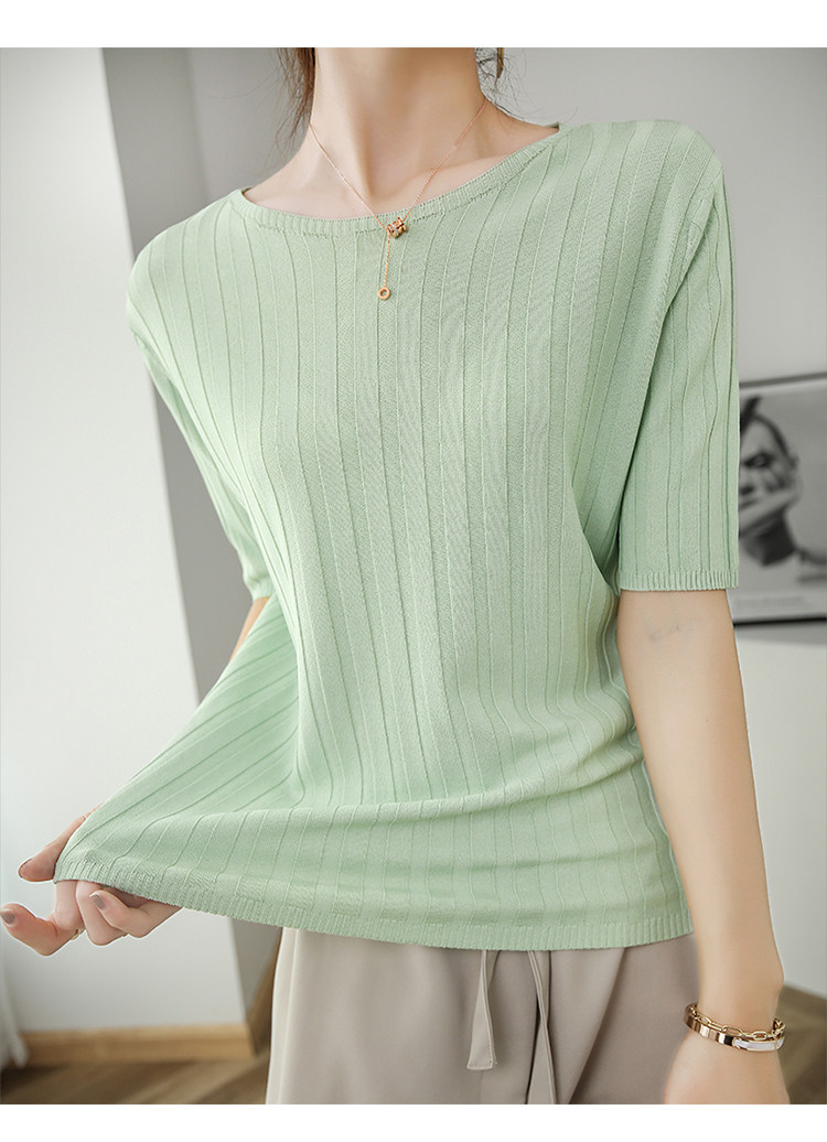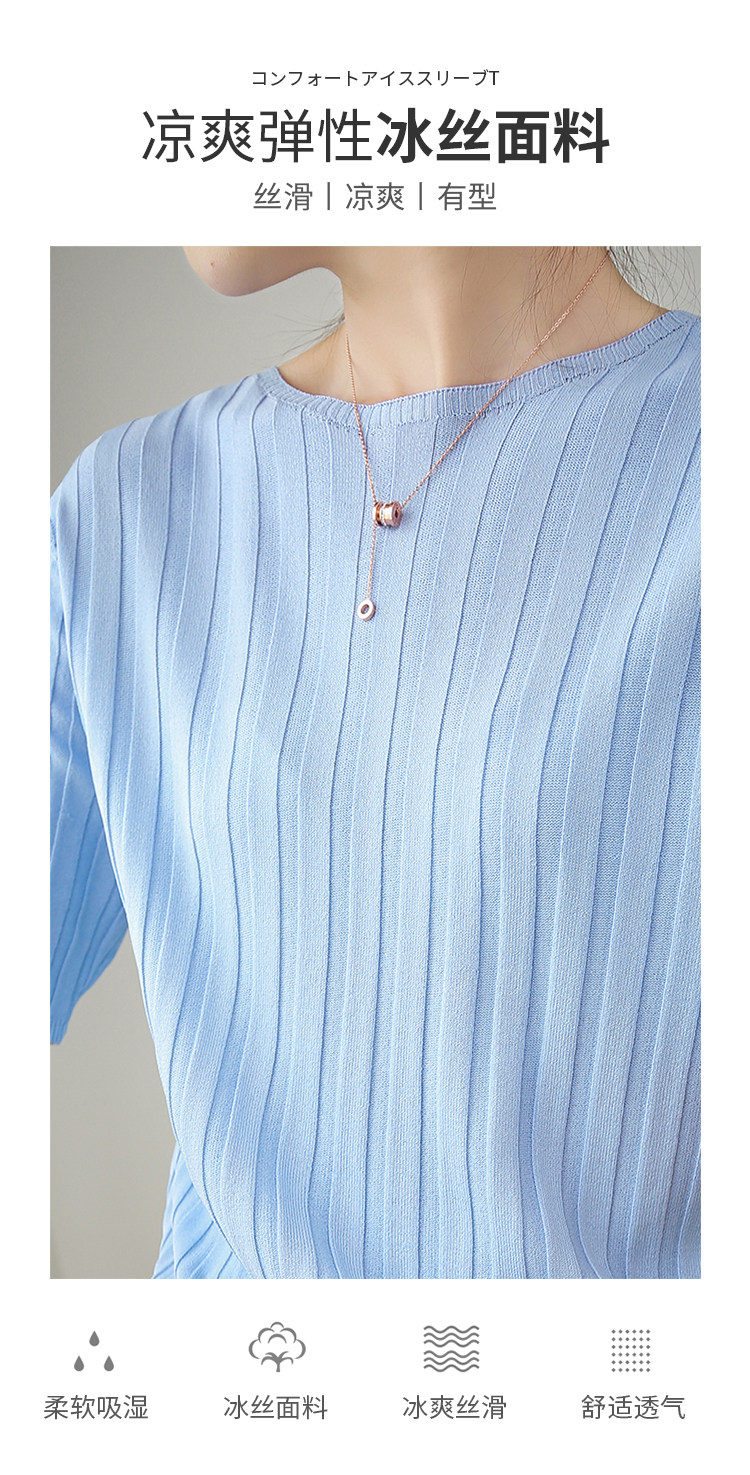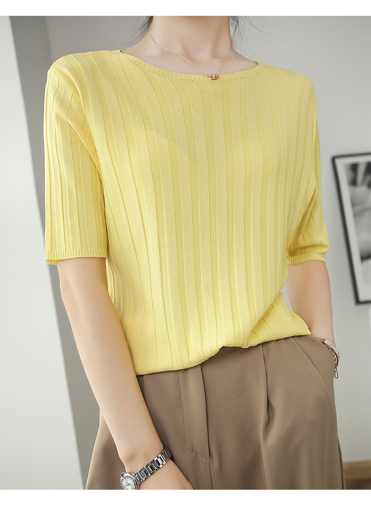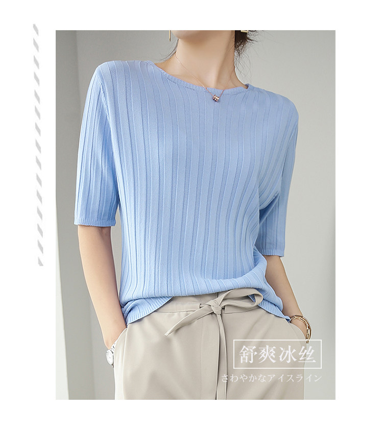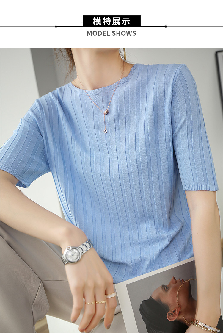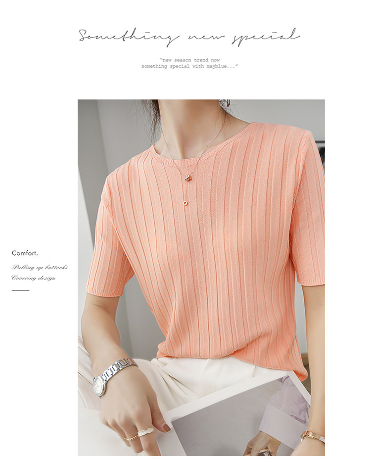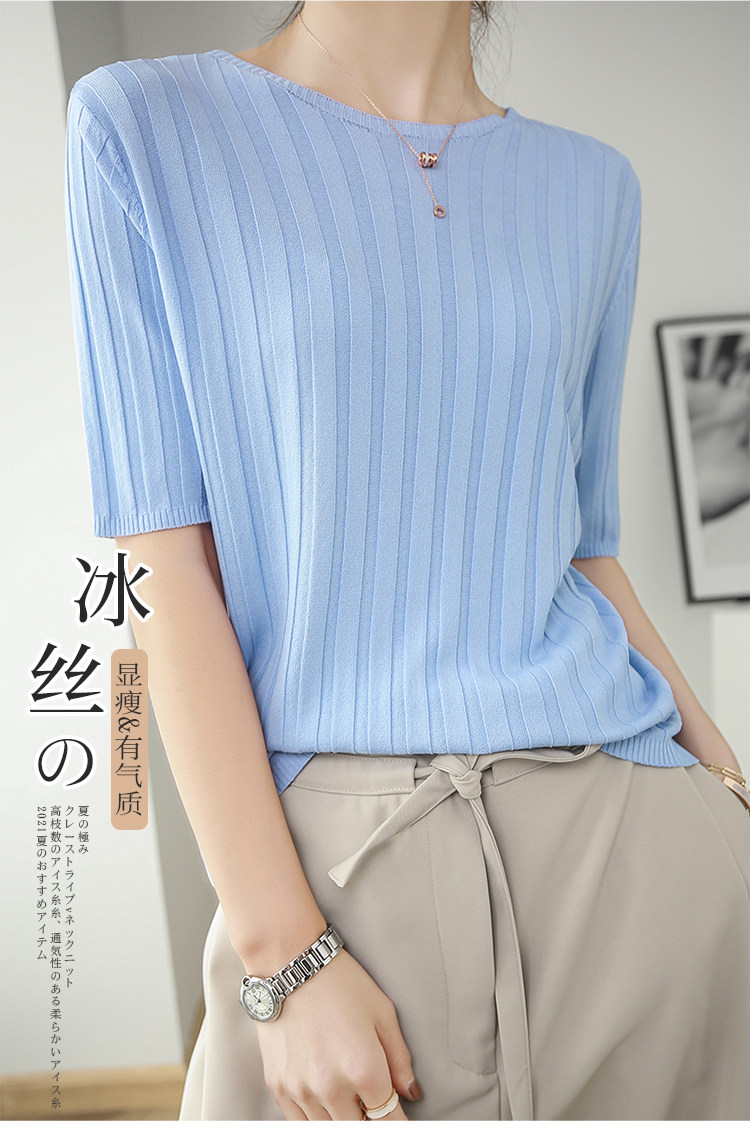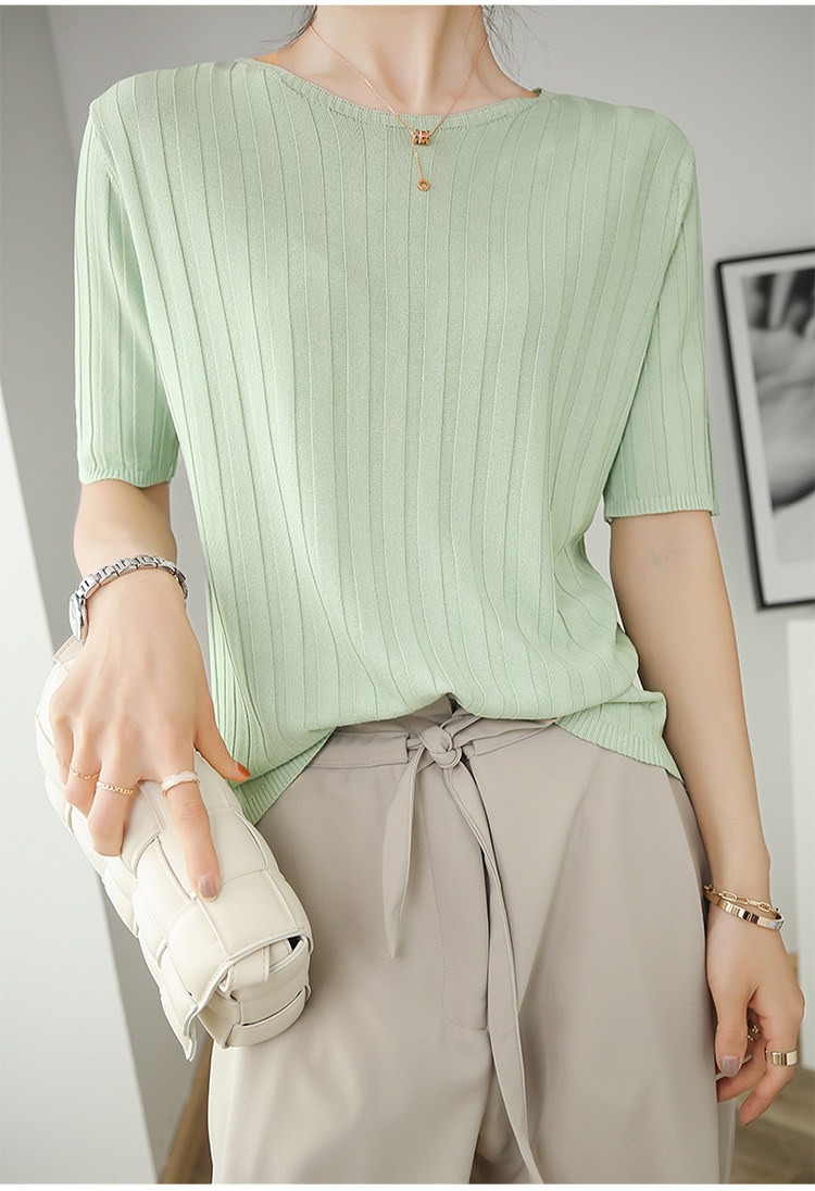 Летняя шелковая тонкая трикотажная футболка с круглым воротником, коллекция 2021, в корейском стиле