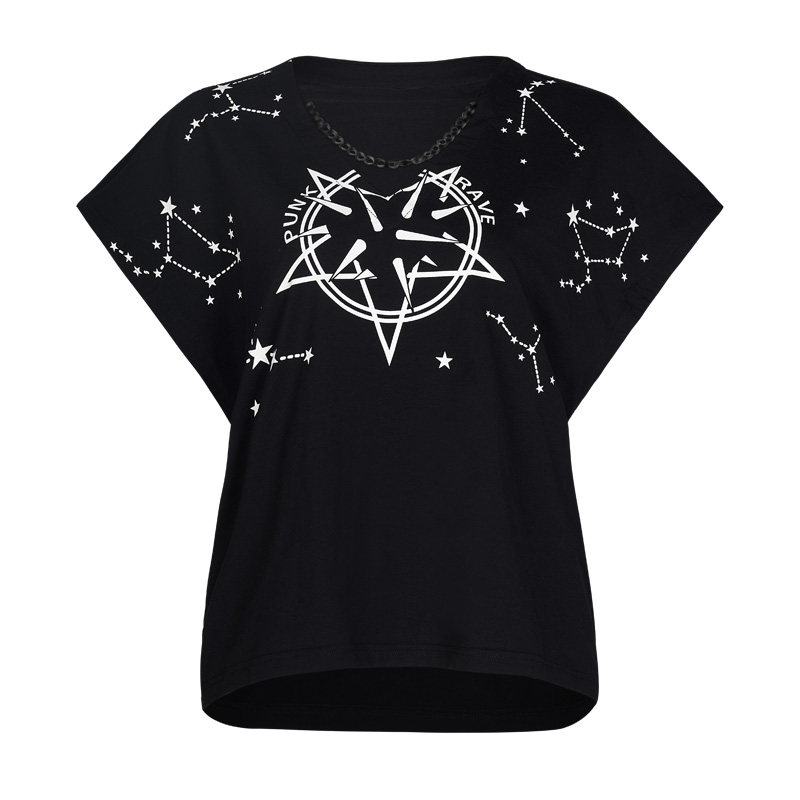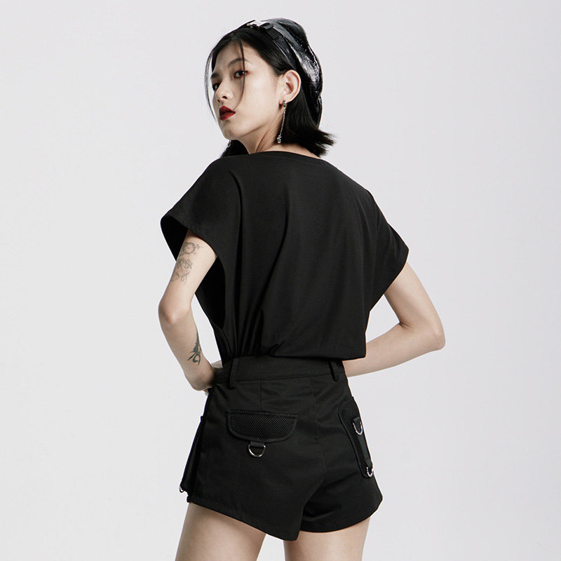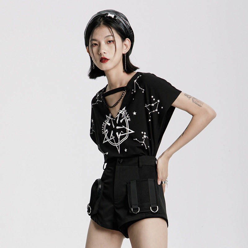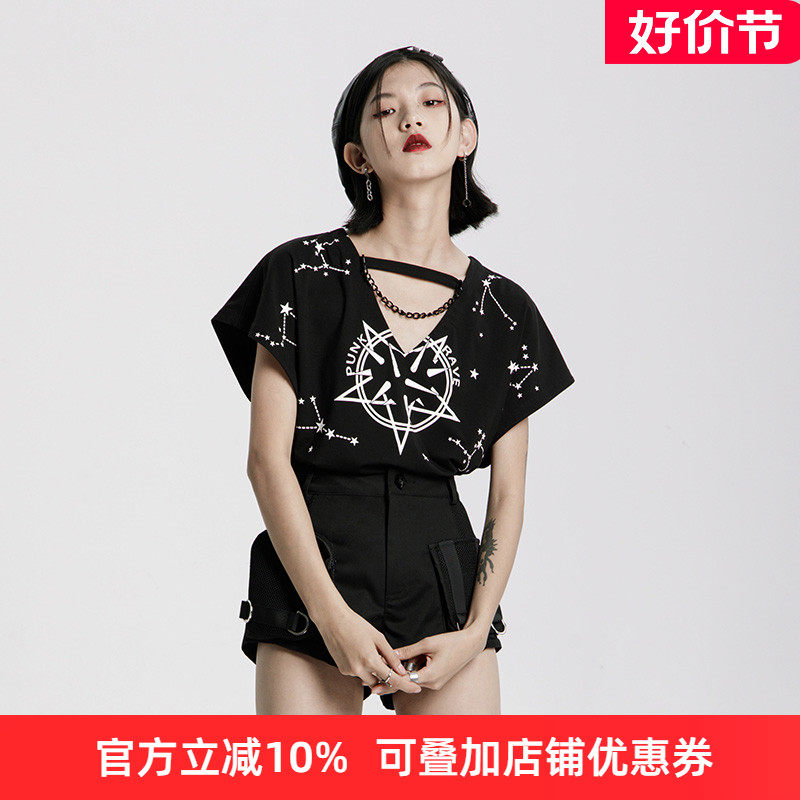Черная футболка, брендовая летняя летняя одежда, в стиле панк, короткий рукав, V-образный вырез, свободный крой