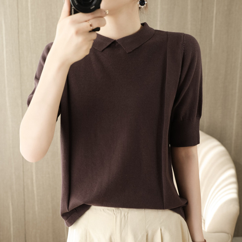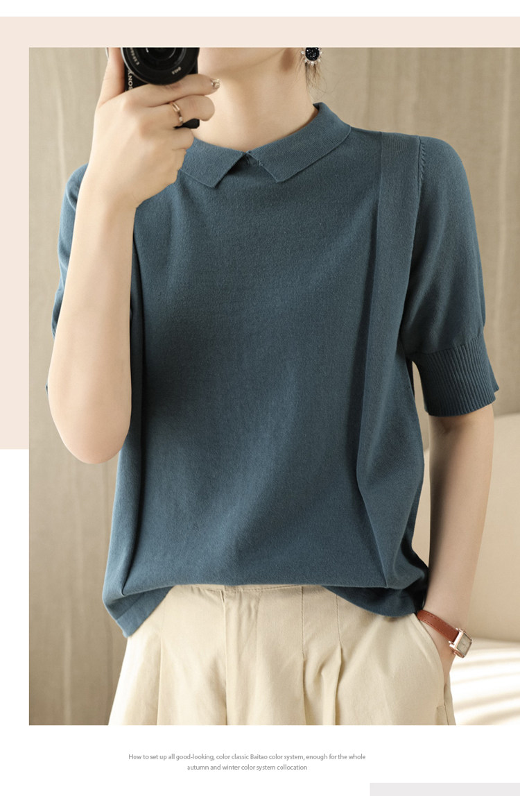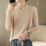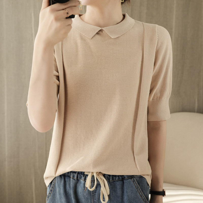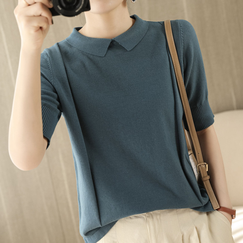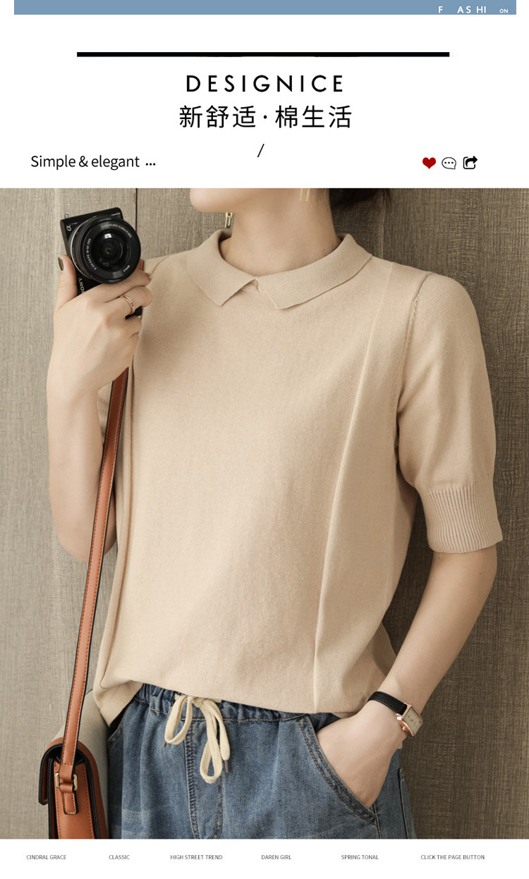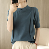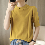 Хлопковая трикотажная летняя тонкая футболка с коротким рукавом, воротник поло, оверсайз, свободный крой, городской стиль