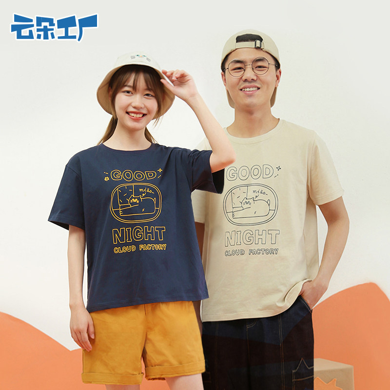云朵工厂 Комфортная хлопковая футболка для влюбленных для отдыха, короткий рукав, оверсайз