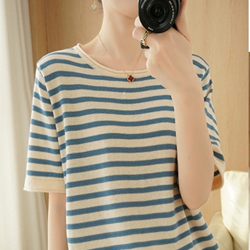 Хлопковая трикотажная летняя базовая приятная телу футболка, 100% хлопок, короткий рукав, из хлопка и льна, 2021 года