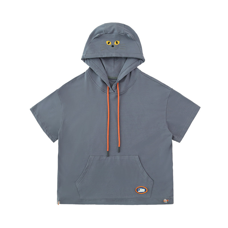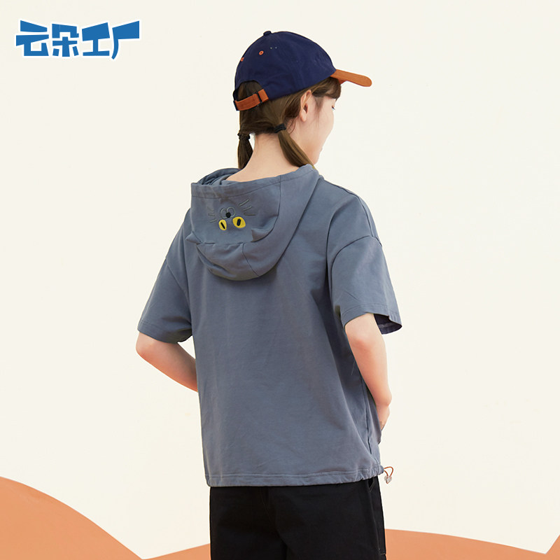 云朵工厂 Летняя толстовка с капюшоном для отдыха, футболка, короткий рукав, свободный крой