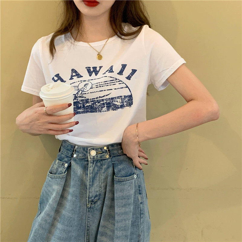 Летняя дизайнерская короткая футболка с коротким рукавом, коллекция 2023, французский стиль, облегающий крой, подходит для подростков