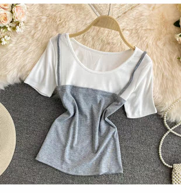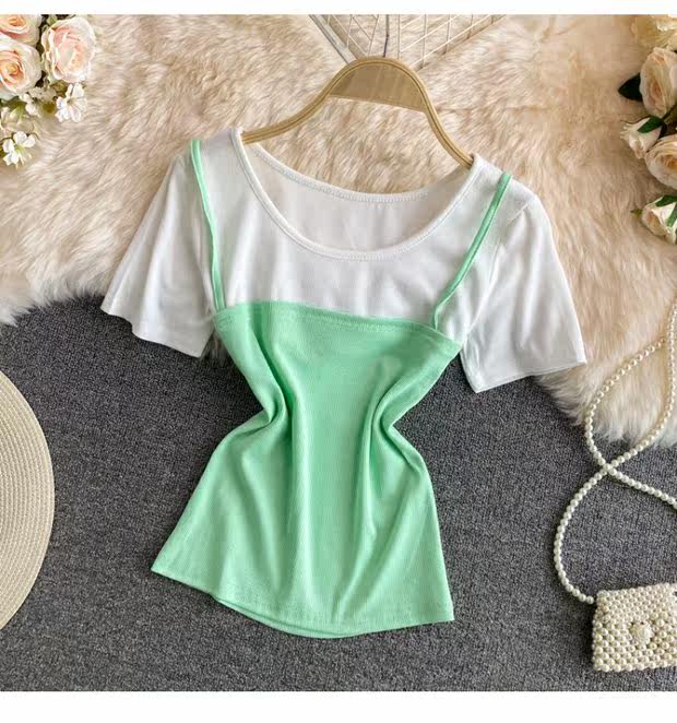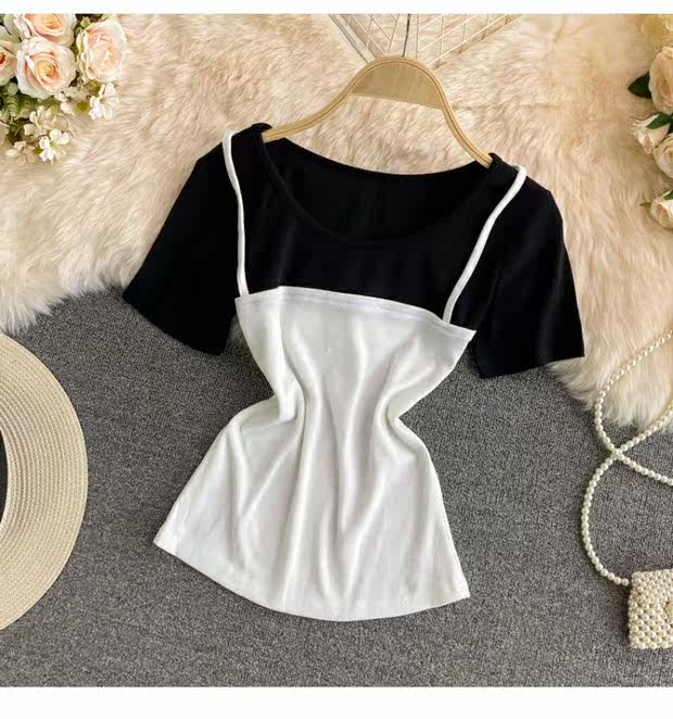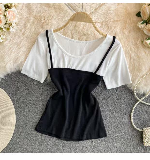 Летняя одежда, комплект, приталенная короткая майка топ, коллекция 2021, эффект подтяжки, в западном стиле