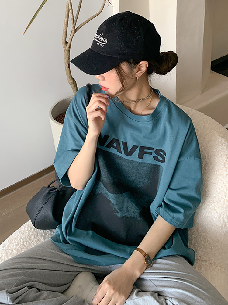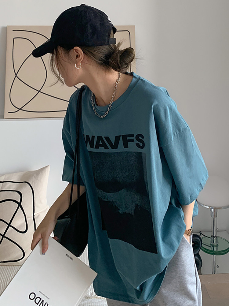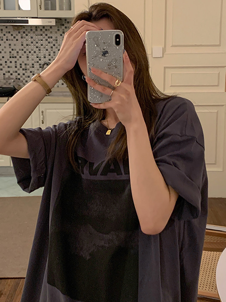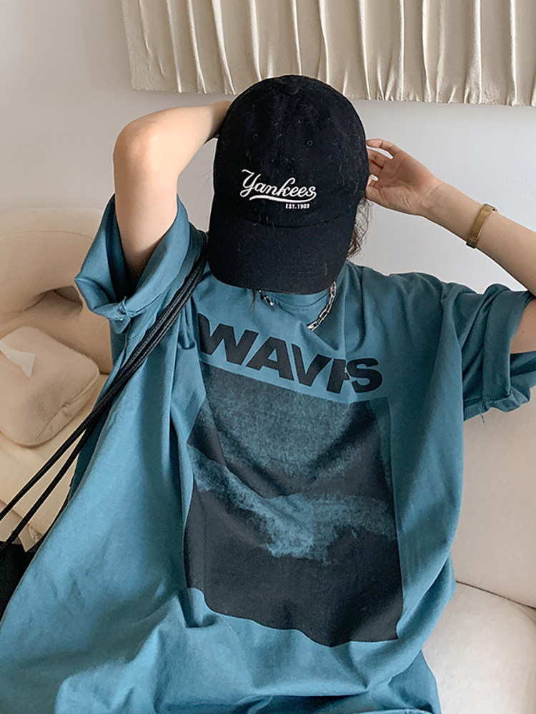 Tide, весенняя летняя дизайнерская футболка с коротким рукавом, длинная парная одежда, тренд сезона, свободный крой, средней длины, для влюбленных