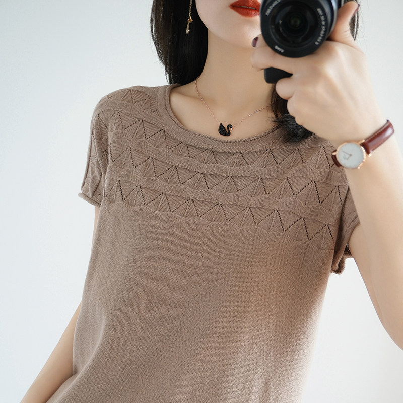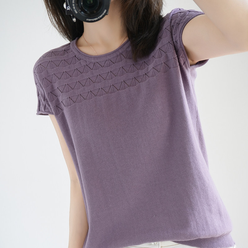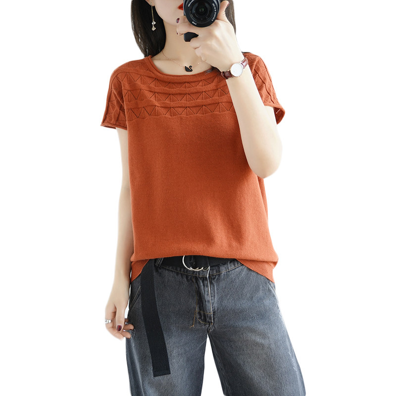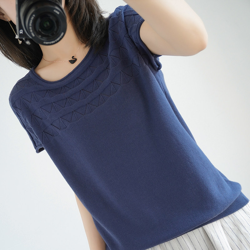 Летняя хлопковая трикотажная базовая тонкая футболка с круглым воротником, с рукавом, короткий рукав, большой размер