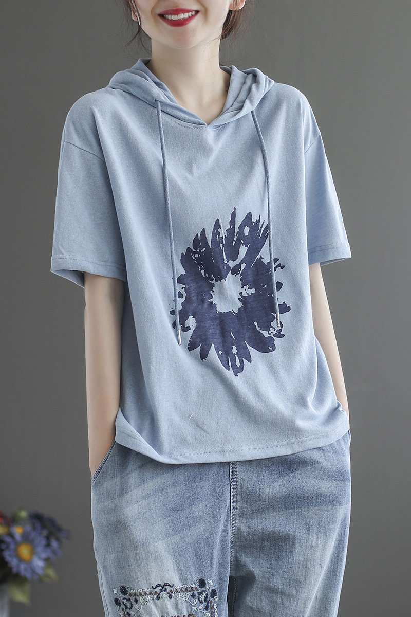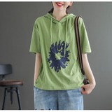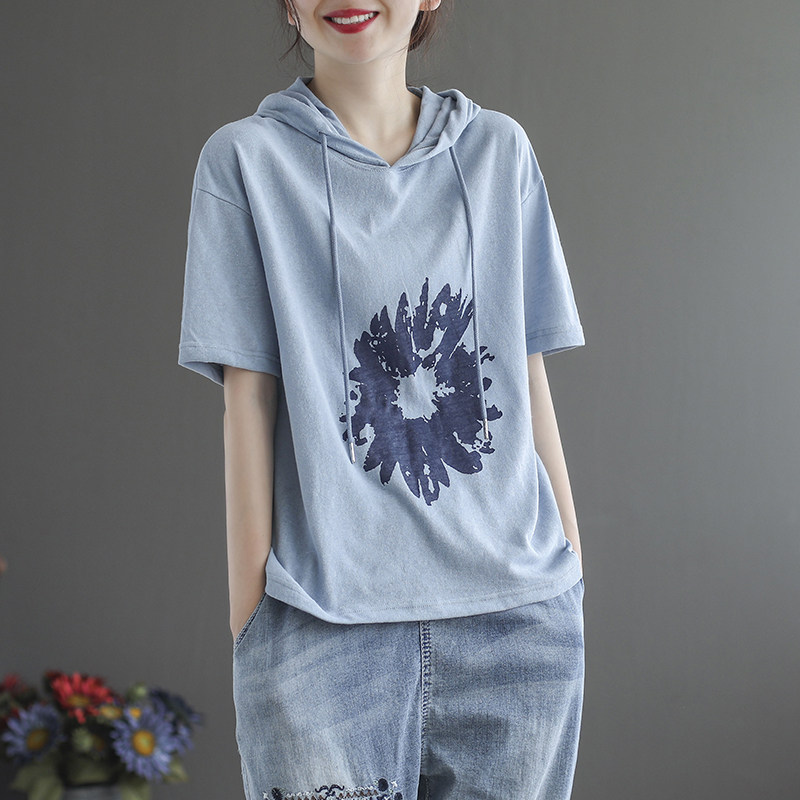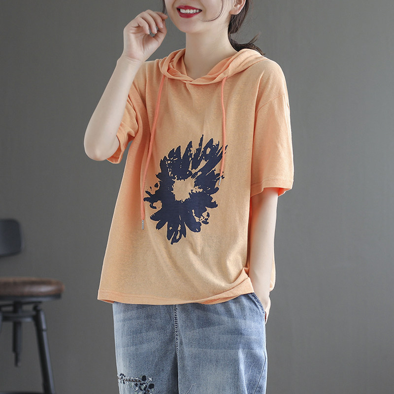 Толстовка с капюшоном, модная футболка с коротким рукавом, из хлопка и льна, большой размер, по фигуре
