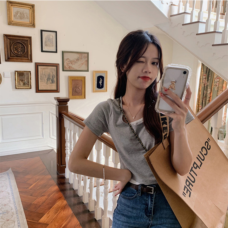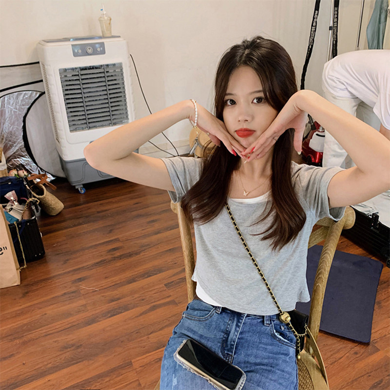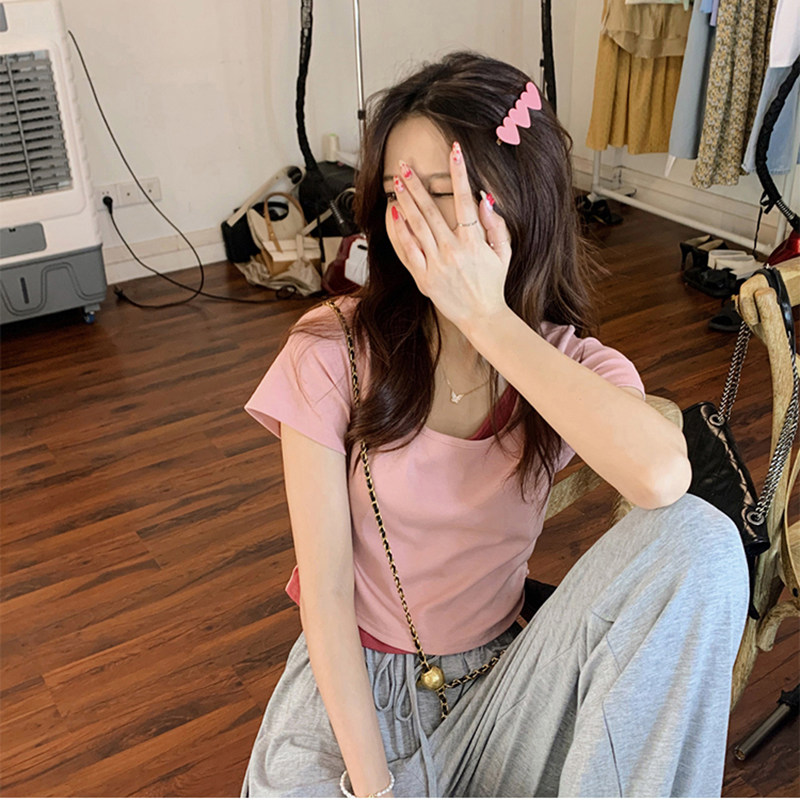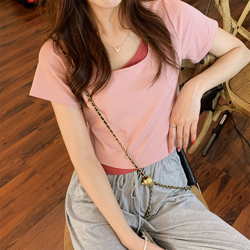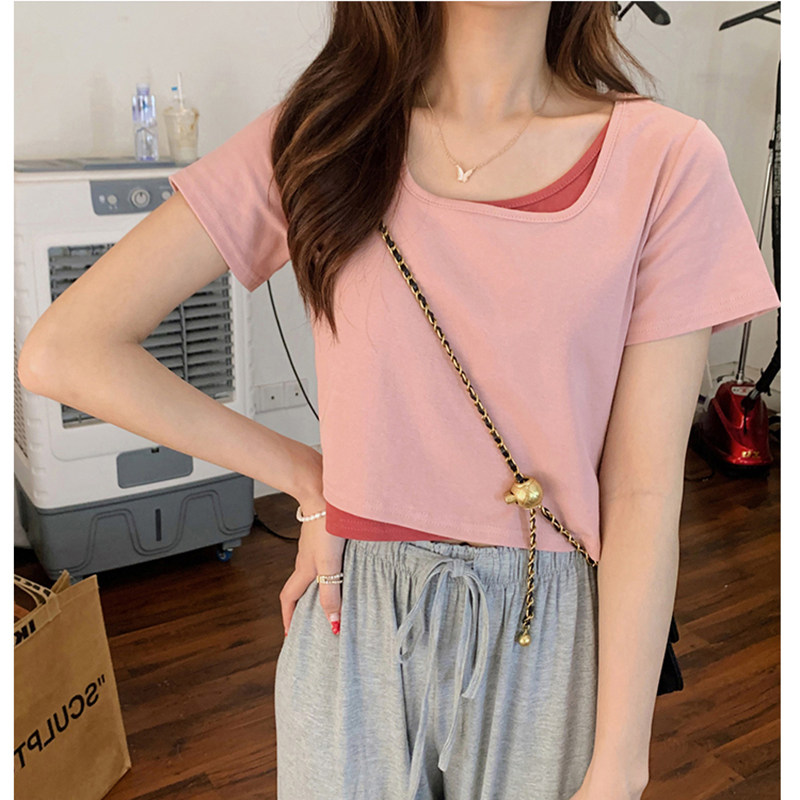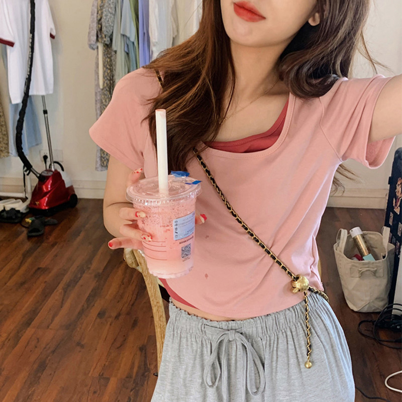 Розовая футболка, короткий сексуальный летний комплект, высокая талия, в обтяжку