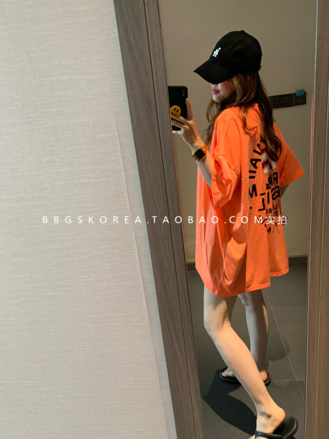 Летняя флуоресцентная розовая футболка с коротким рукавом, (в наличии на складе), оверсайз, большой размер
