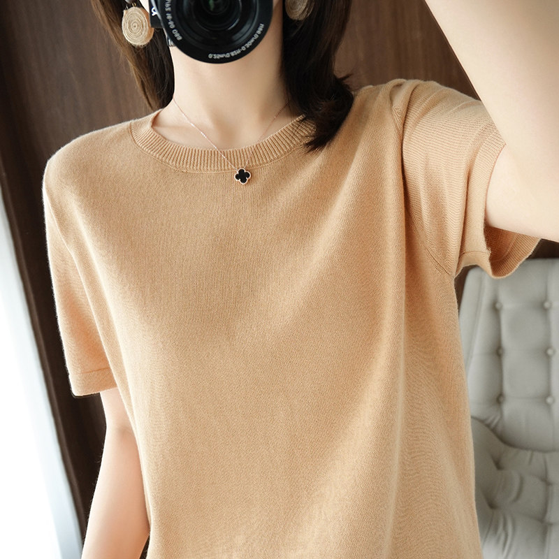 Трикотажная весенняя летняя хлопковая футболка с круглым воротником, короткий рукав, 100% хлопок, облегающий крой