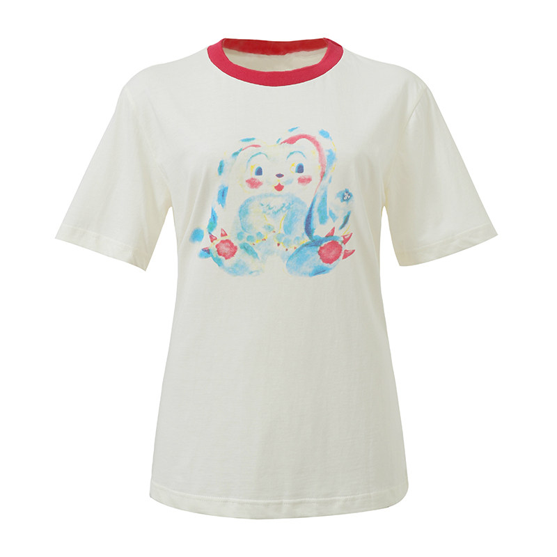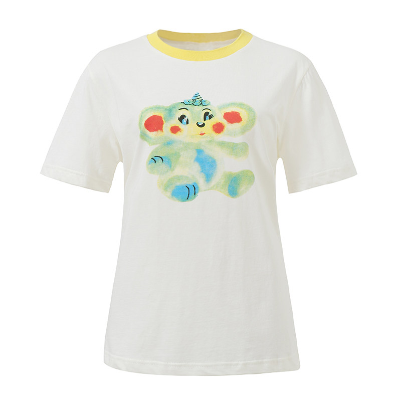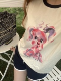 Милая бежевая хлопковая футболка с коротким рукавом
