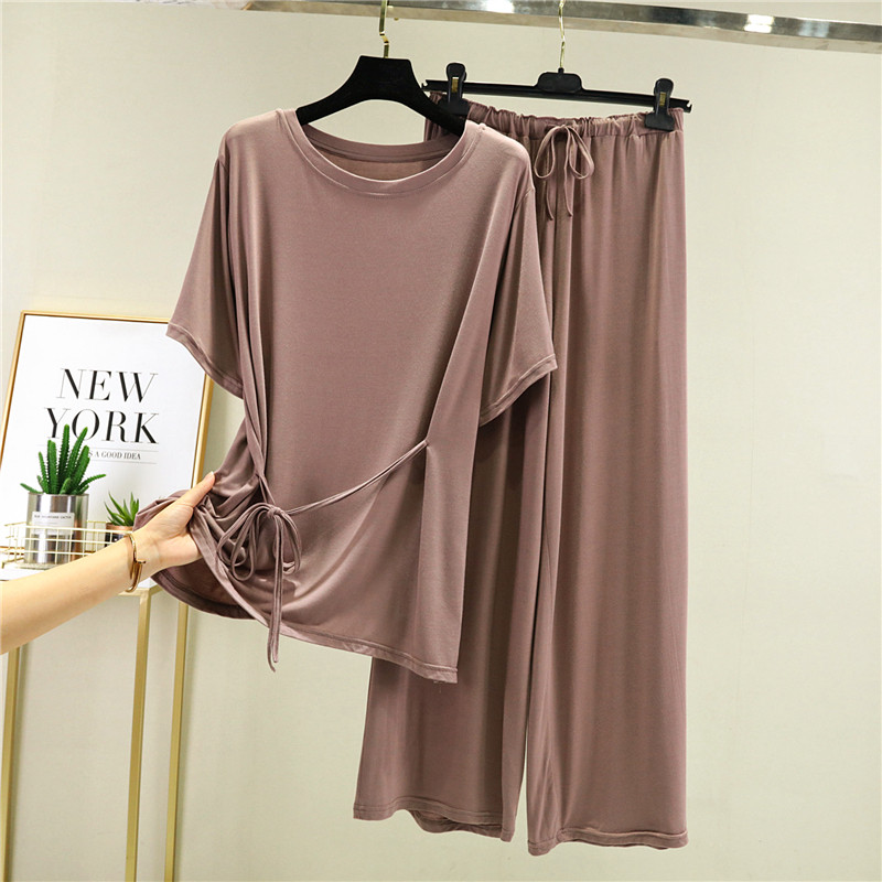 Футболка, штаны, комплект, тонкая пижама, короткий рукав
