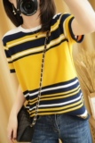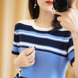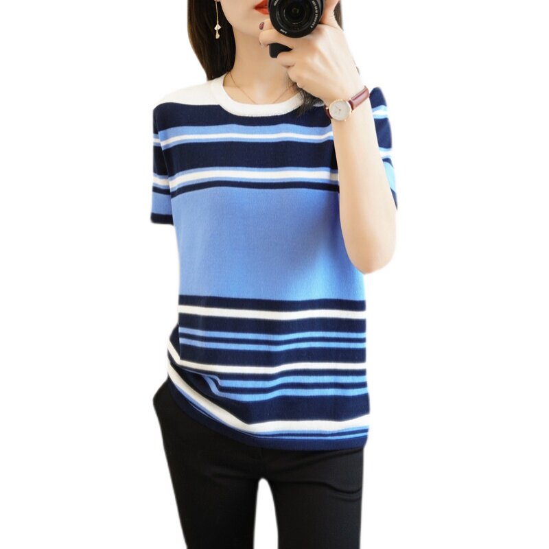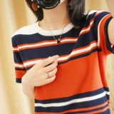 Трикотажная короткая хлопковая модная футболка с круглым воротником, короткий рукав, в корейском стиле