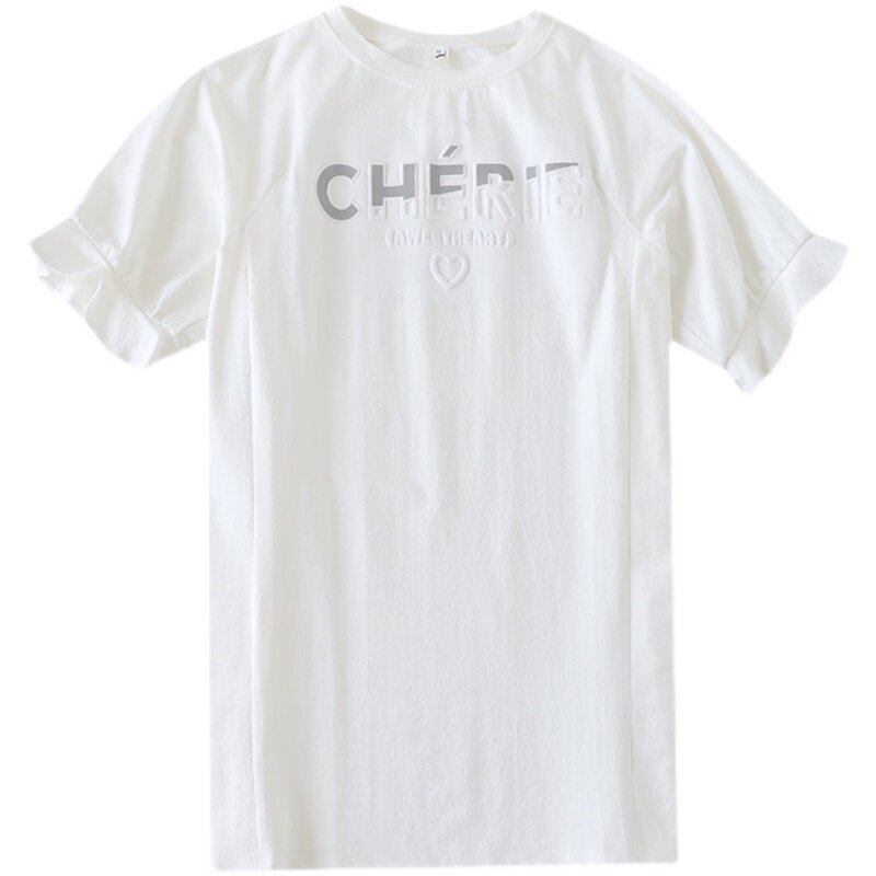 Тонкая футболка с коротким рукавом, летняя дизайнерская хлопковая длинная летняя одежда, 2021 года, большой размер, тренд сезона, оверсайз, средней длины
