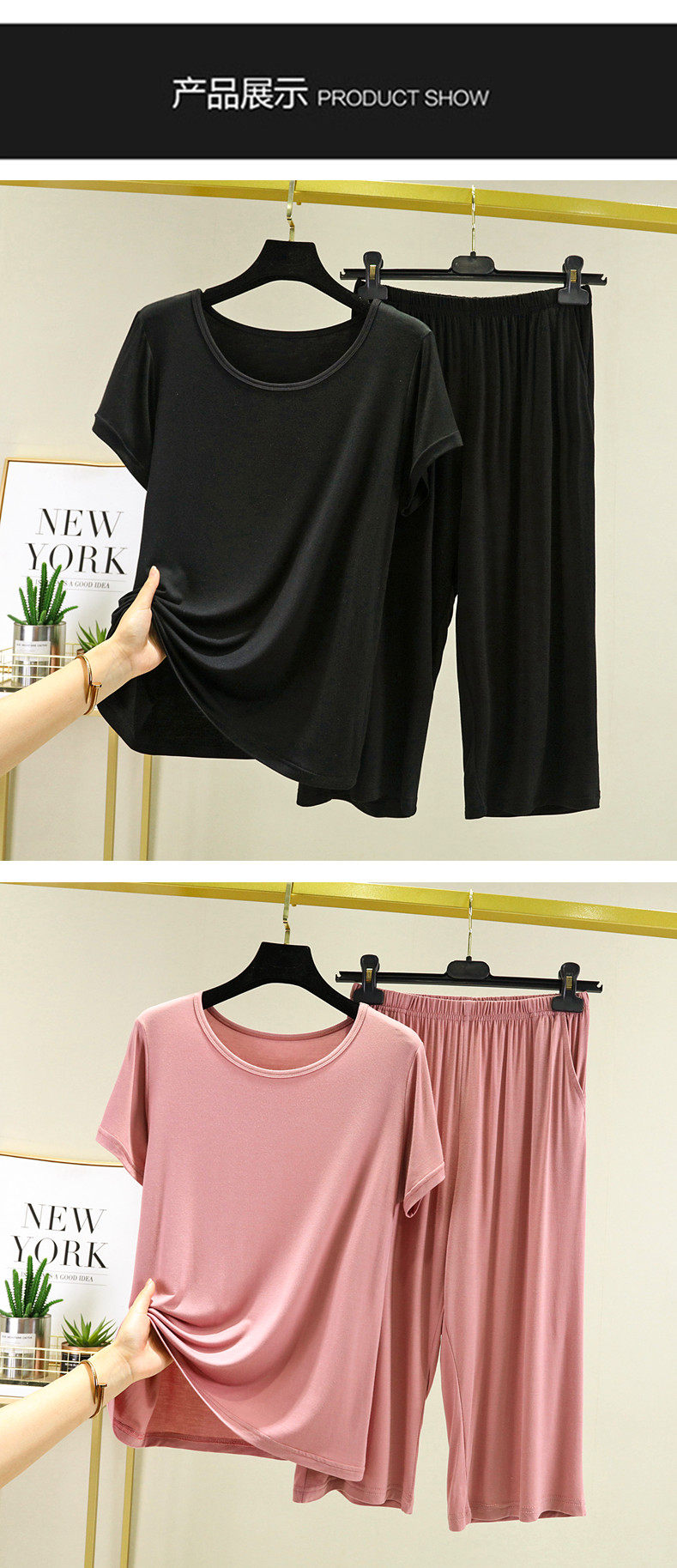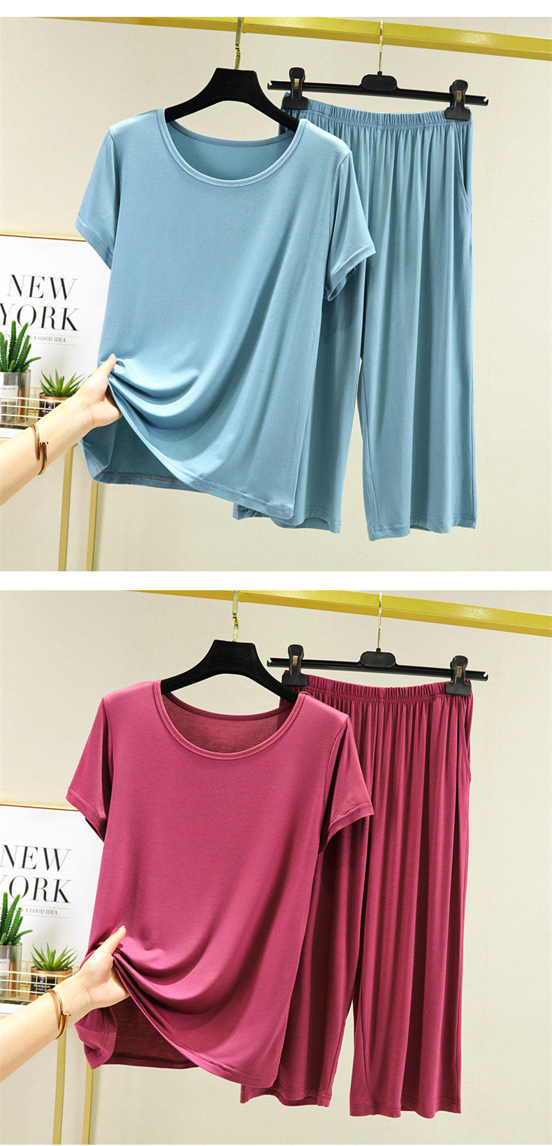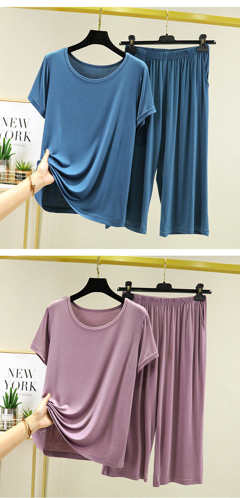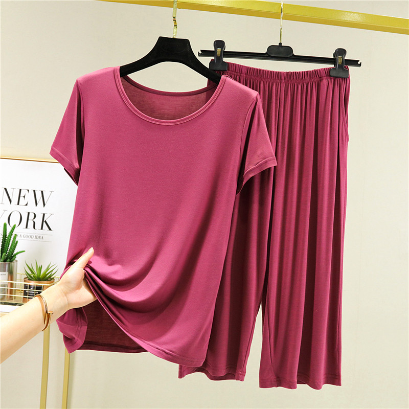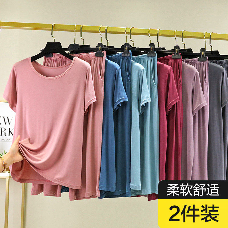 Футболка с коротким рукавом, тонкая пижама, комплект, короткий рукав, большой размер