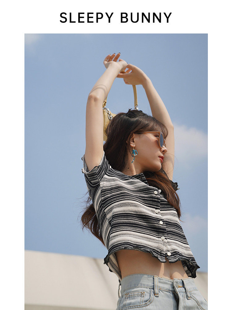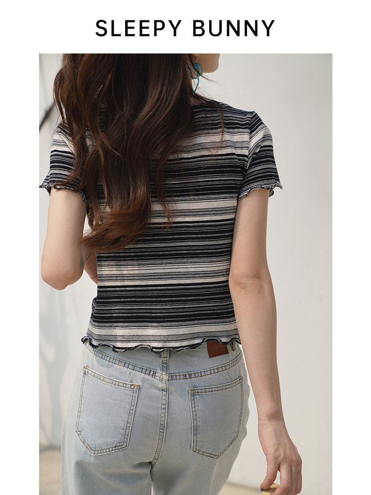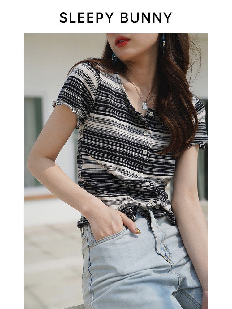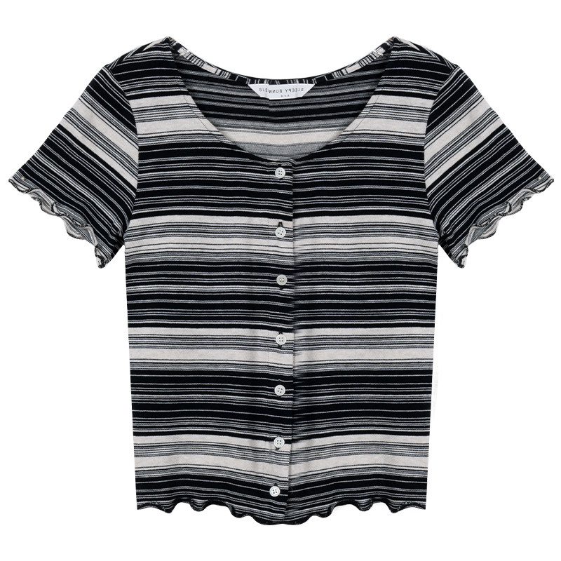 Сонный кролик, маленькая черно-белая полосатая футболка, женская летняя коротка с короткими рукавами.