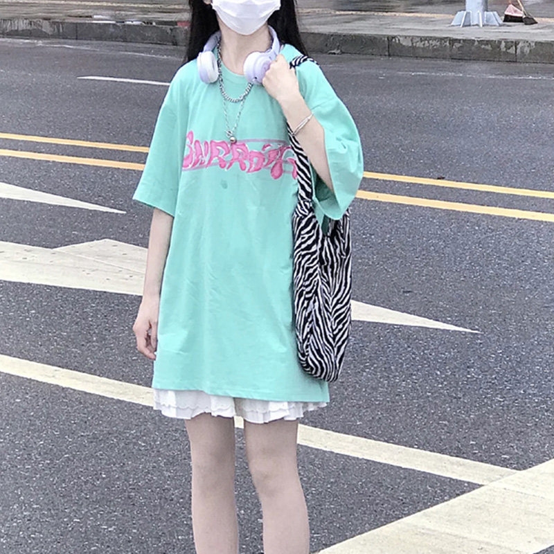 Мятная дизайнерская летняя футболка с коротким рукавом, тренд сезона, в корейском стиле, коллекция 2023