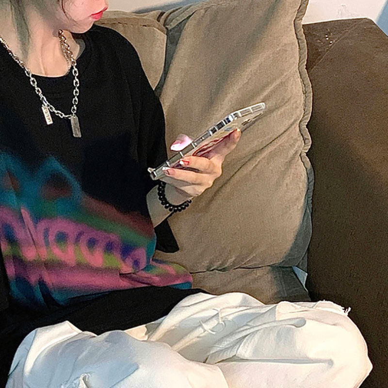 Tide, черная летняя футболка, европейский стиль, свободный крой, коллекция 2021, оверсайз
