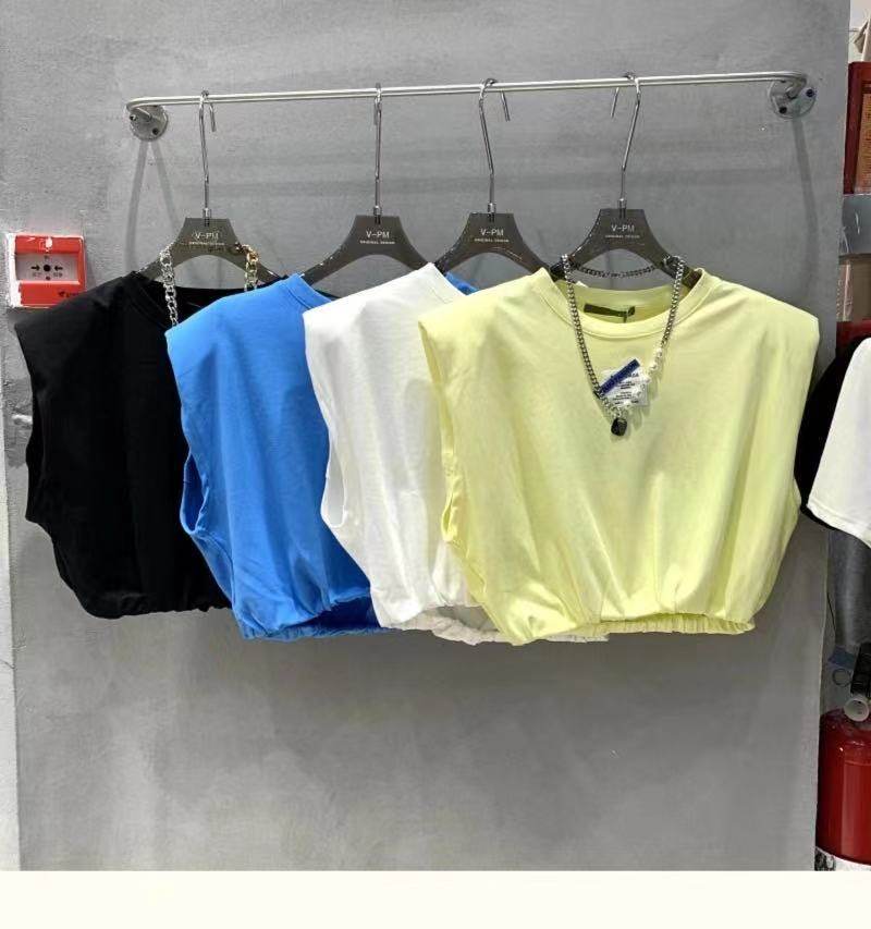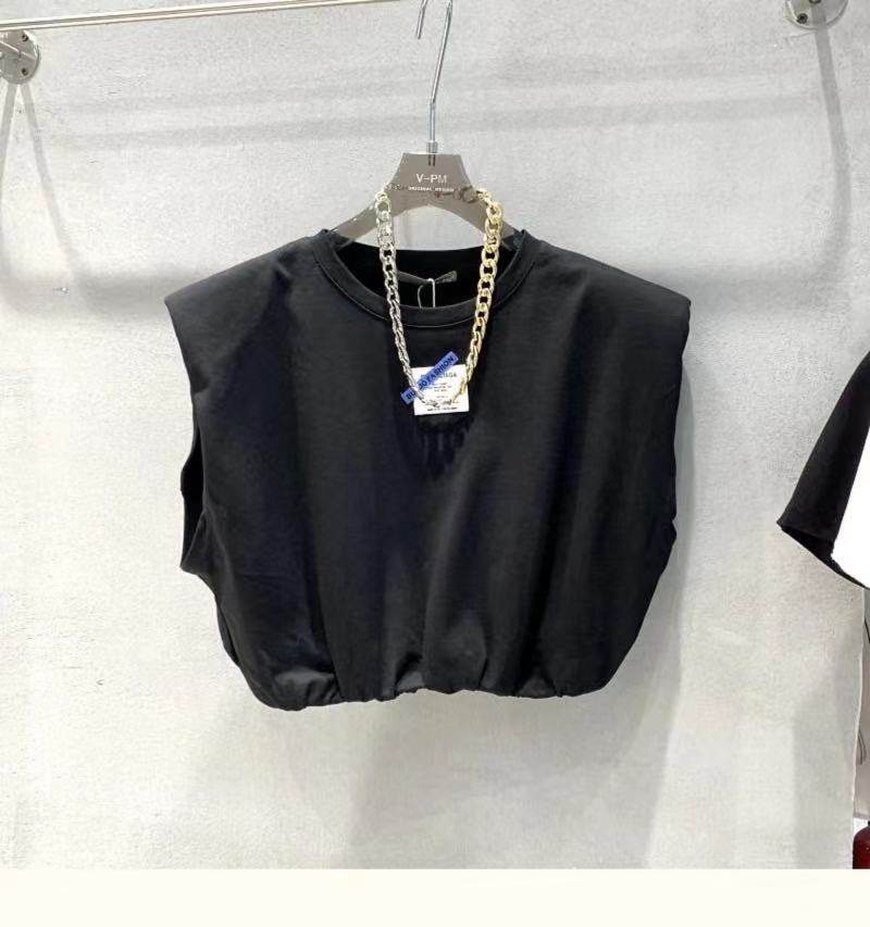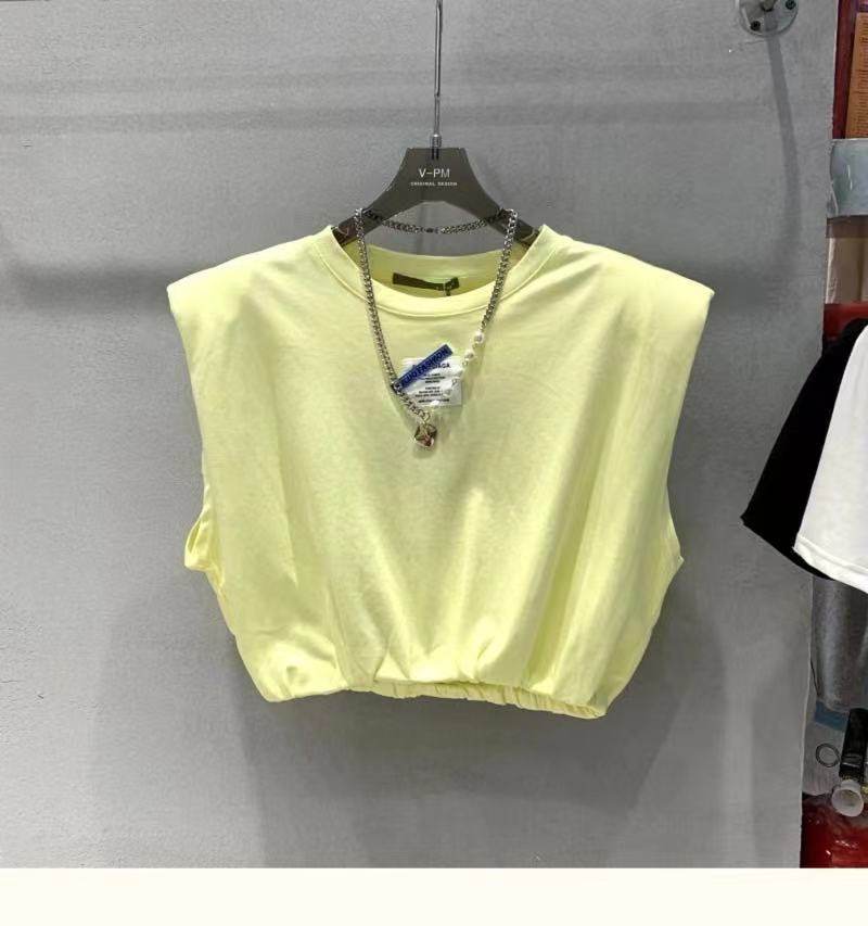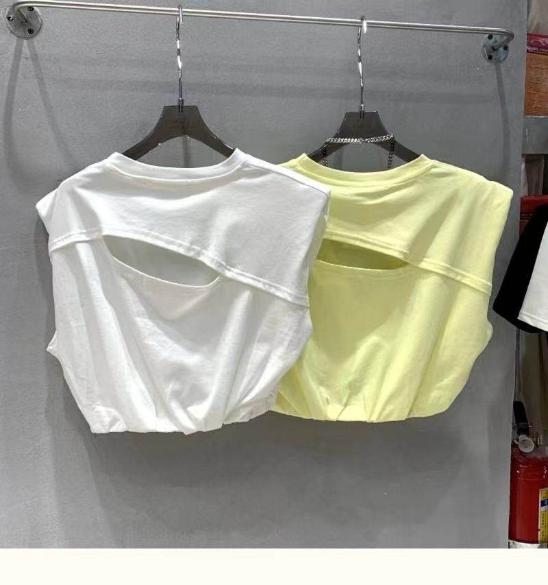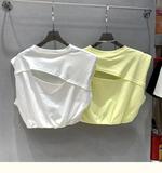 Короткие наплечники без рукавов, жилет с круглым воротником, футболка, оверсайз
