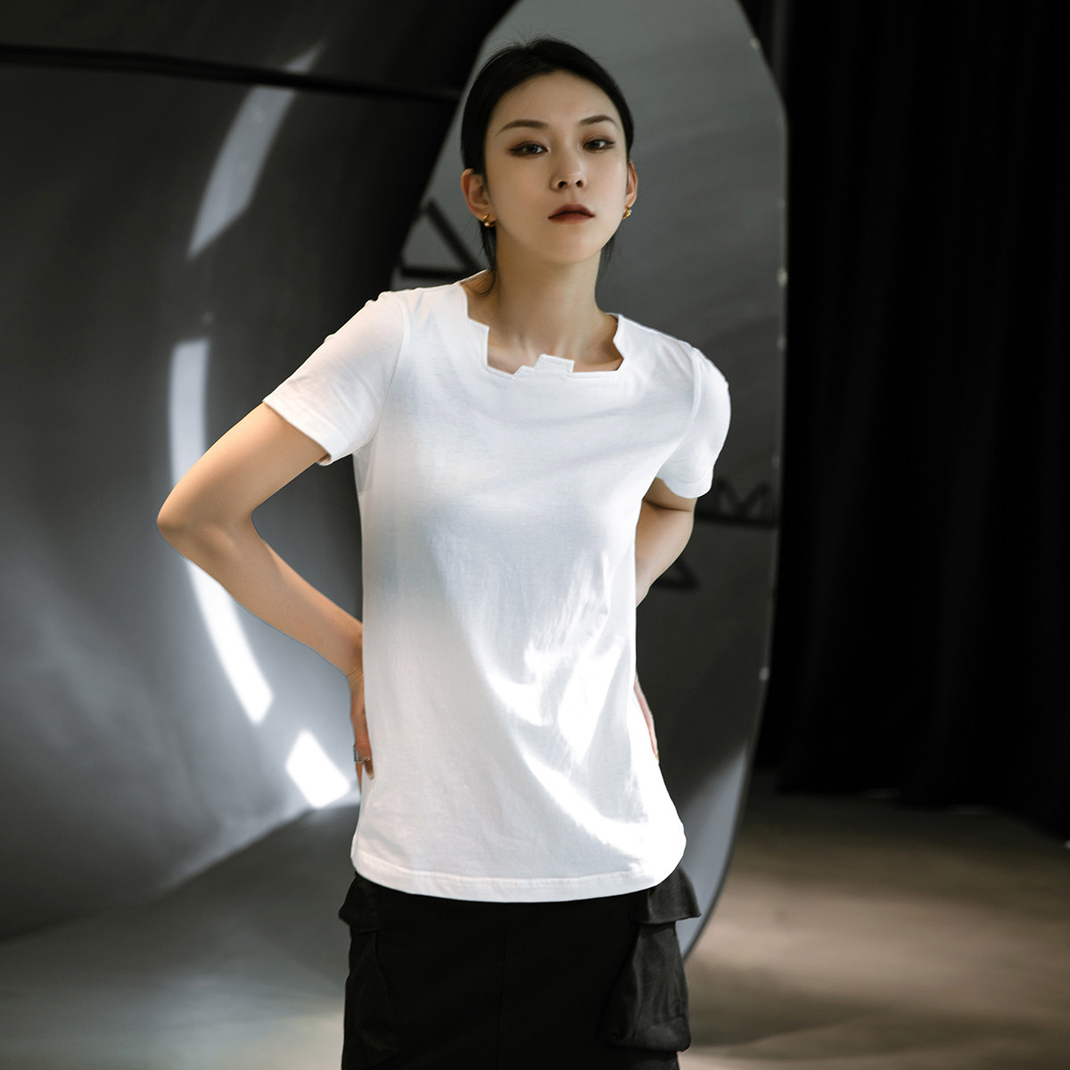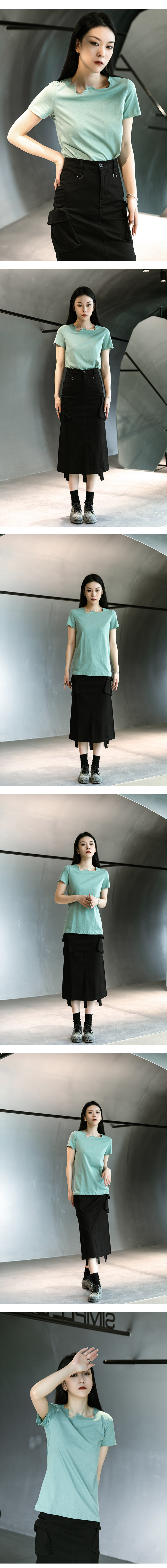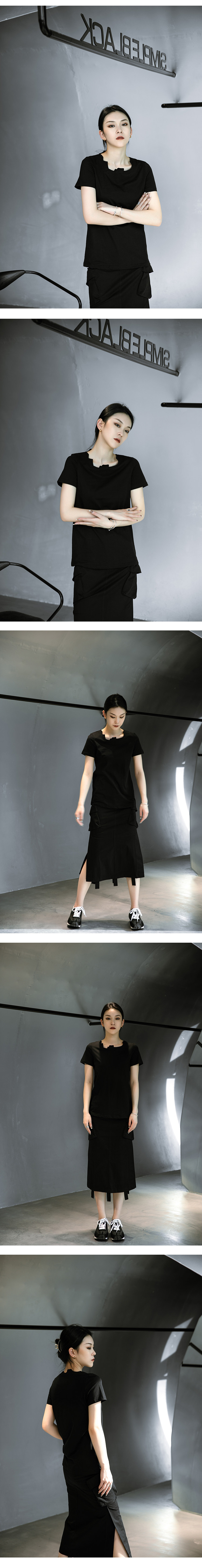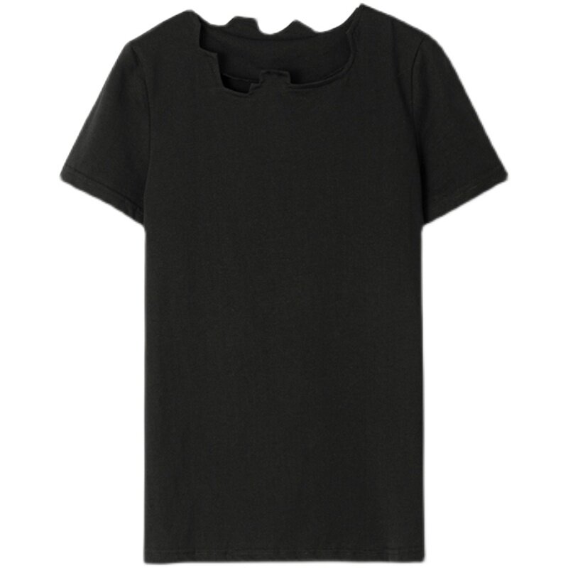 Простые чернокожие японские диаблоневые сагиттарий нерегулярных воротничков повседневные короткие короткие T -мала
