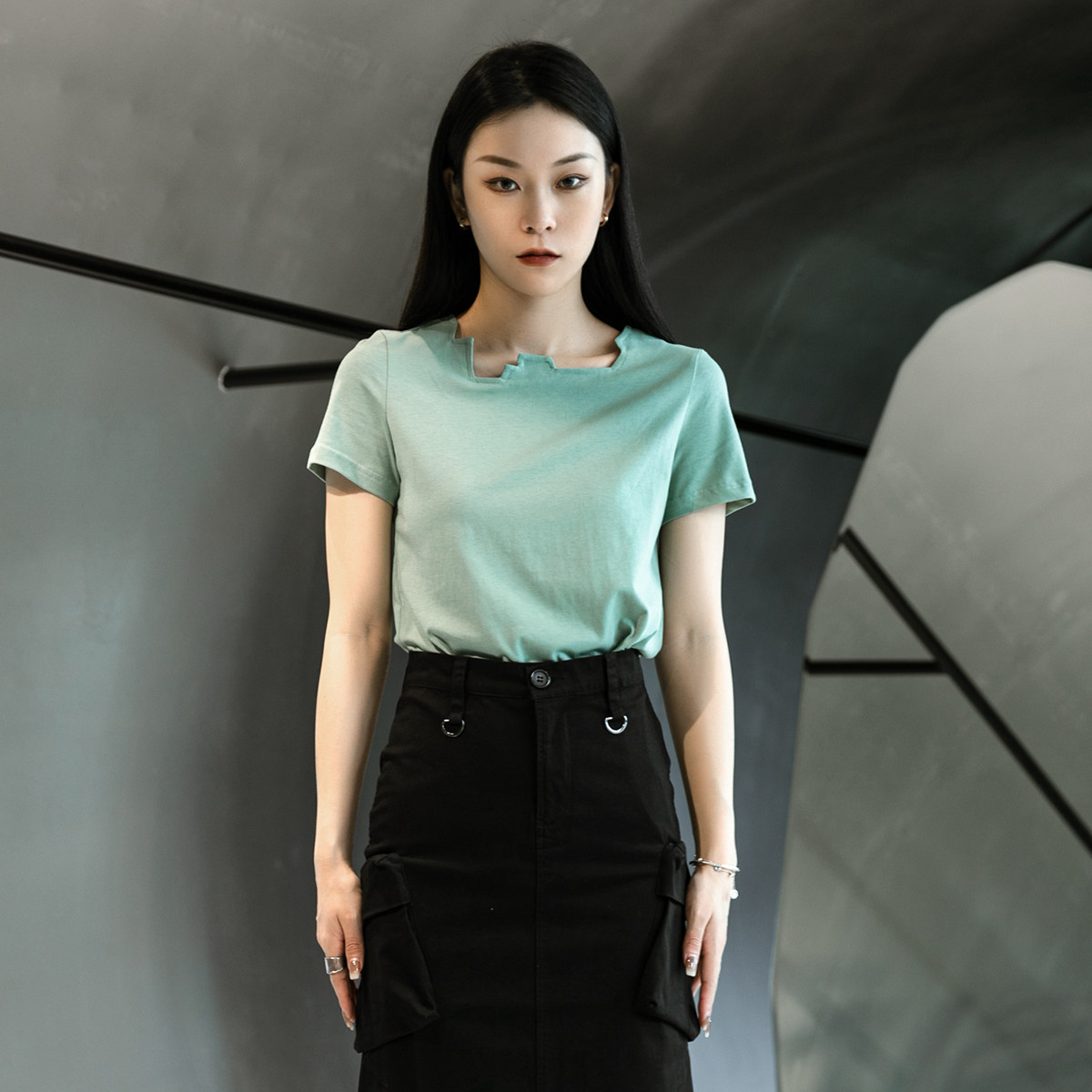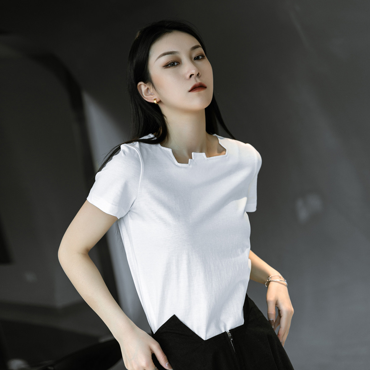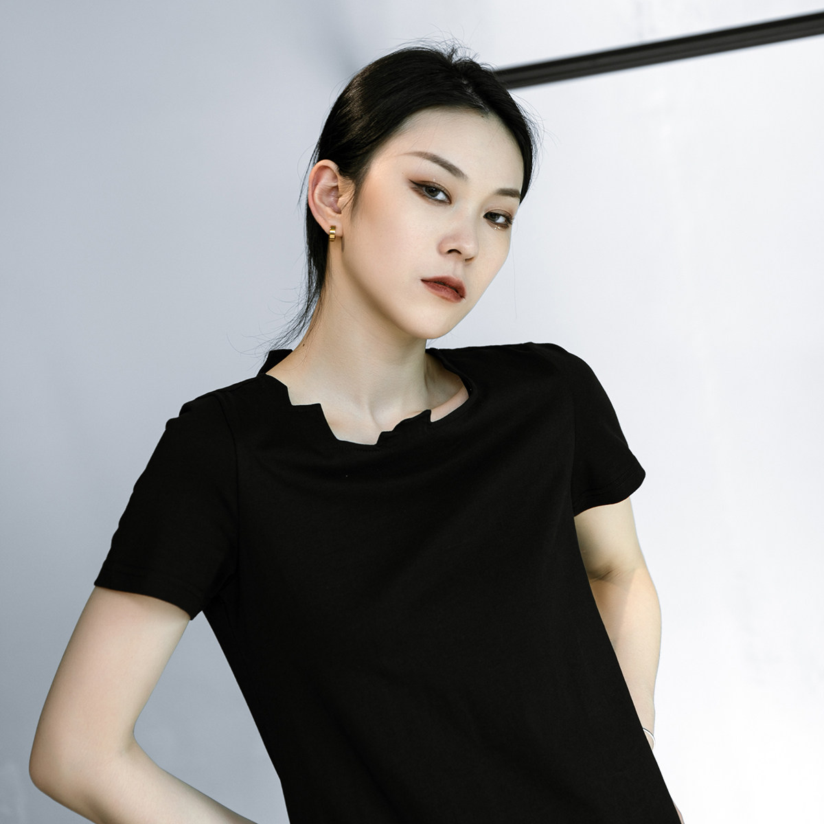 Простые чернокожие японские диаблоневые сагиттарий нерегулярных воротничков повседневные короткие короткие T -мала