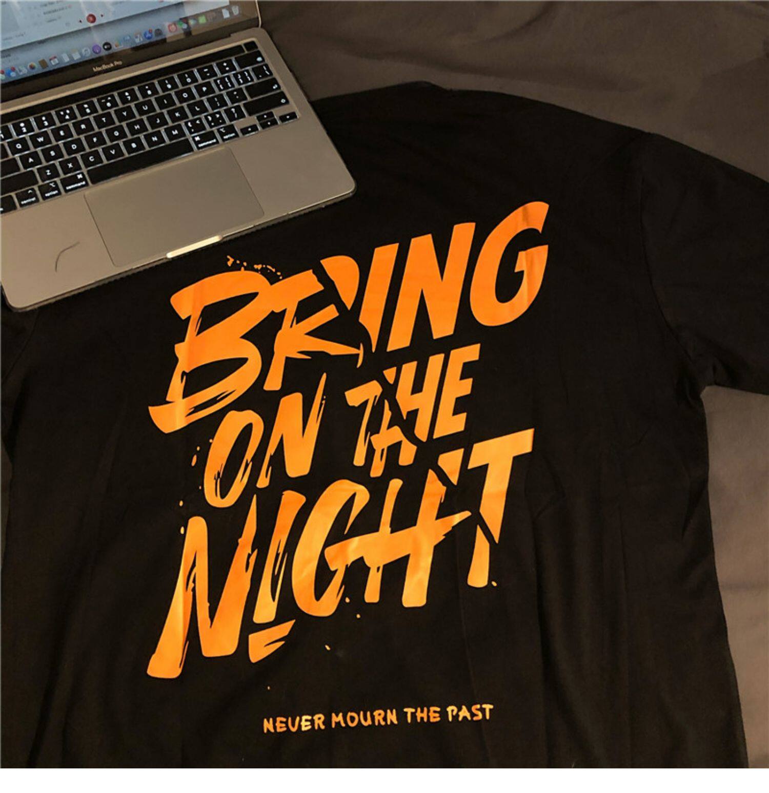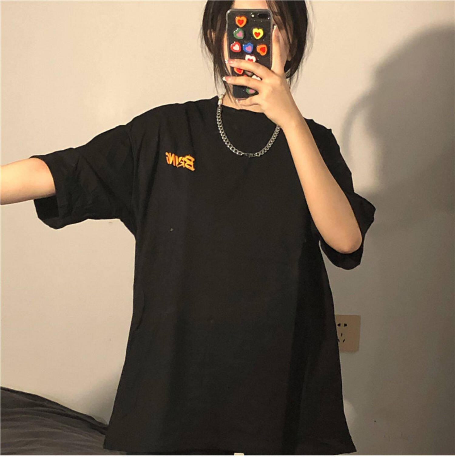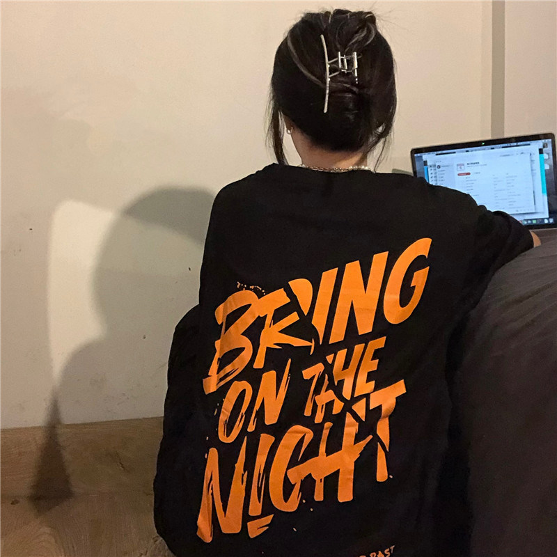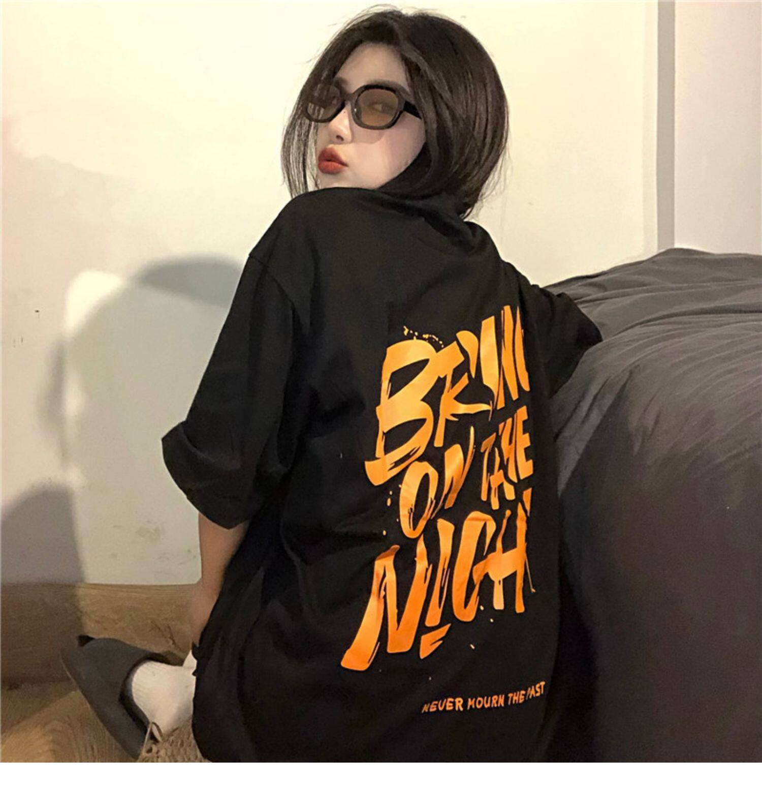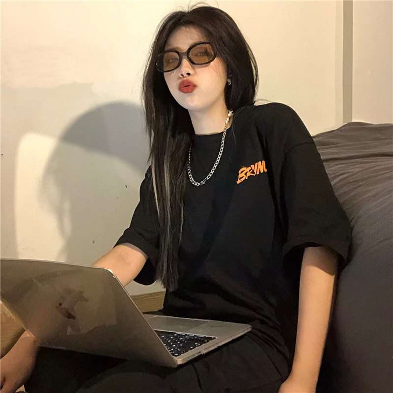 Tide, ретро черная футболка, в американском стиле, свободный крой, оверсайз
