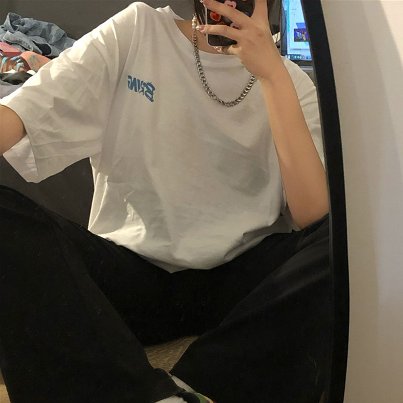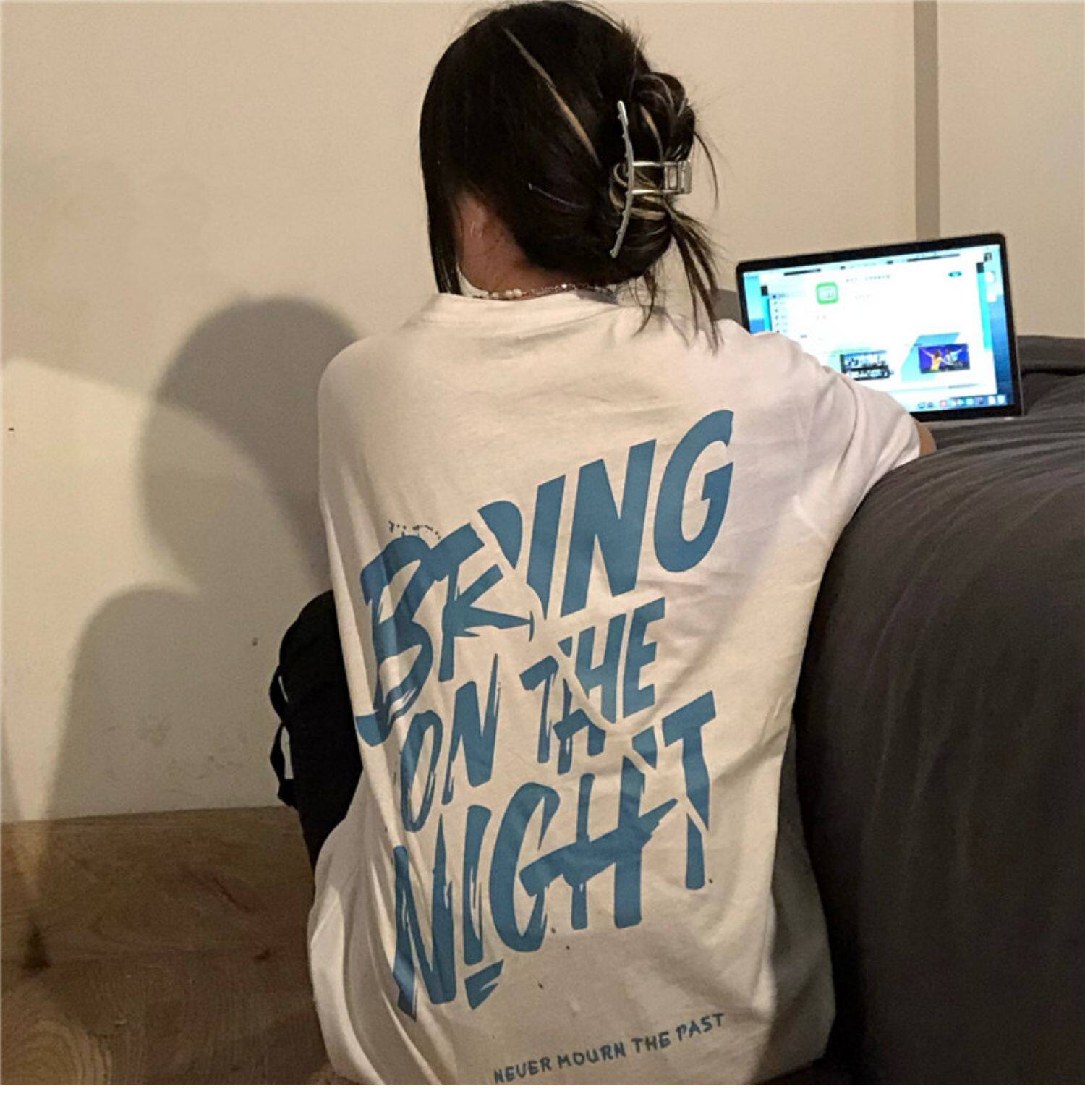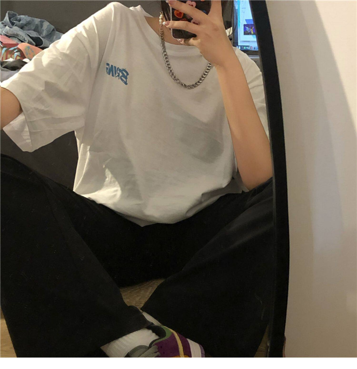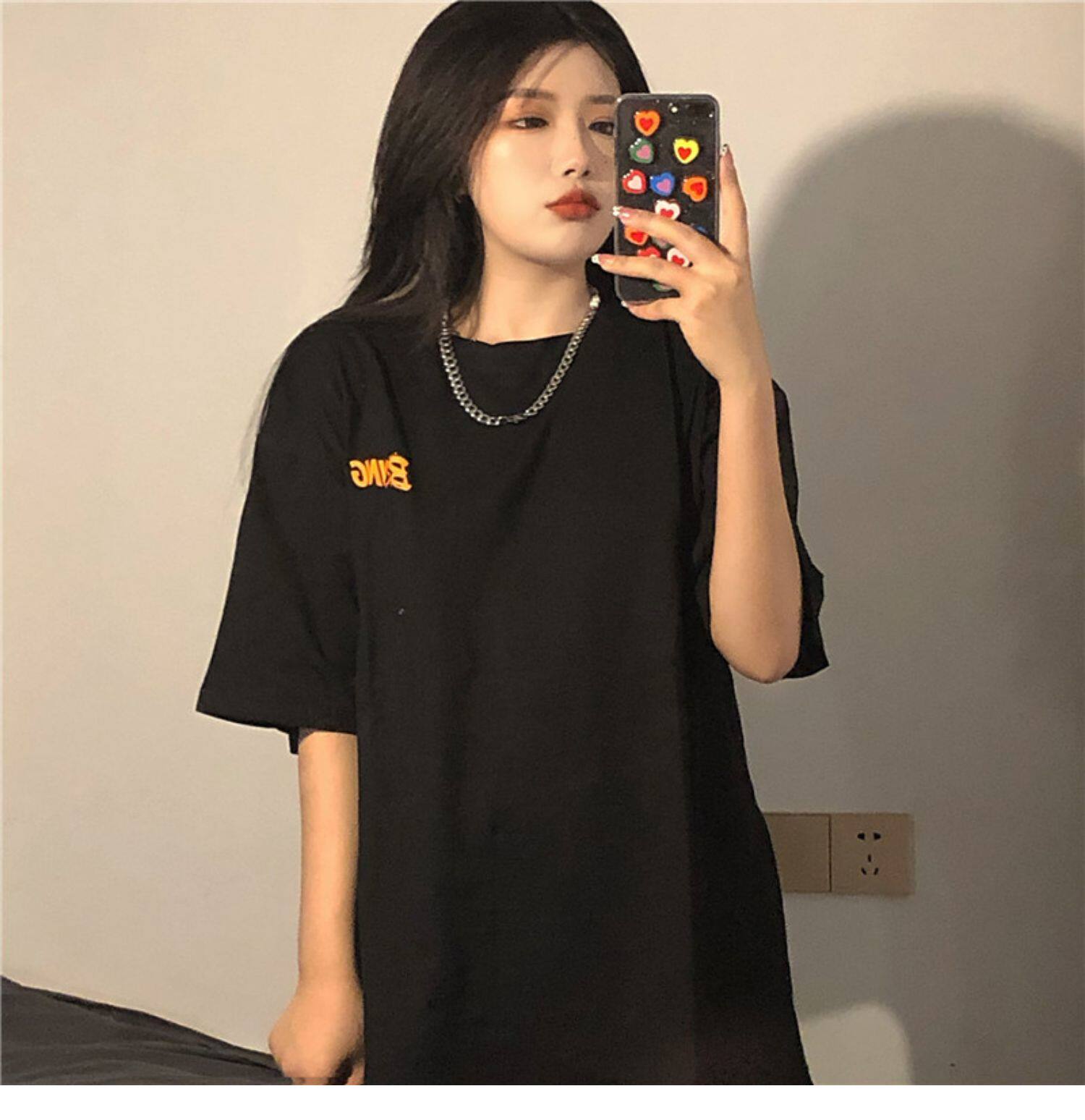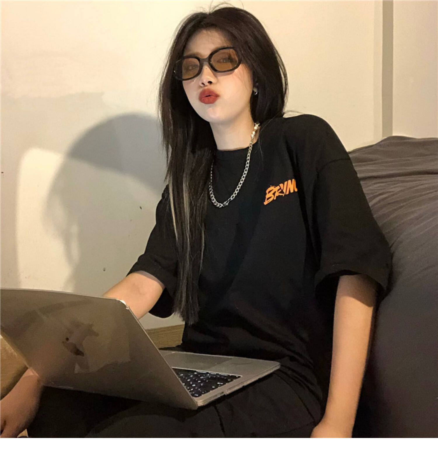 Tide, ретро черная футболка, в американском стиле, свободный крой, оверсайз