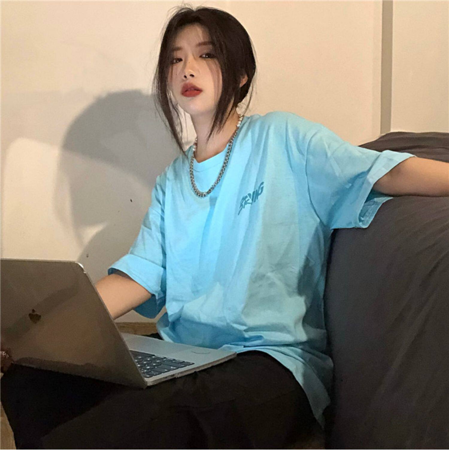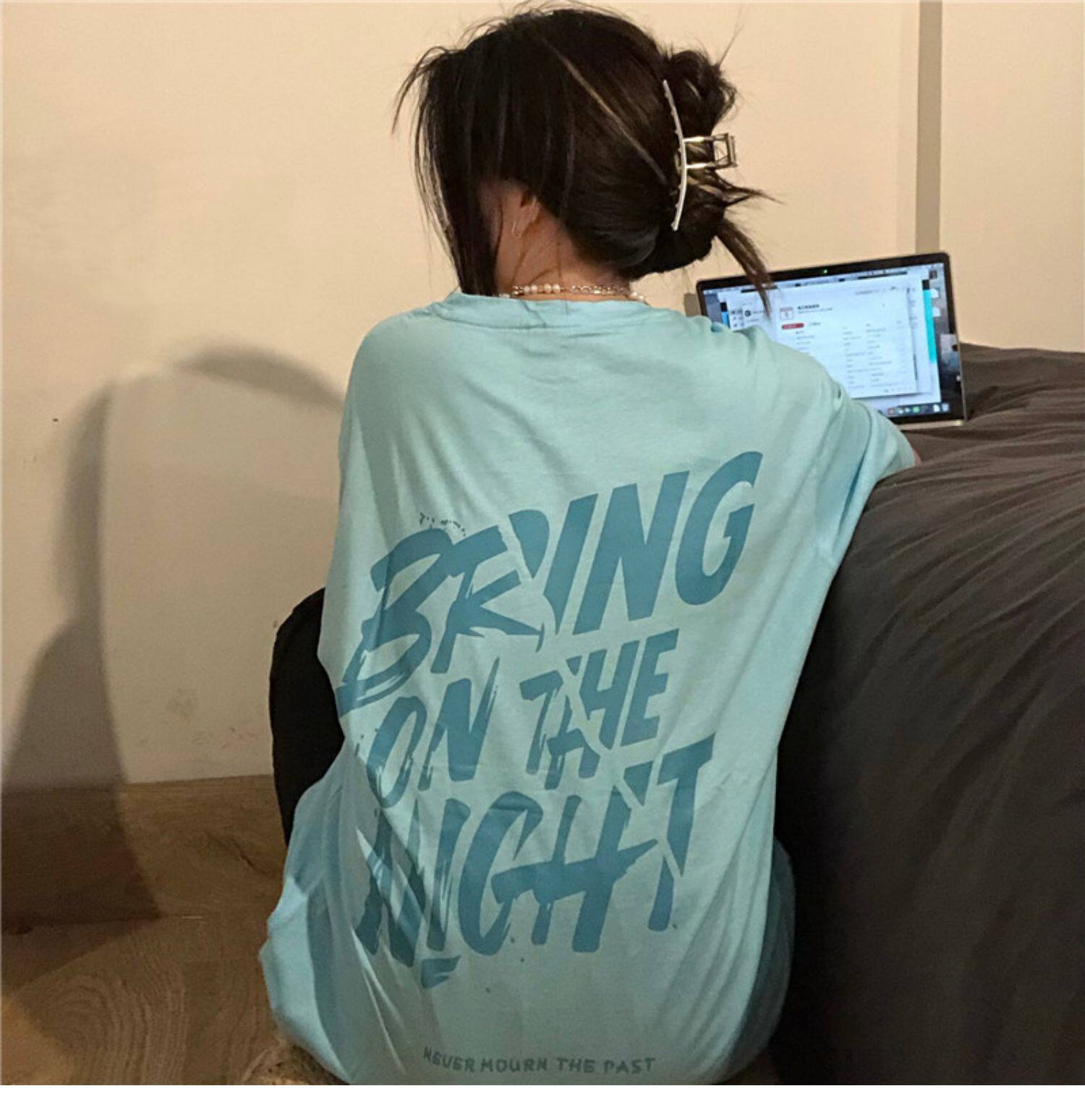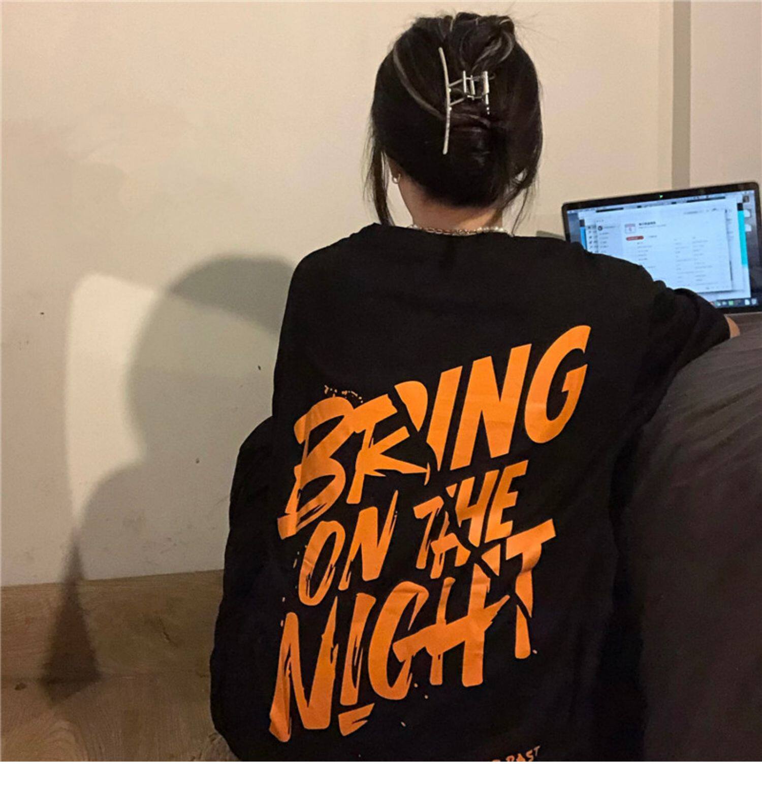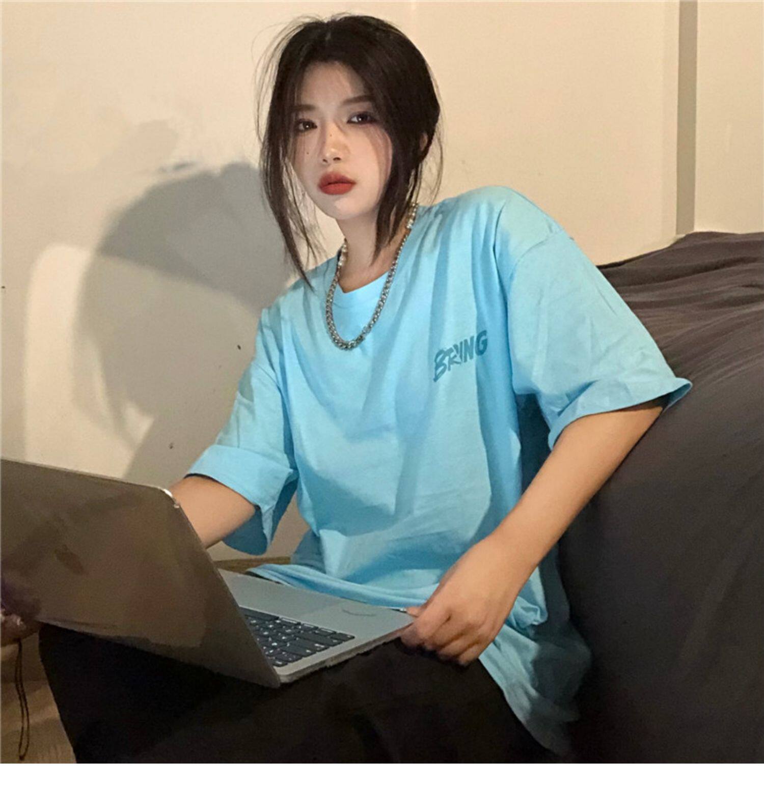 Tide, ретро черная футболка, в американском стиле, свободный крой, оверсайз