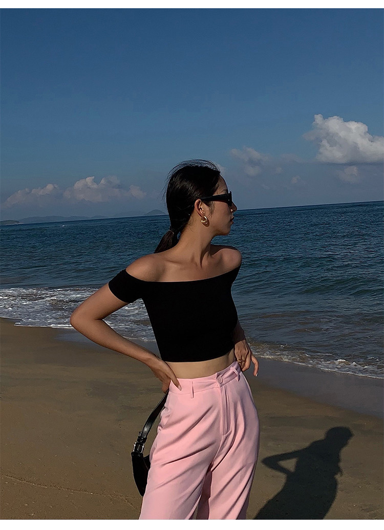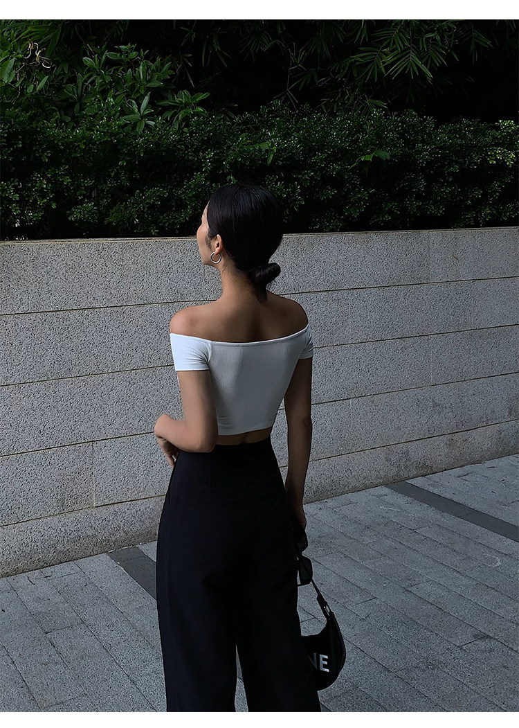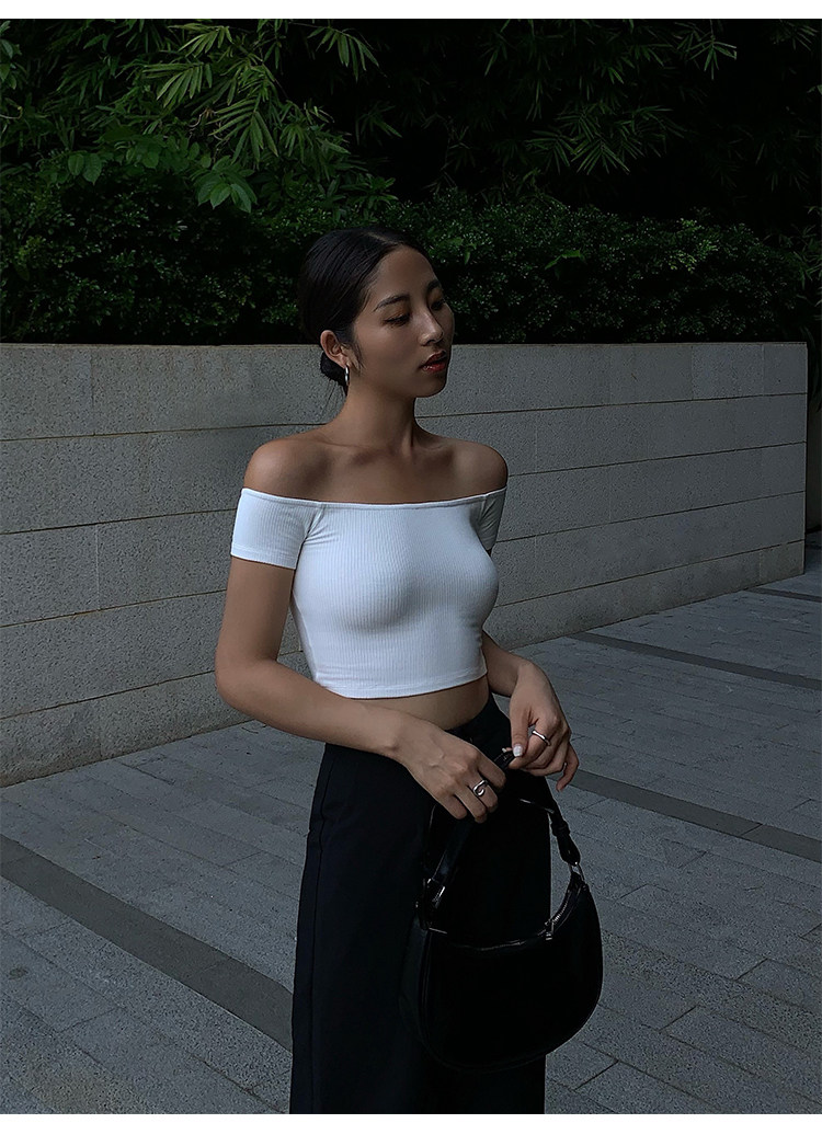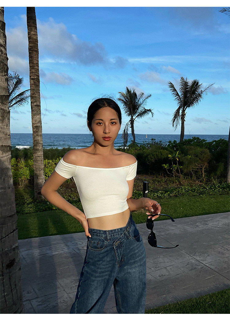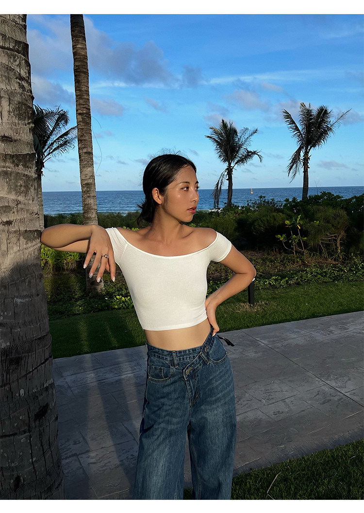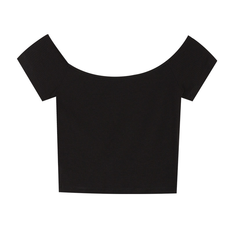 Трикотажная короткая летняя футболка, открытые плечи, квадратный вырез