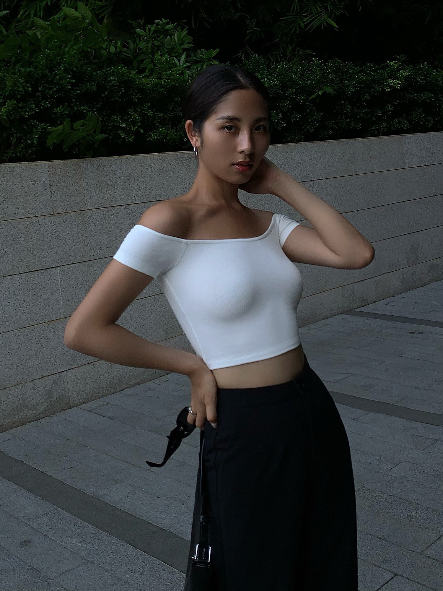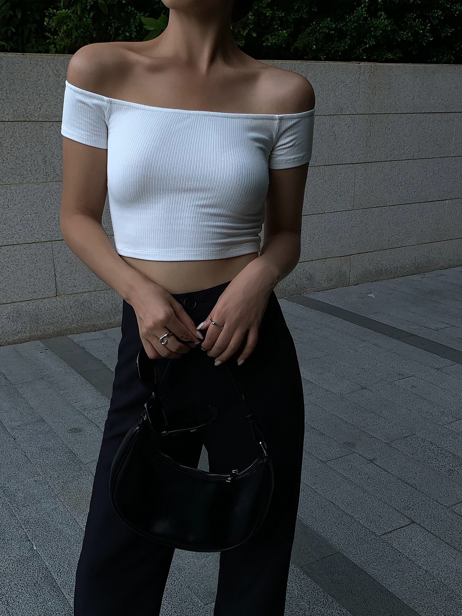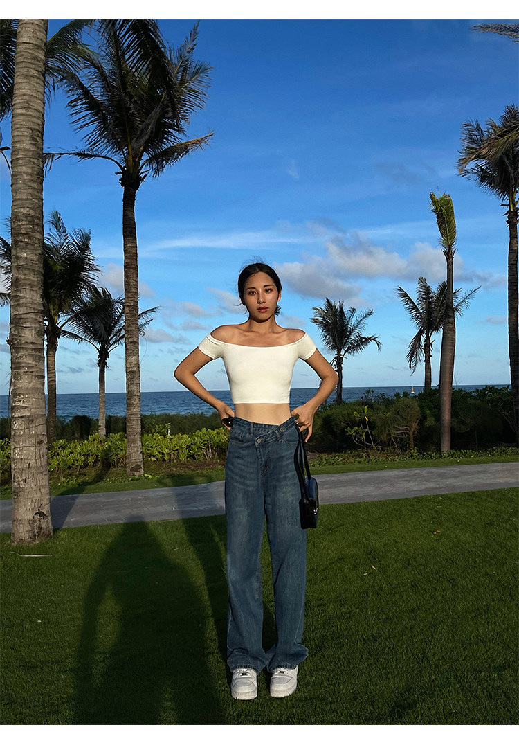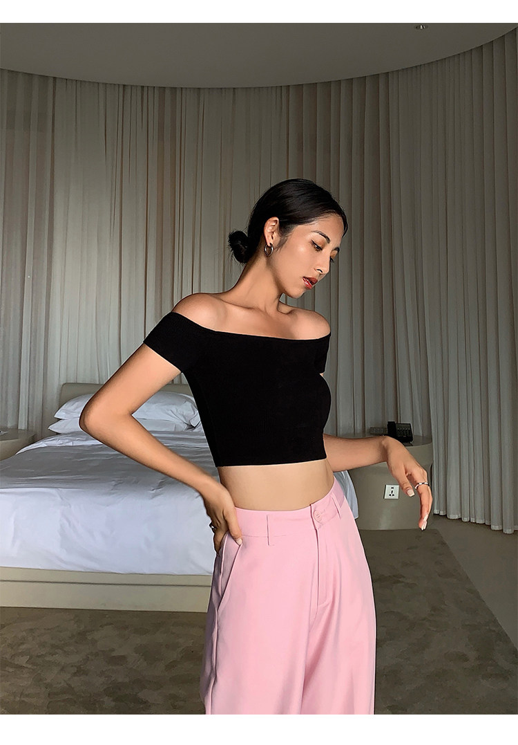 Трикотажная короткая летняя футболка, открытые плечи, квадратный вырез