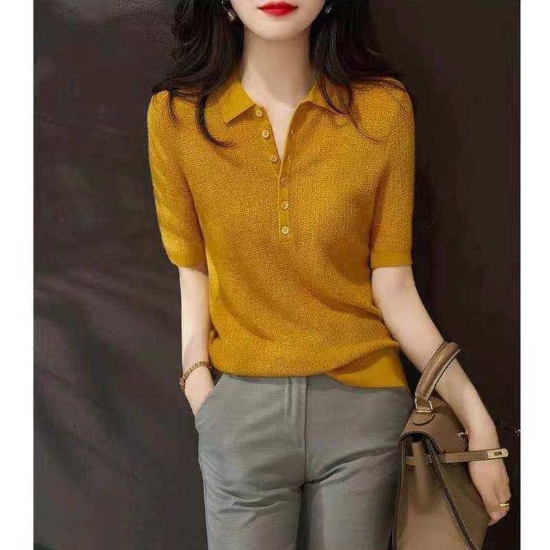 Трикотажный свитер, дизайнерская футболка с коротким рукавом, коллекция 2021, оверсайз, V-образный вырез, тренд сезона, яркий броский стиль