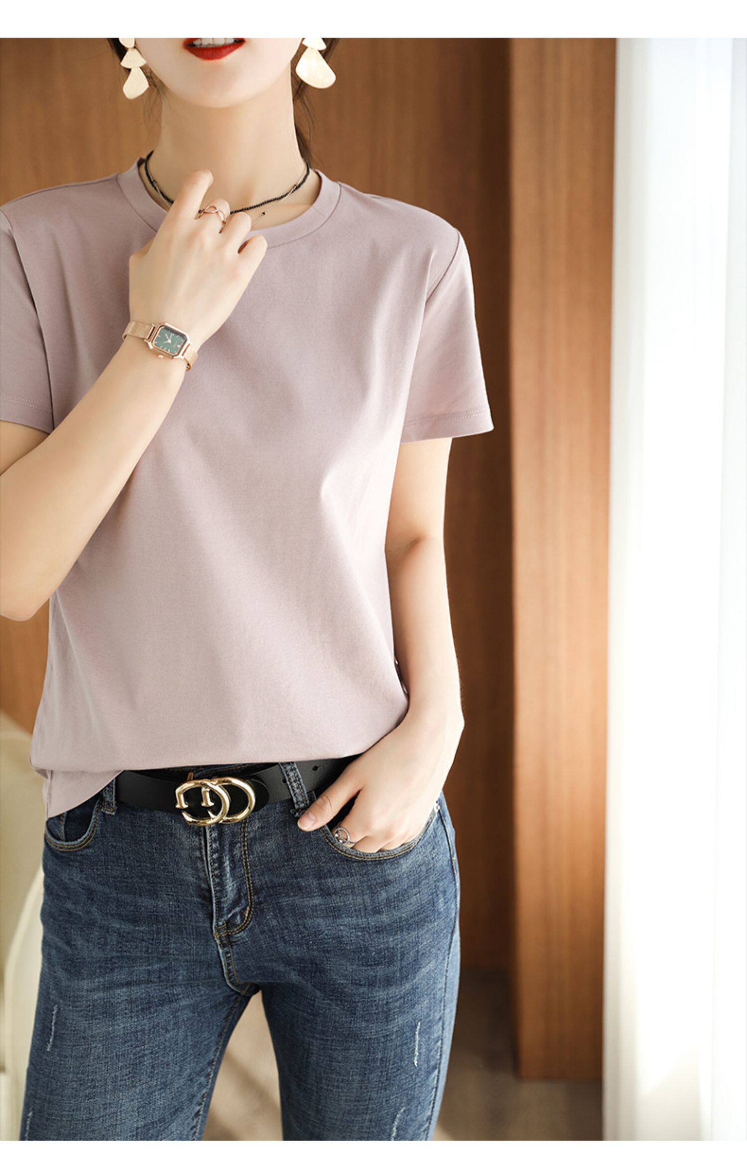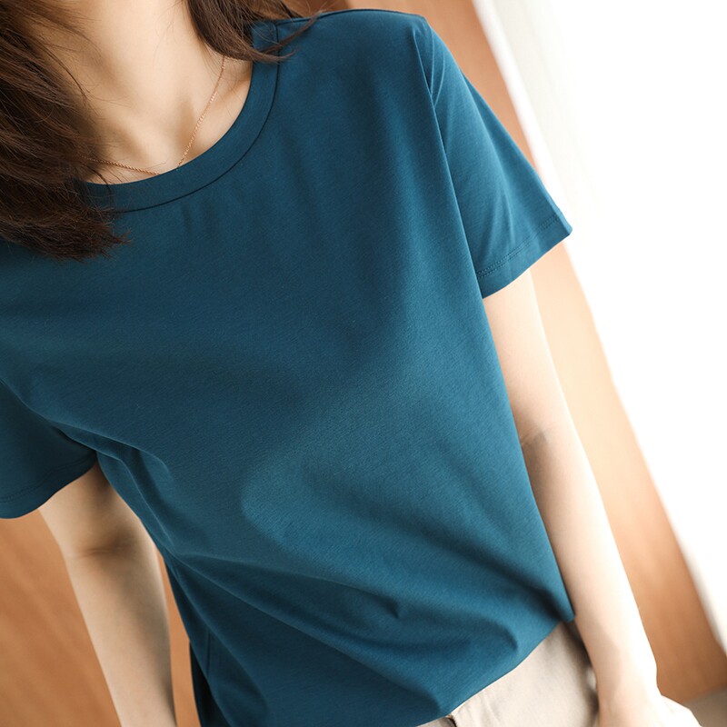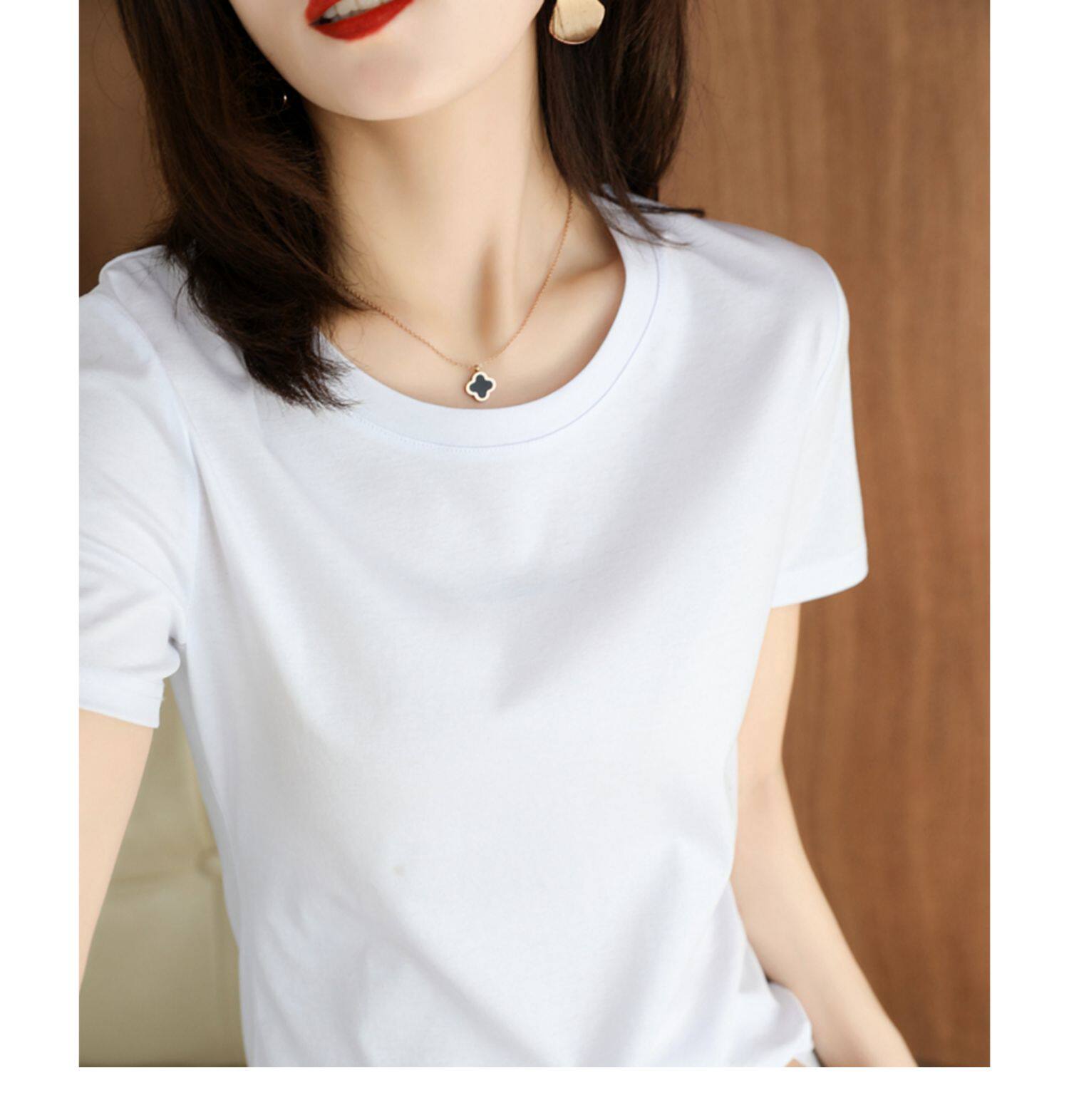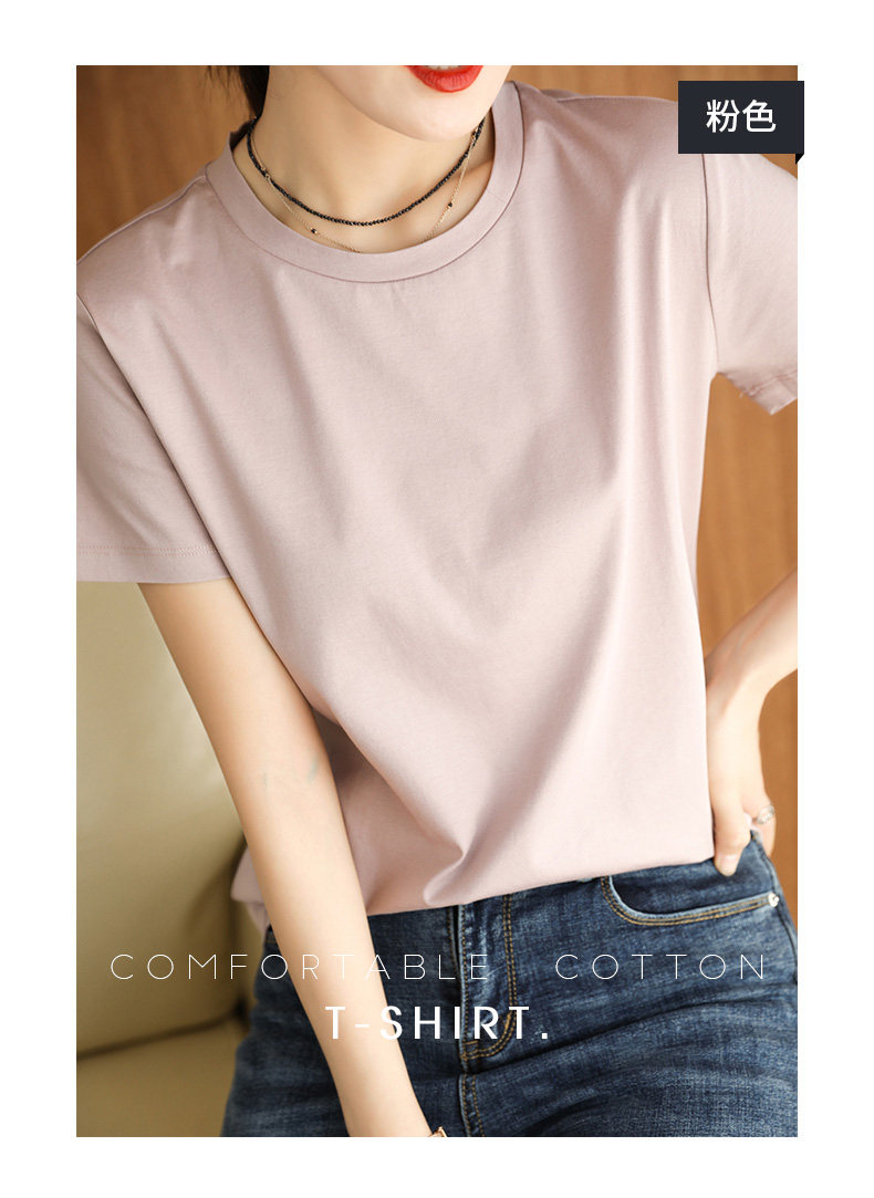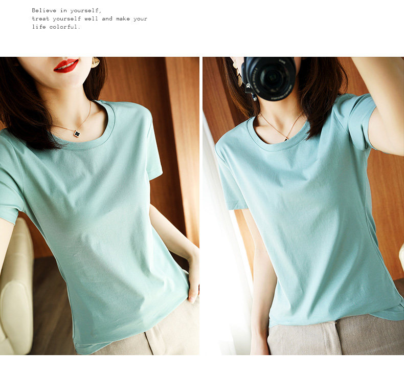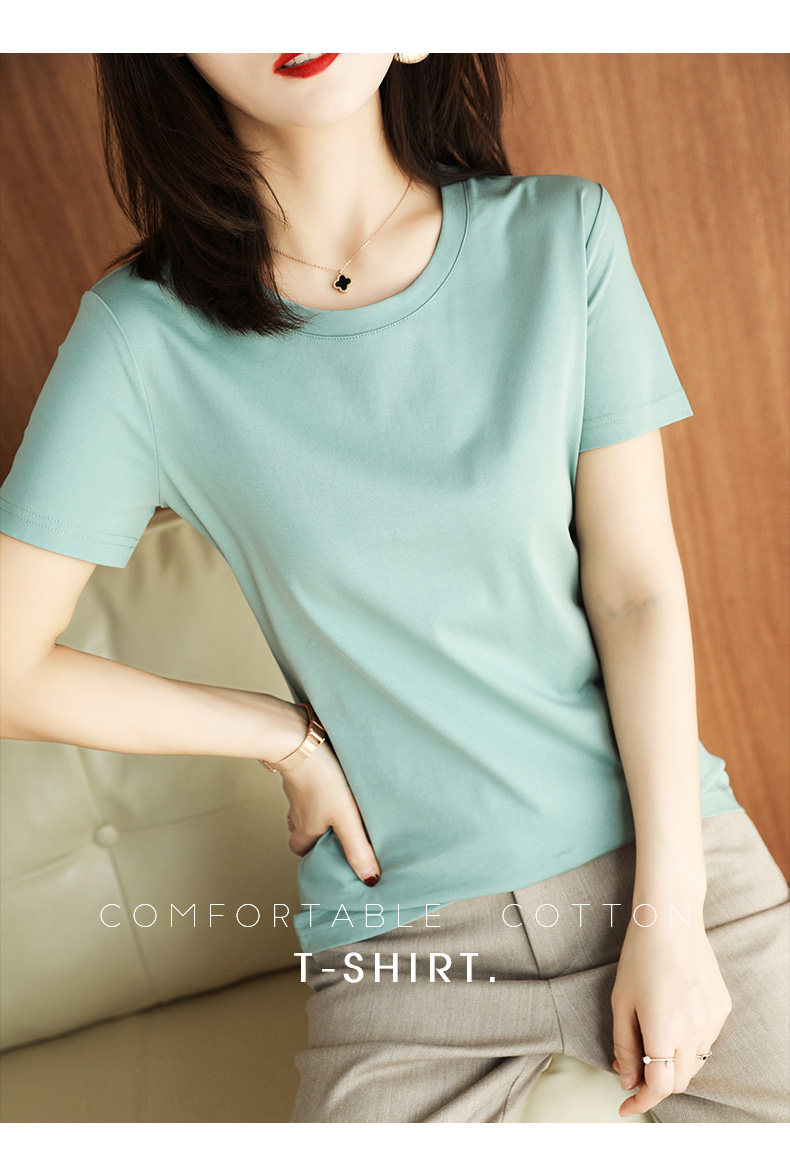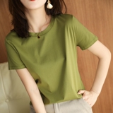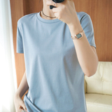 Хлопковая летняя футболка с коротким рукавом с круглым воротником