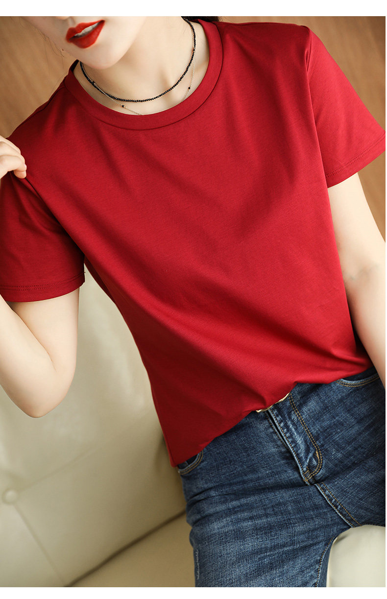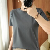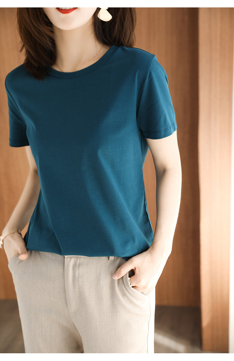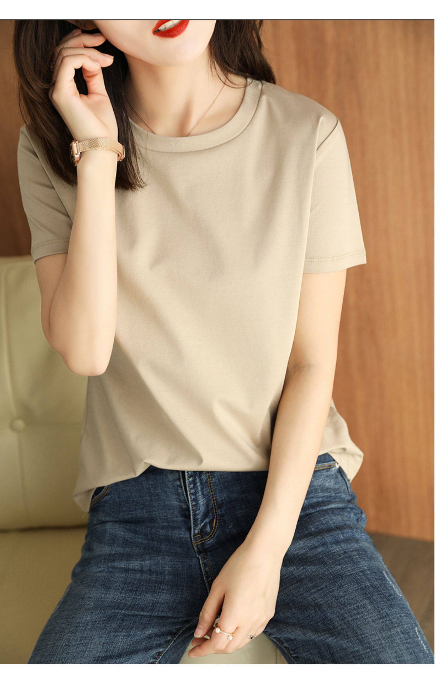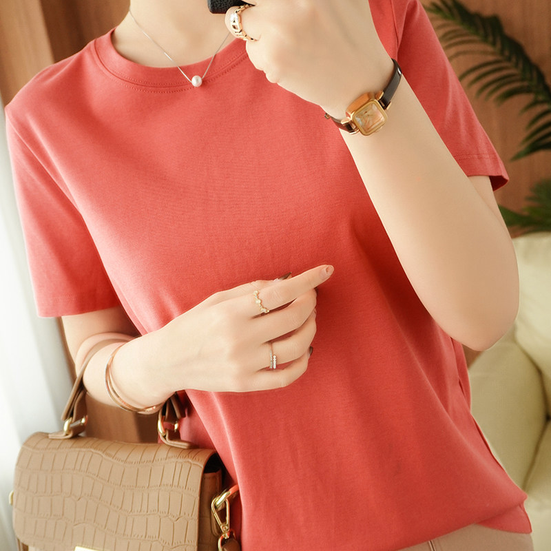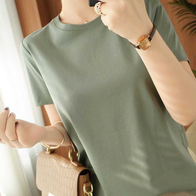 Хлопковая летняя футболка с коротким рукавом с круглым воротником