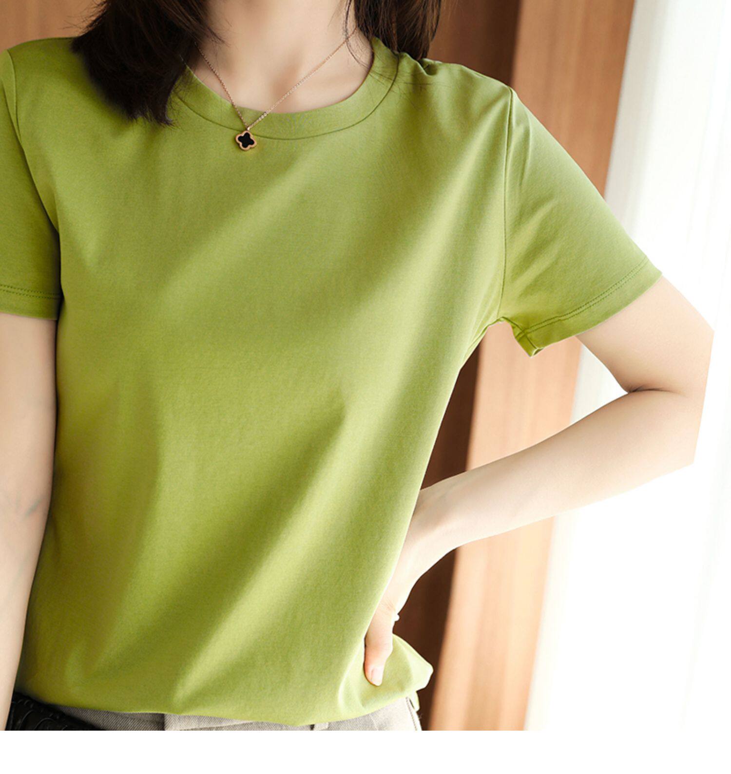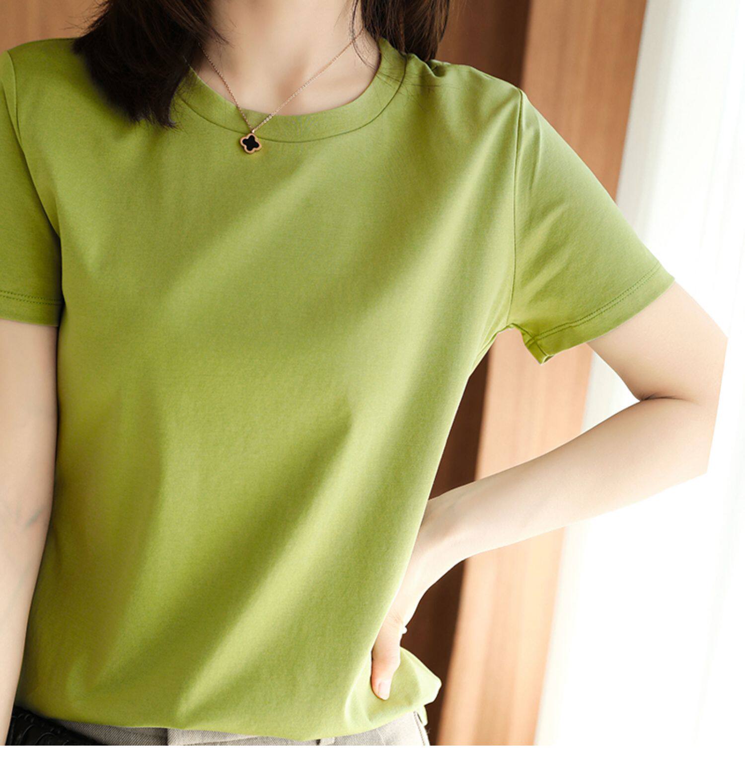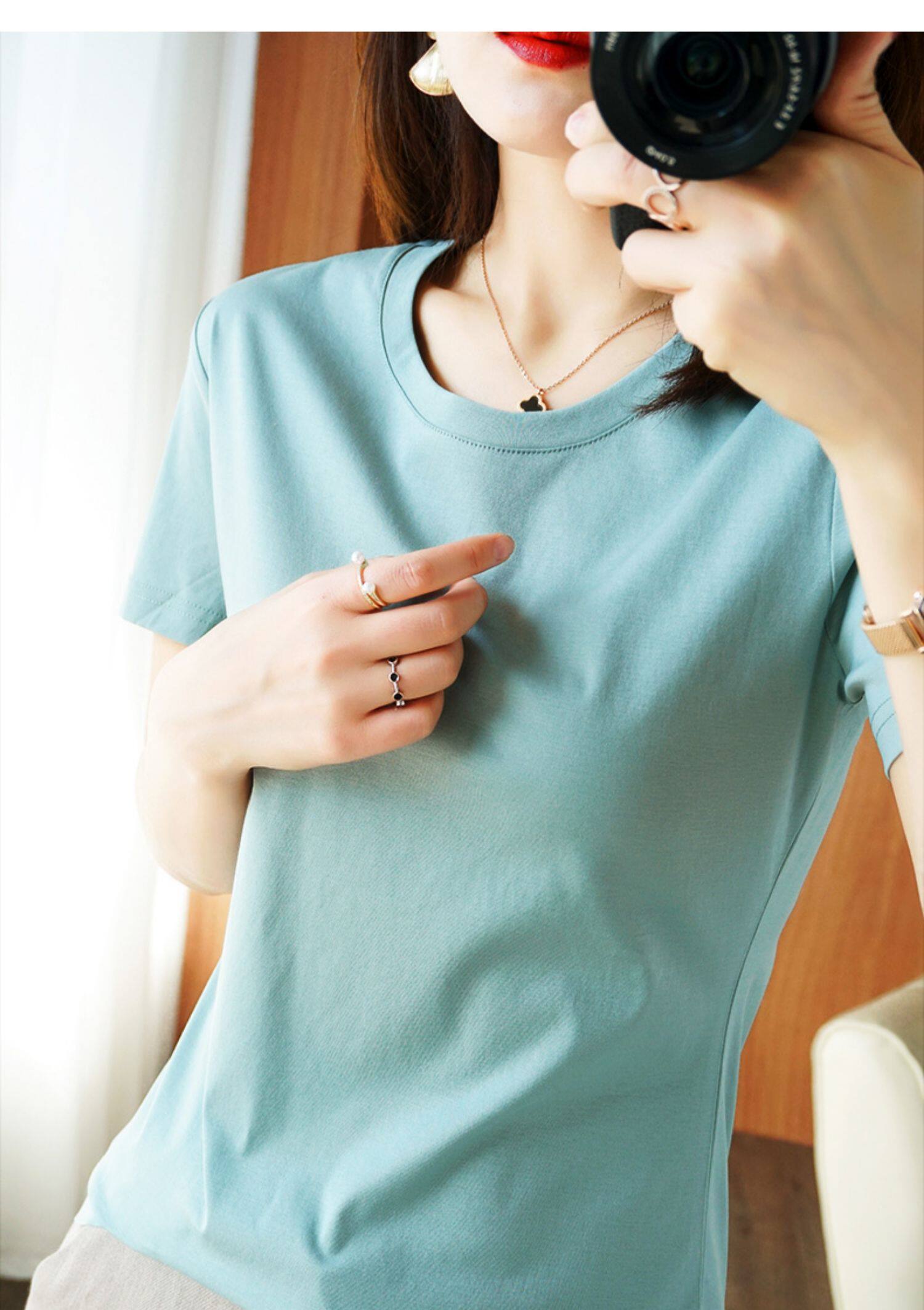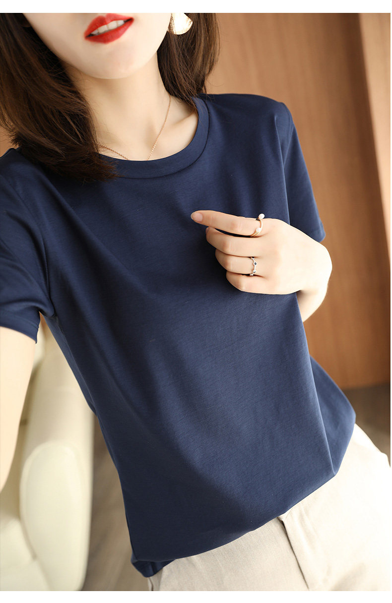 Хлопковая летняя футболка с коротким рукавом с круглым воротником