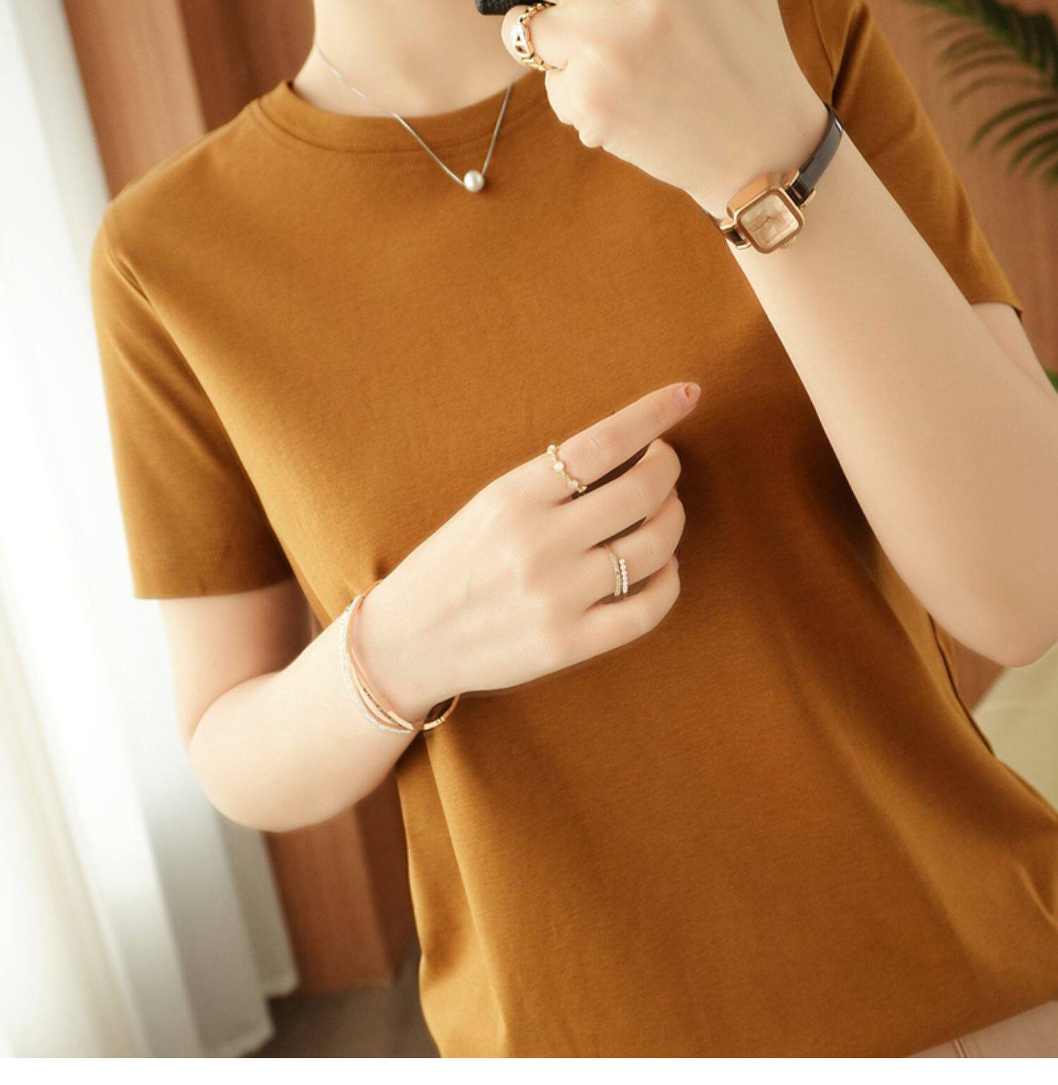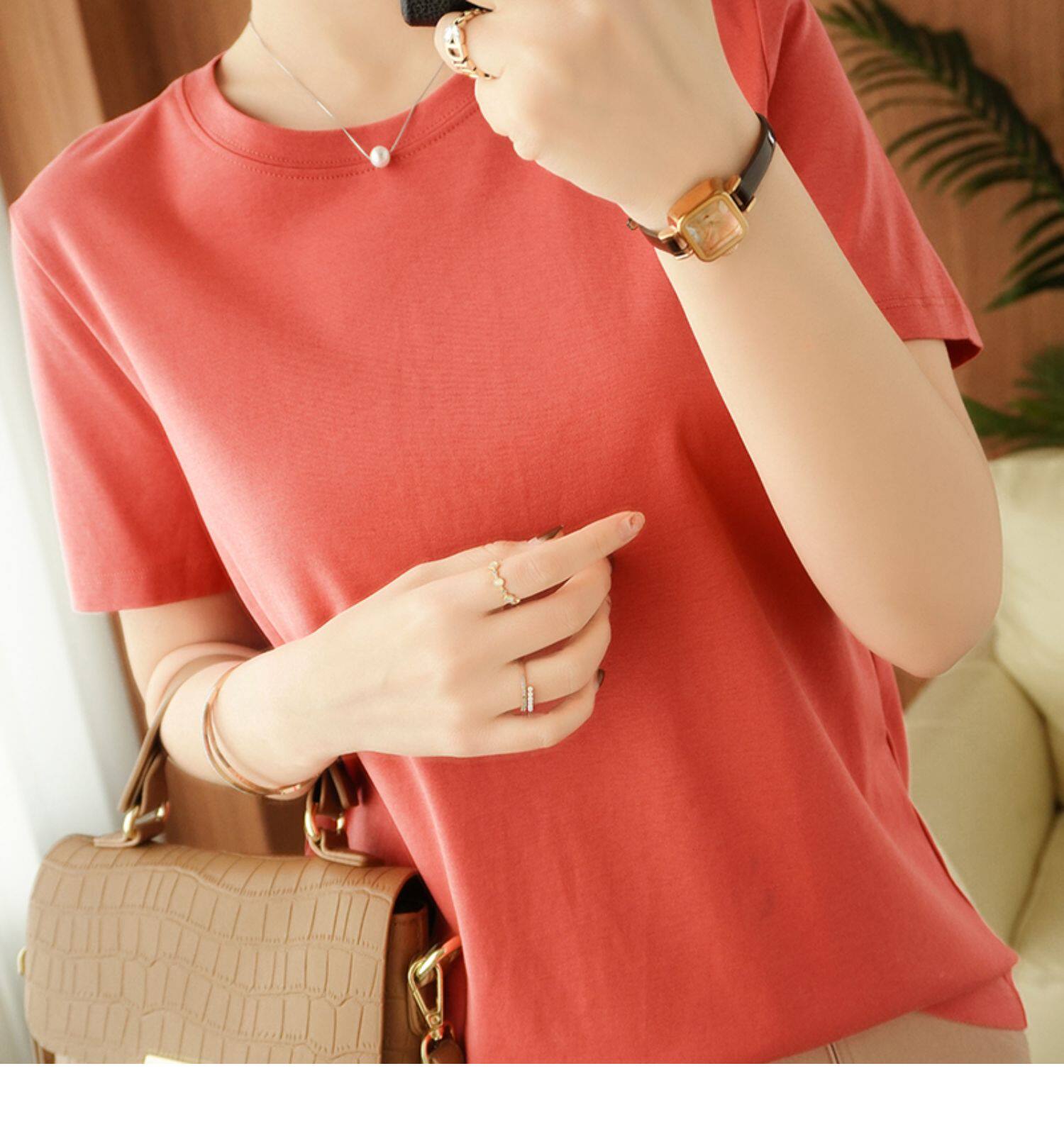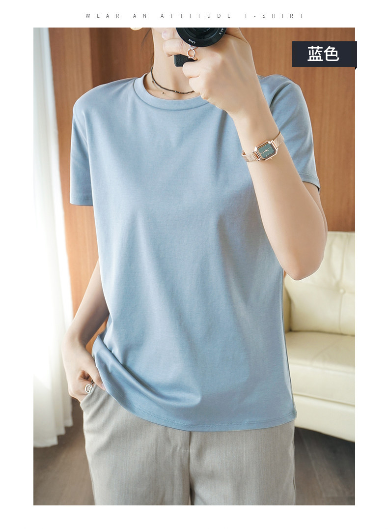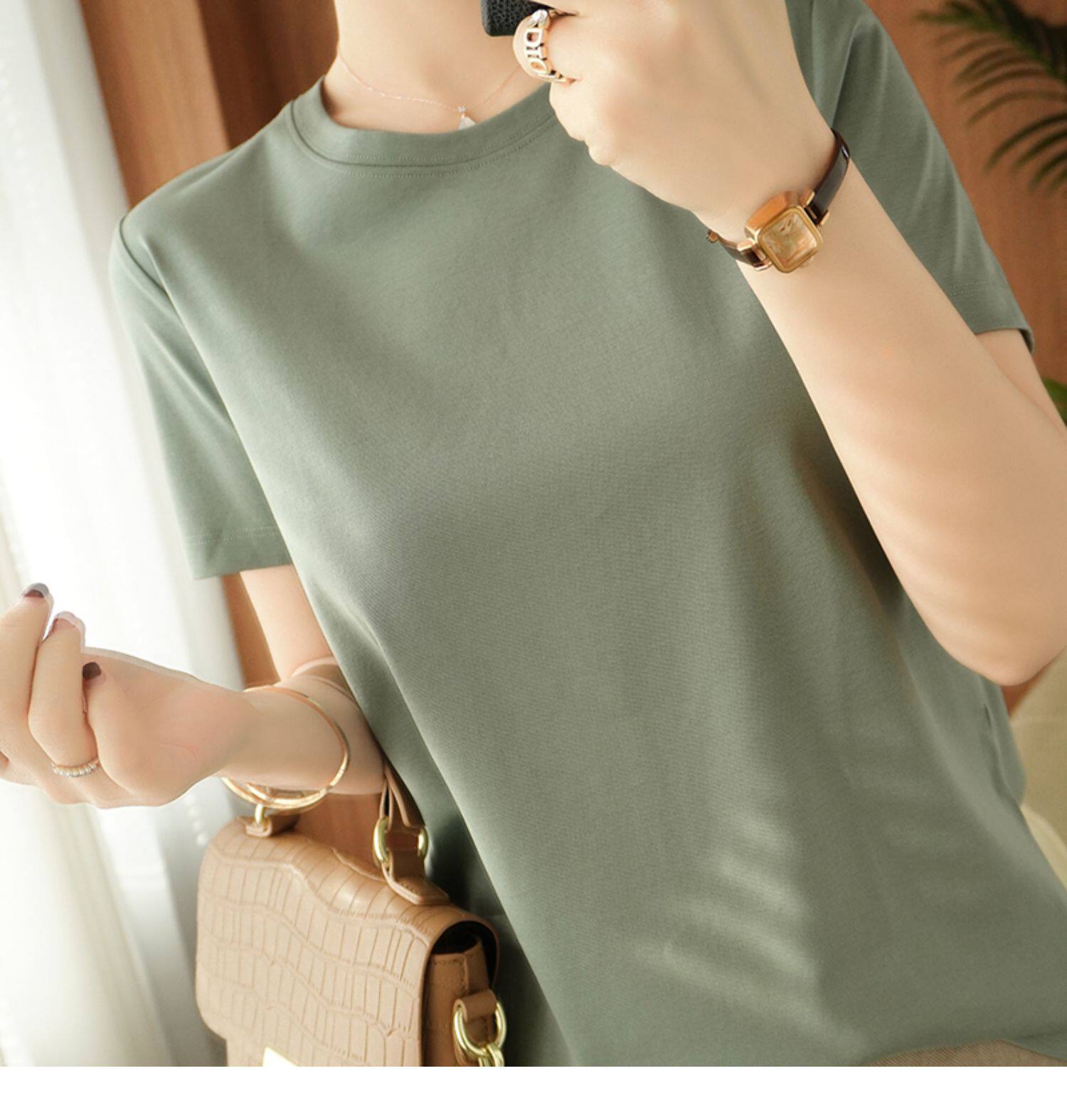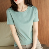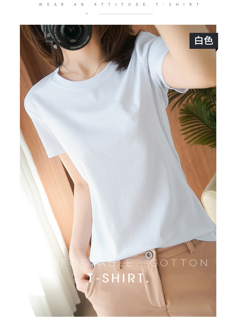Хлопковая летняя футболка с коротким рукавом с круглым воротником