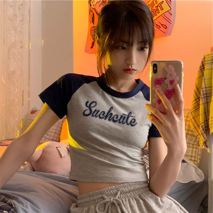 Ретро летняя сексуальная короткая футболка с коротким рукавом, в американском стиле, высокая талия