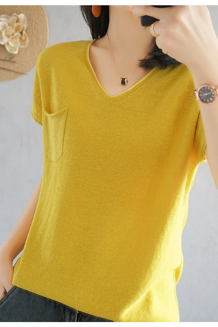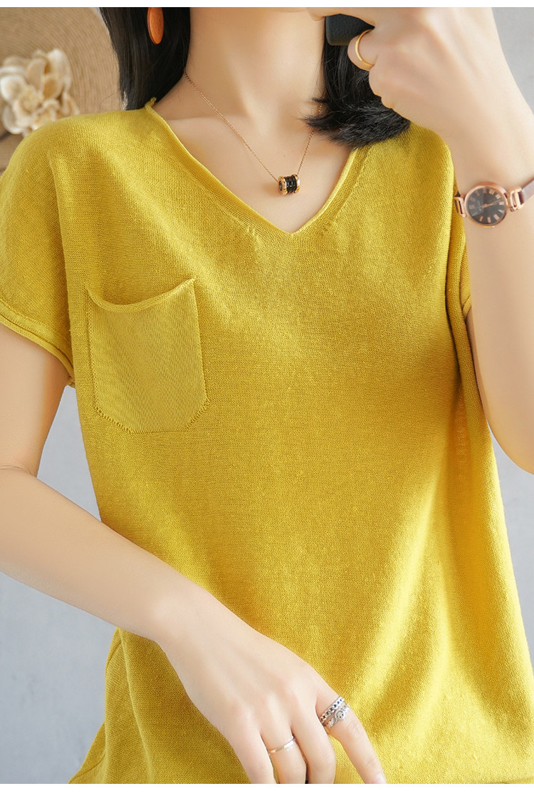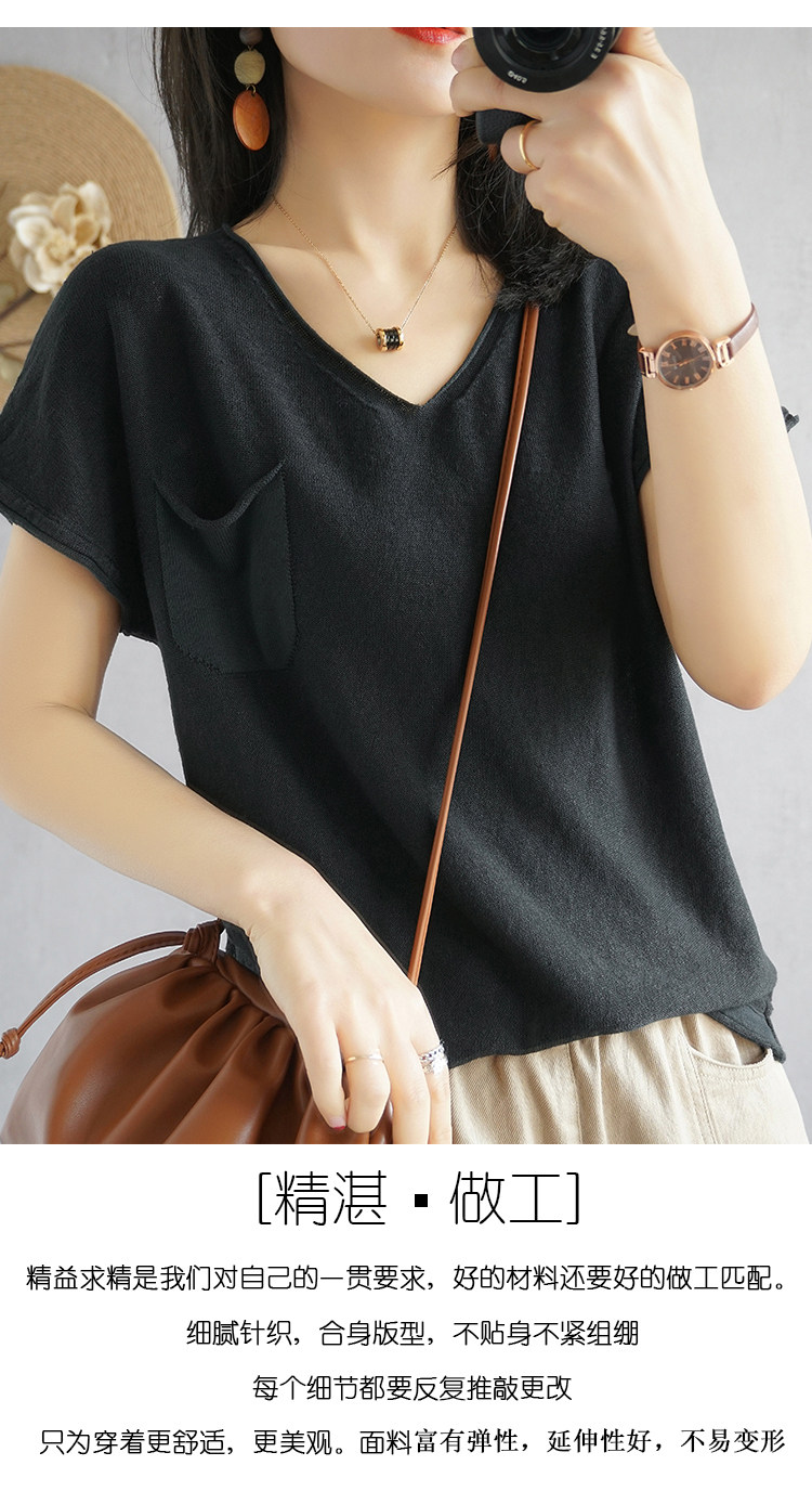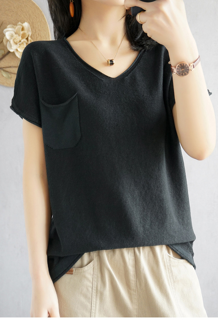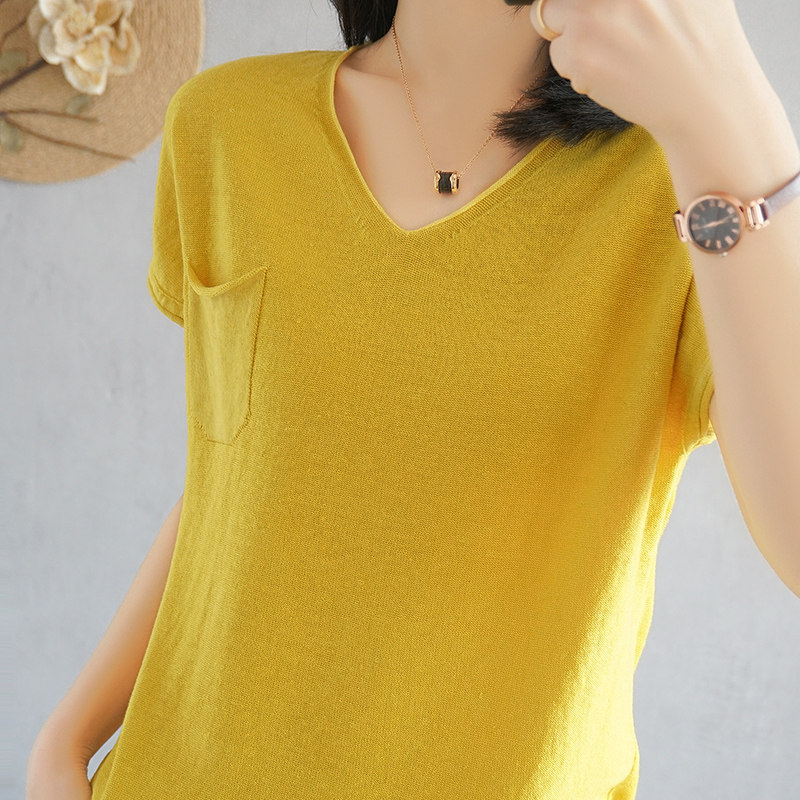 Тонкая хлопковая трикотажная футболка с коротким рукавом, майка топ, V-образный вырез, свободный крой, из хлопка и льна