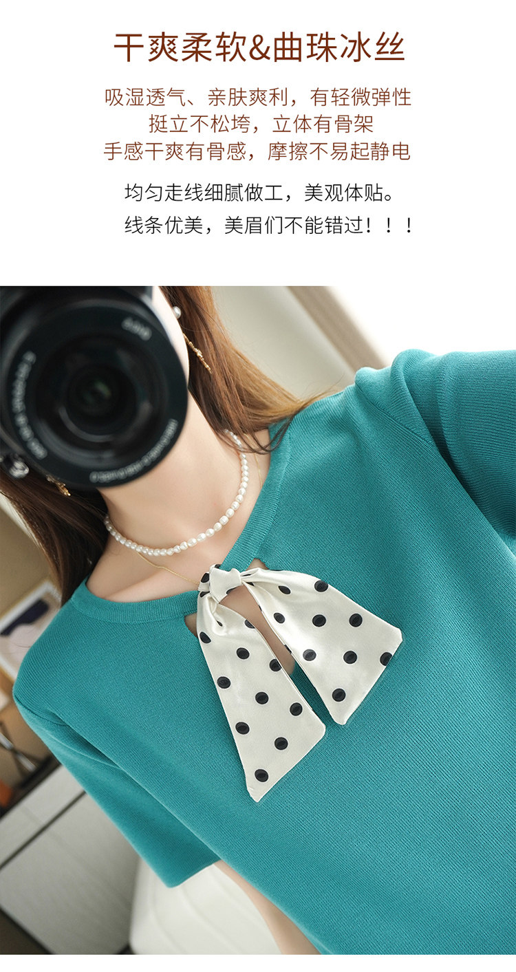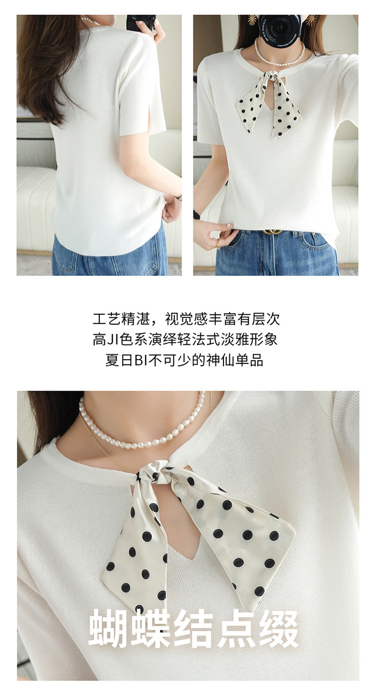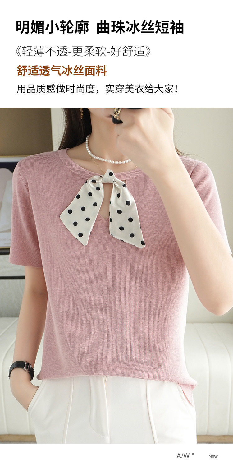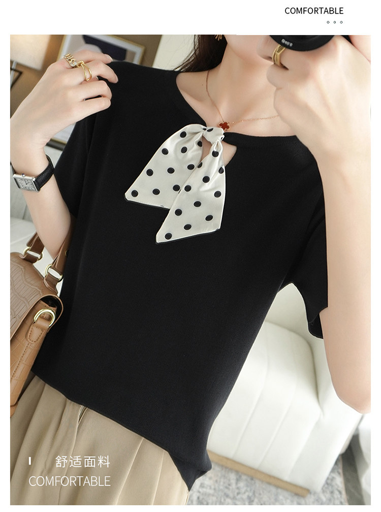 Трикотажная футболка с коротким рукавом с круглым воротником с бантиком, базовая короткая рубашка