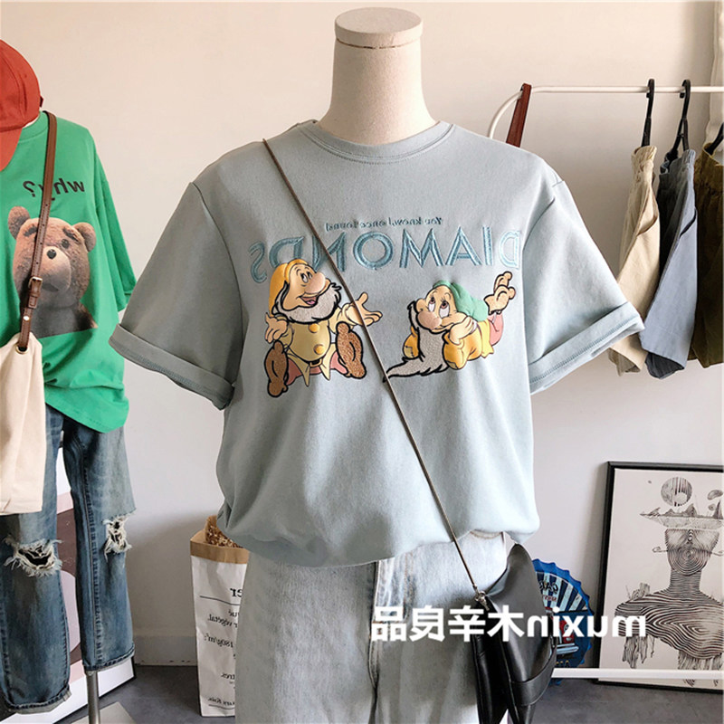 Tide, летняя розовая футболка с коротким рукавом, в корейском стиле, с вышивкой, свободный крой, в западном стиле