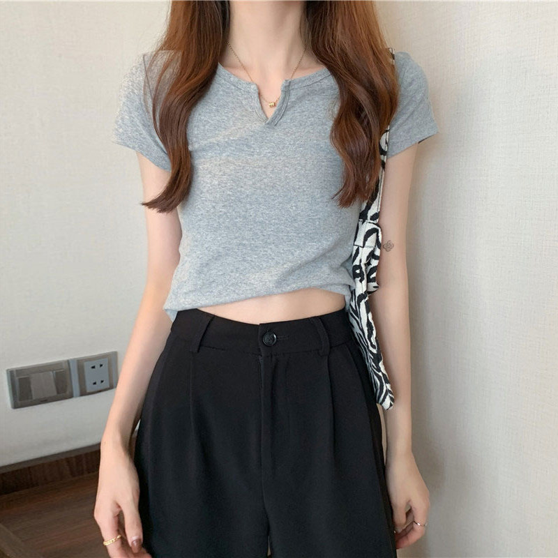 Tide, короткая летняя сексуальная приталенная футболка, короткий рукав, V-образный вырез, высокая талия, облегающий крой