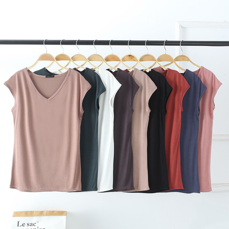 Летняя тонкая футболка без рукавов, цветной базовый приятный телу жилет для отдыха, V-образный вырез, короткий рукав, оверсайз