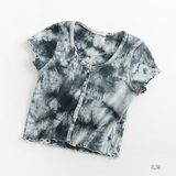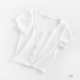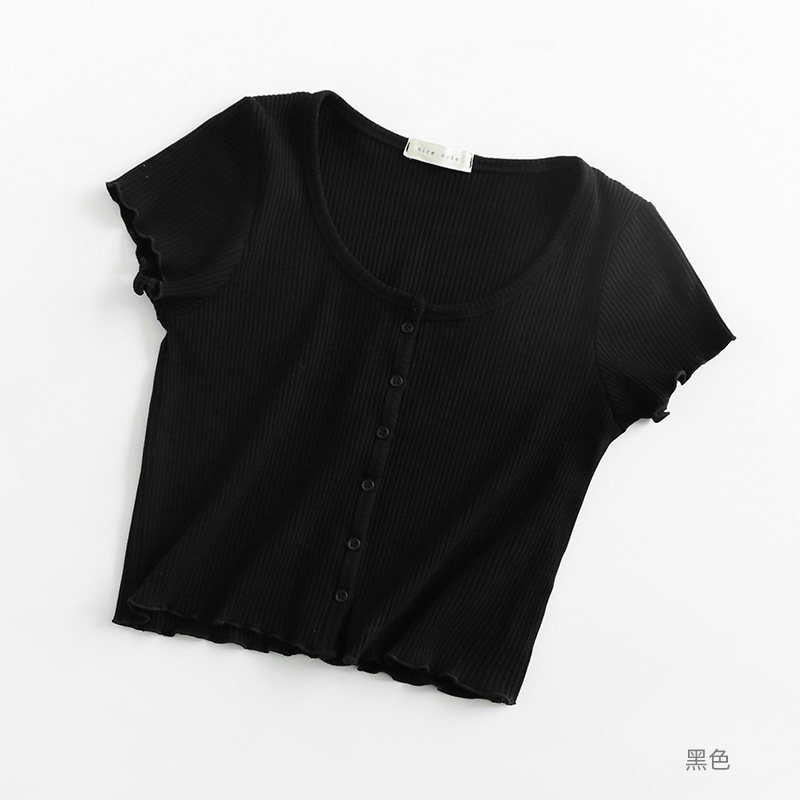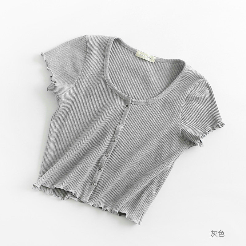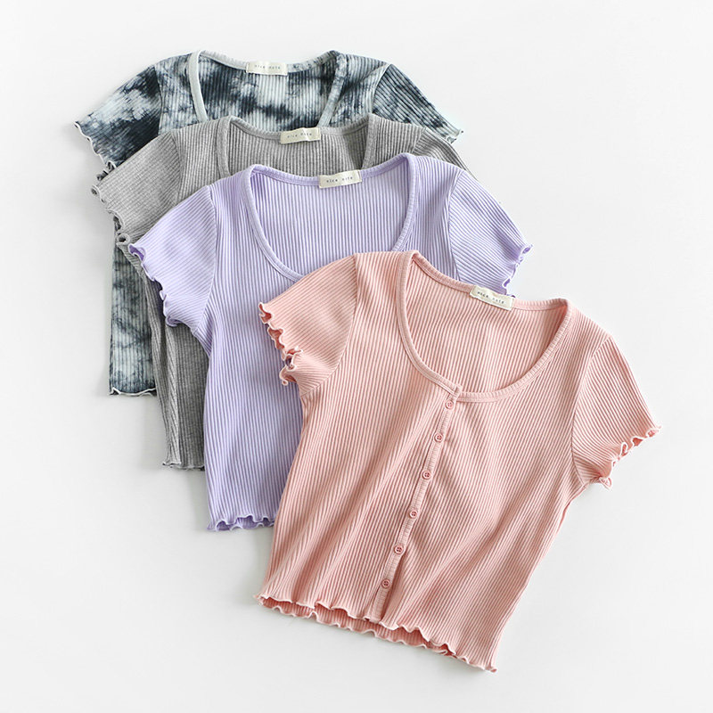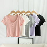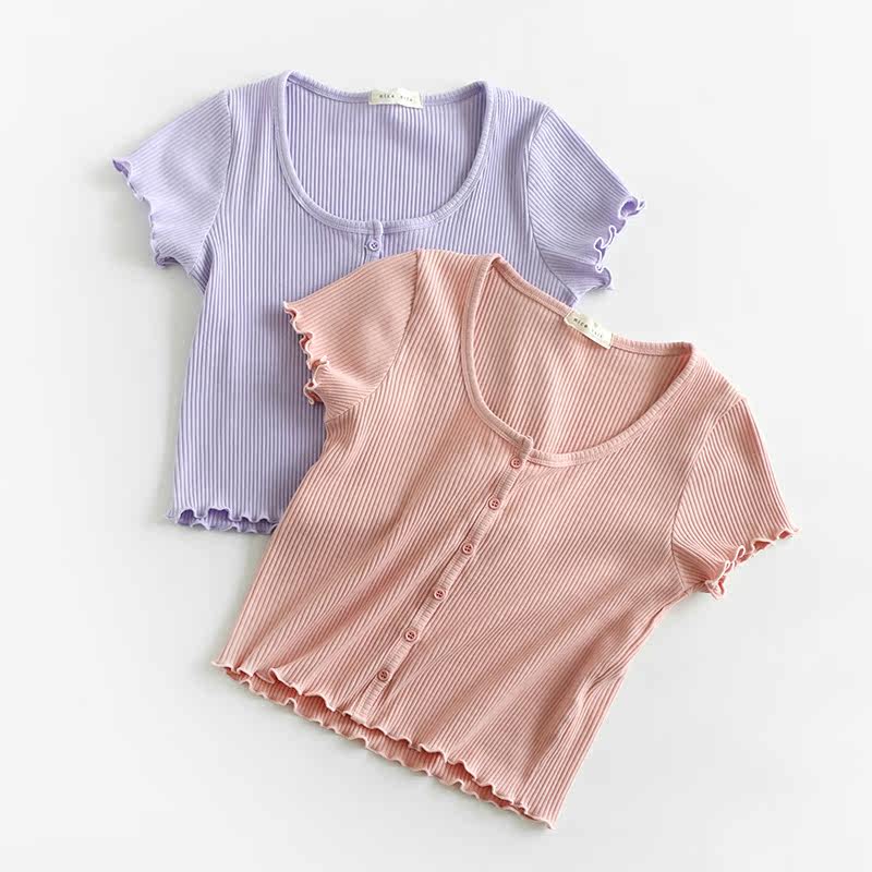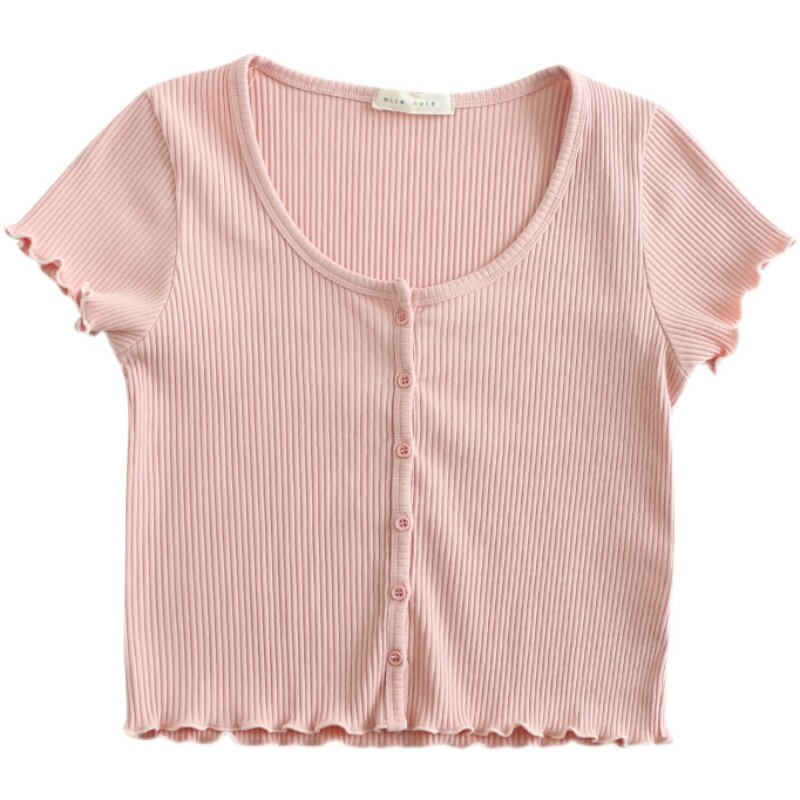 Короткая летняя тонкая футболка с коротким рукавом, приталенный трикотажный свитер, французский стиль, высокая талия